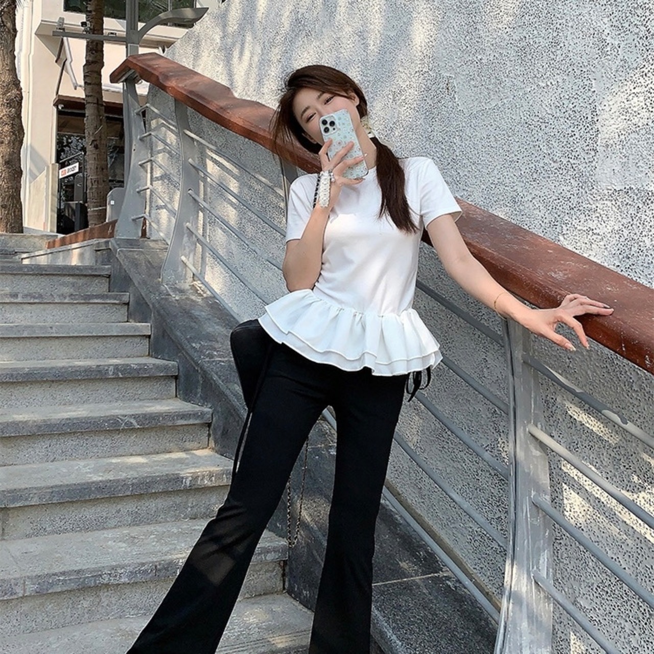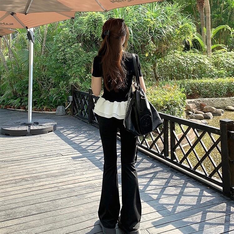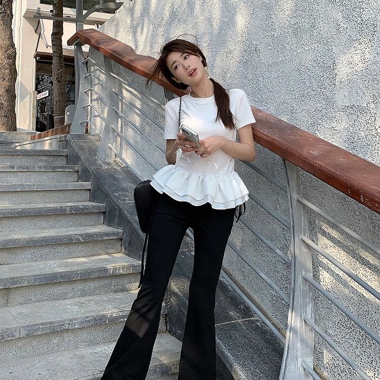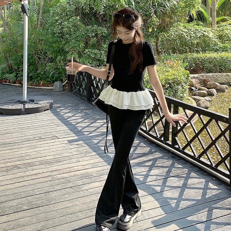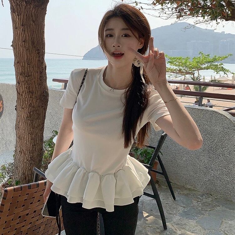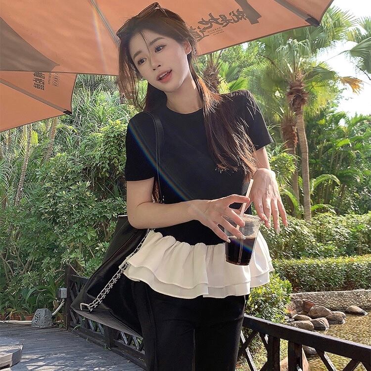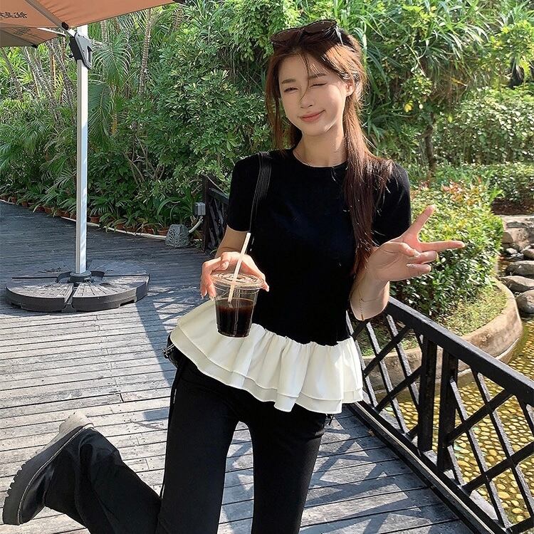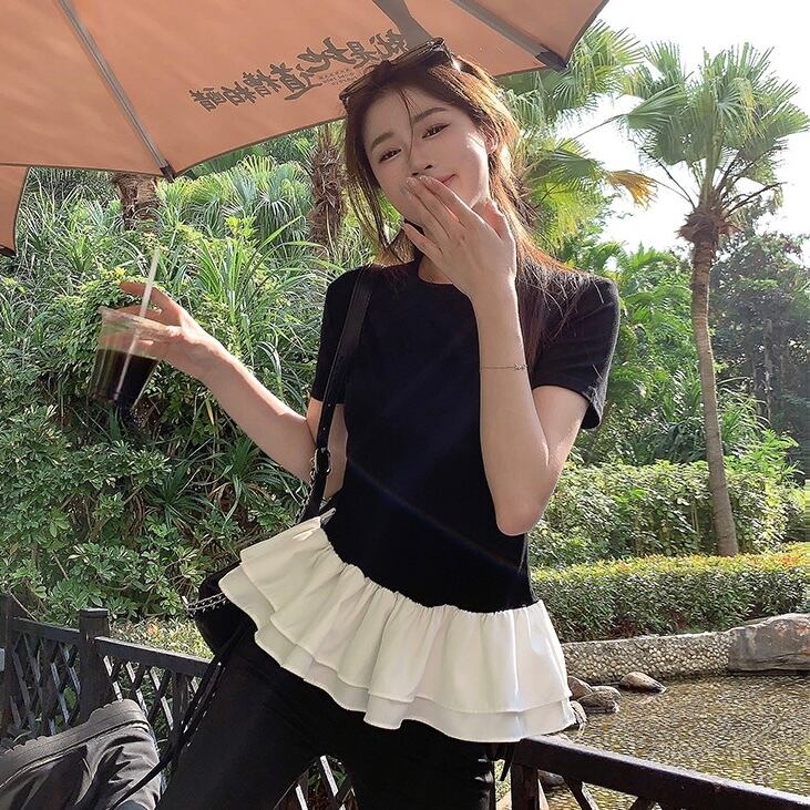 【tops】フリル切り替えラウンドネックトップス2色 SY4263