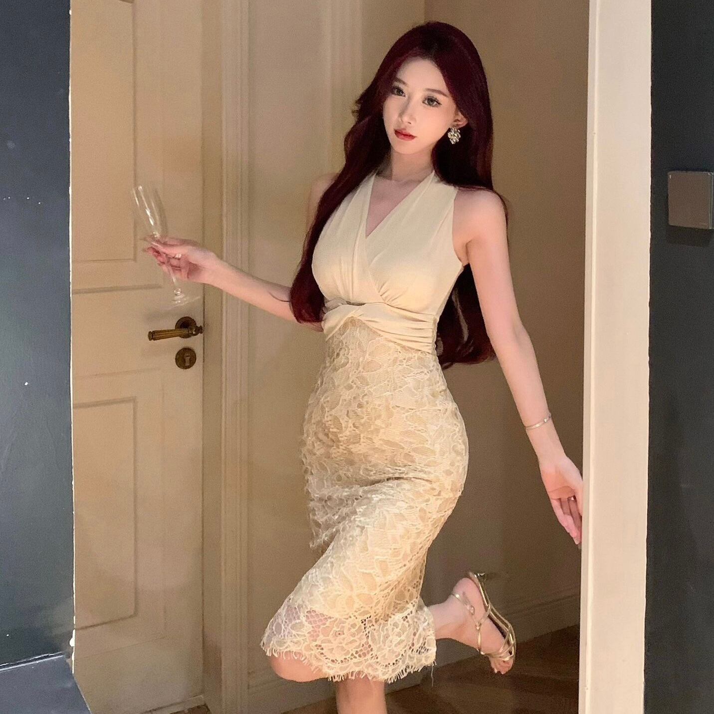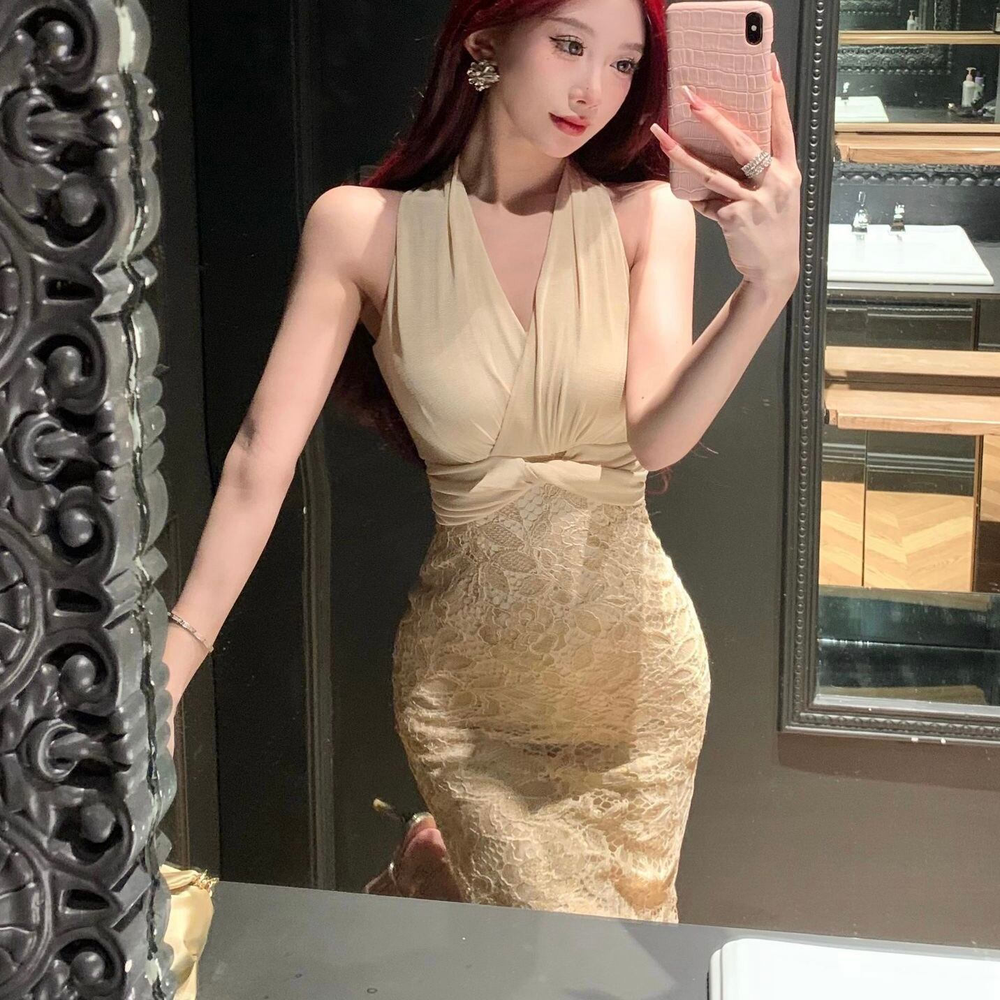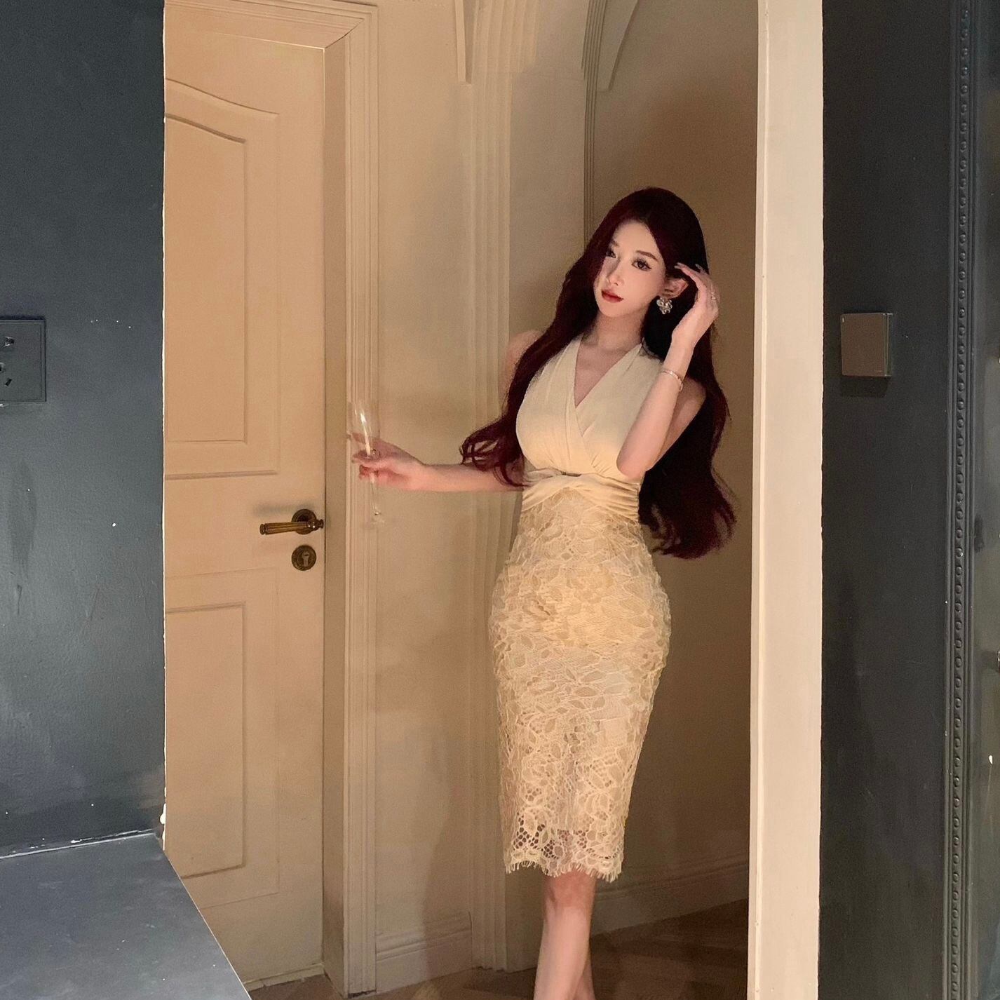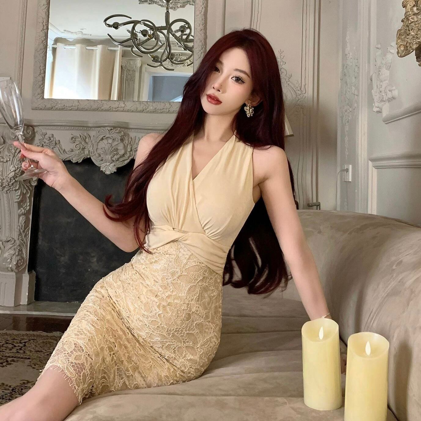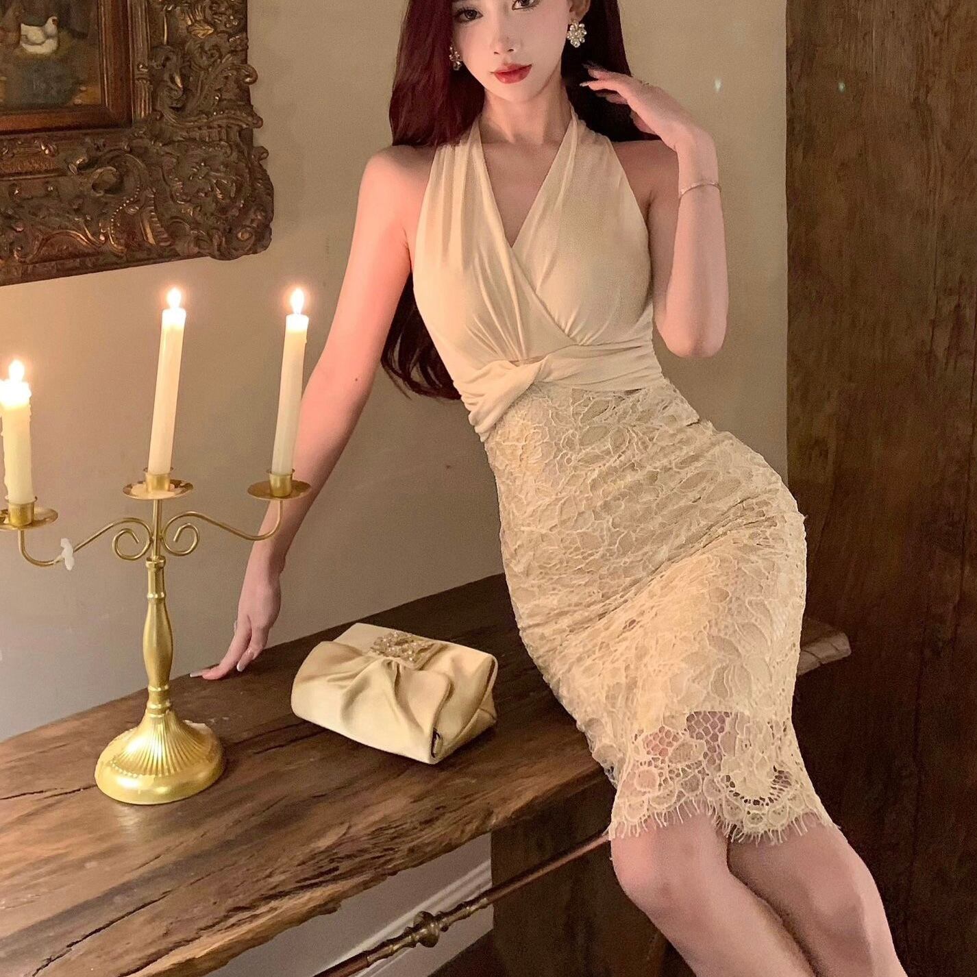 【dress】カシュクールレース切り替えドレス SY4285