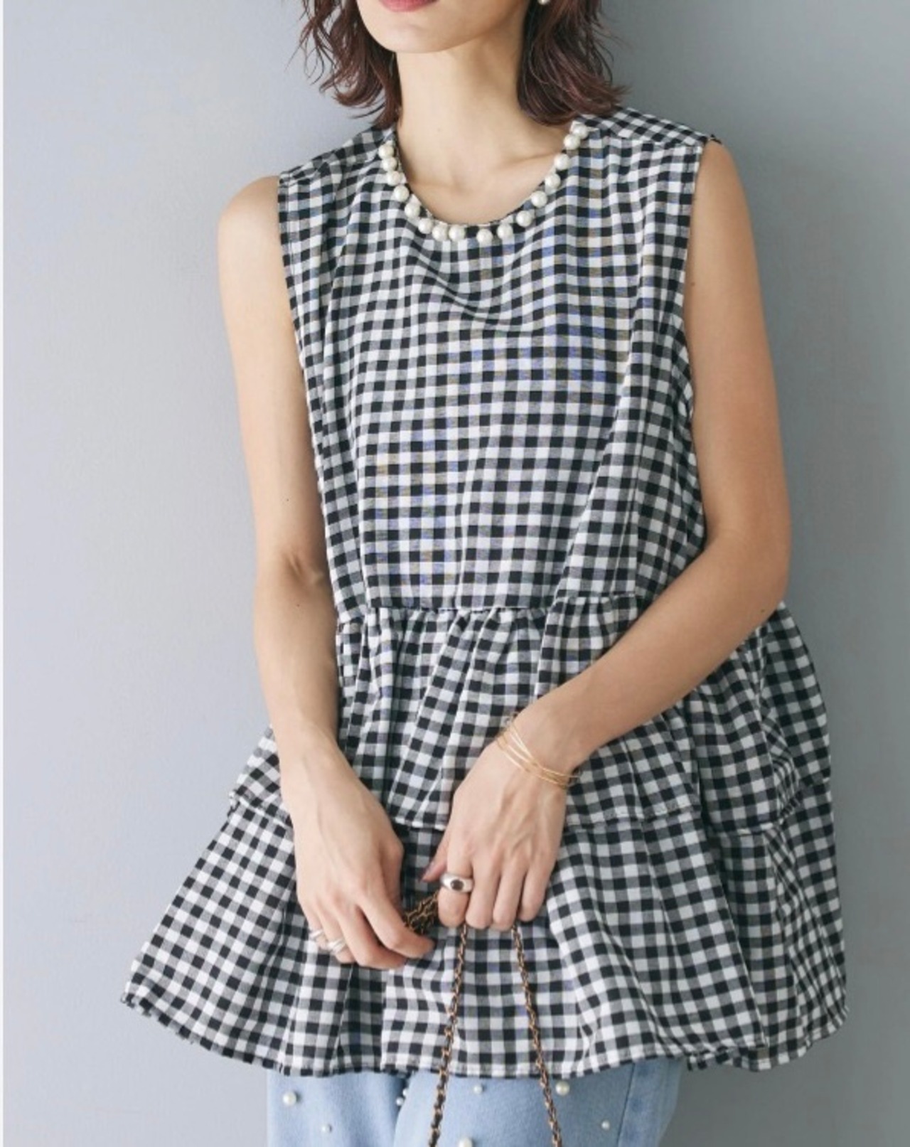 ホワイト/ブラック/ギンガムチェック