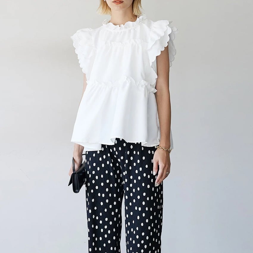 【tops】フリルノースリーブトップス2色 SY4292