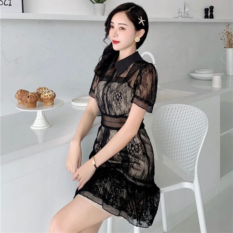 【dress】襟レースミニワンピース SY4293