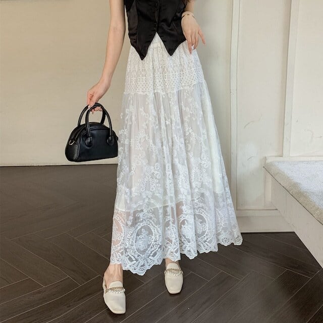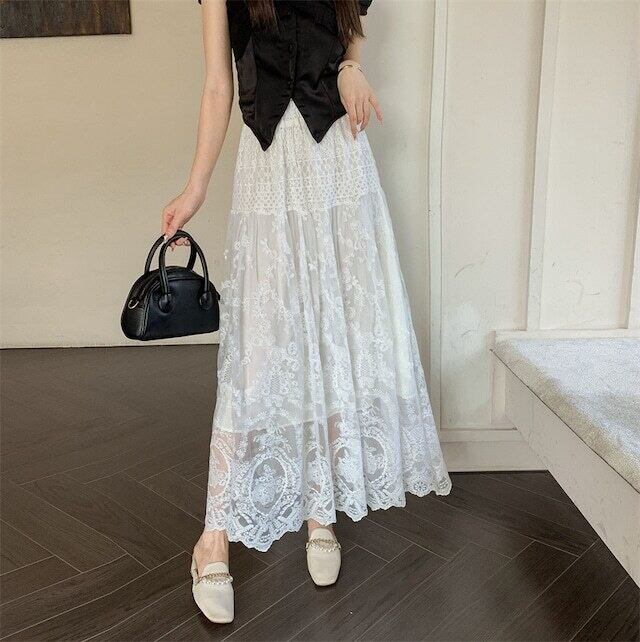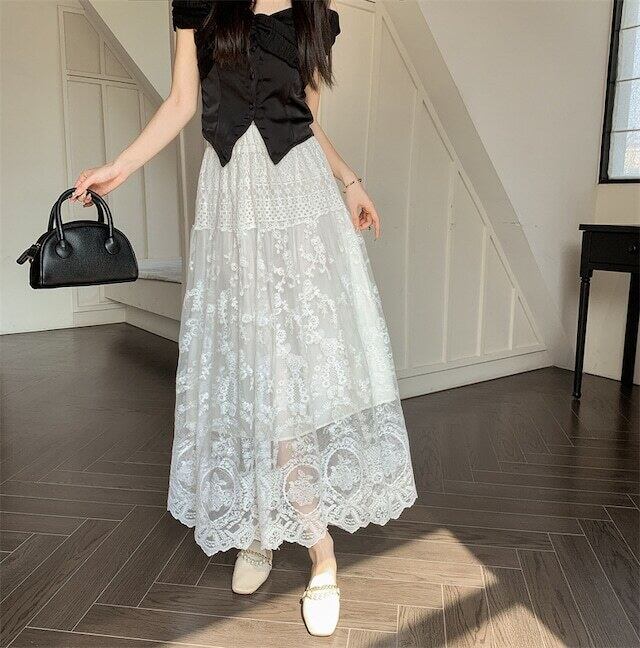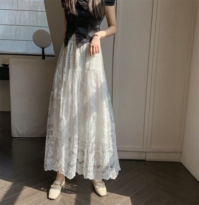 【bottoms】シースルーレーススカート GN0503