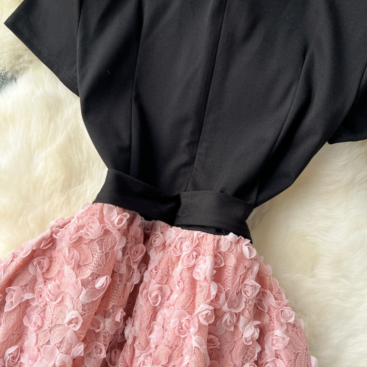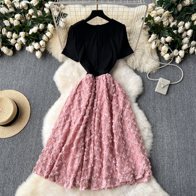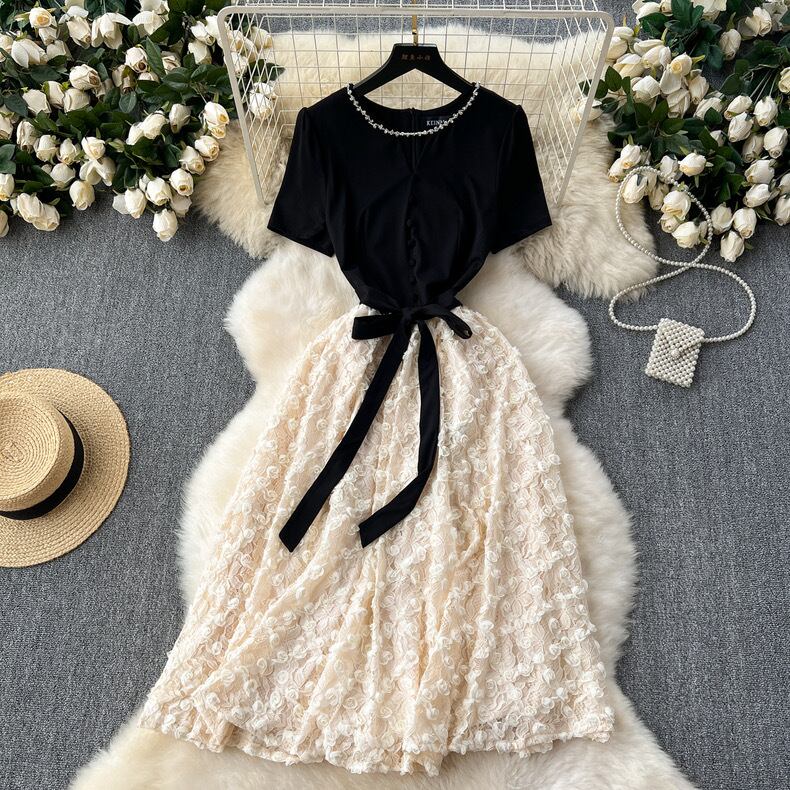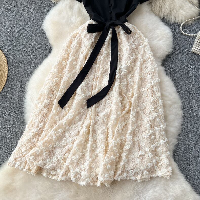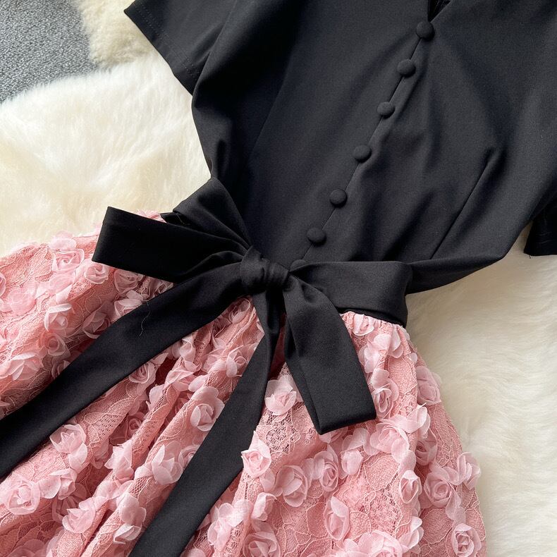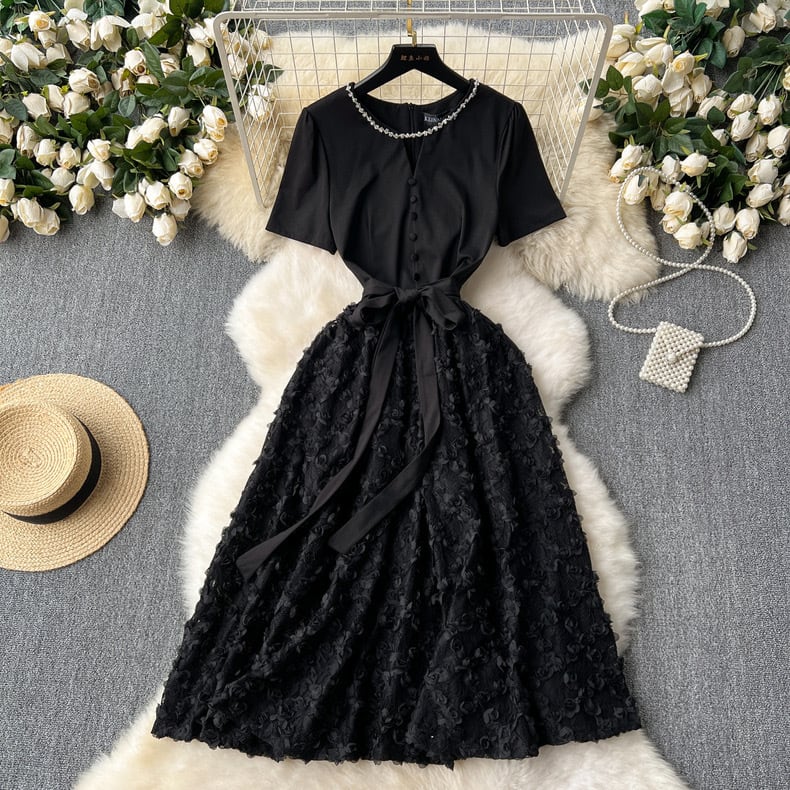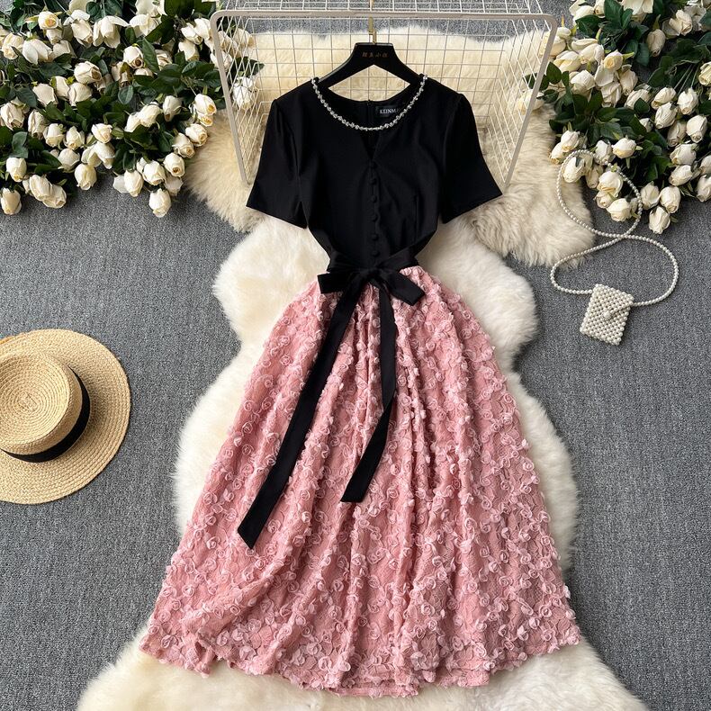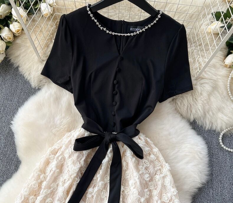 【dress】ビジューフレンチフラワー切り替えワンピース3色 CX5100