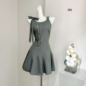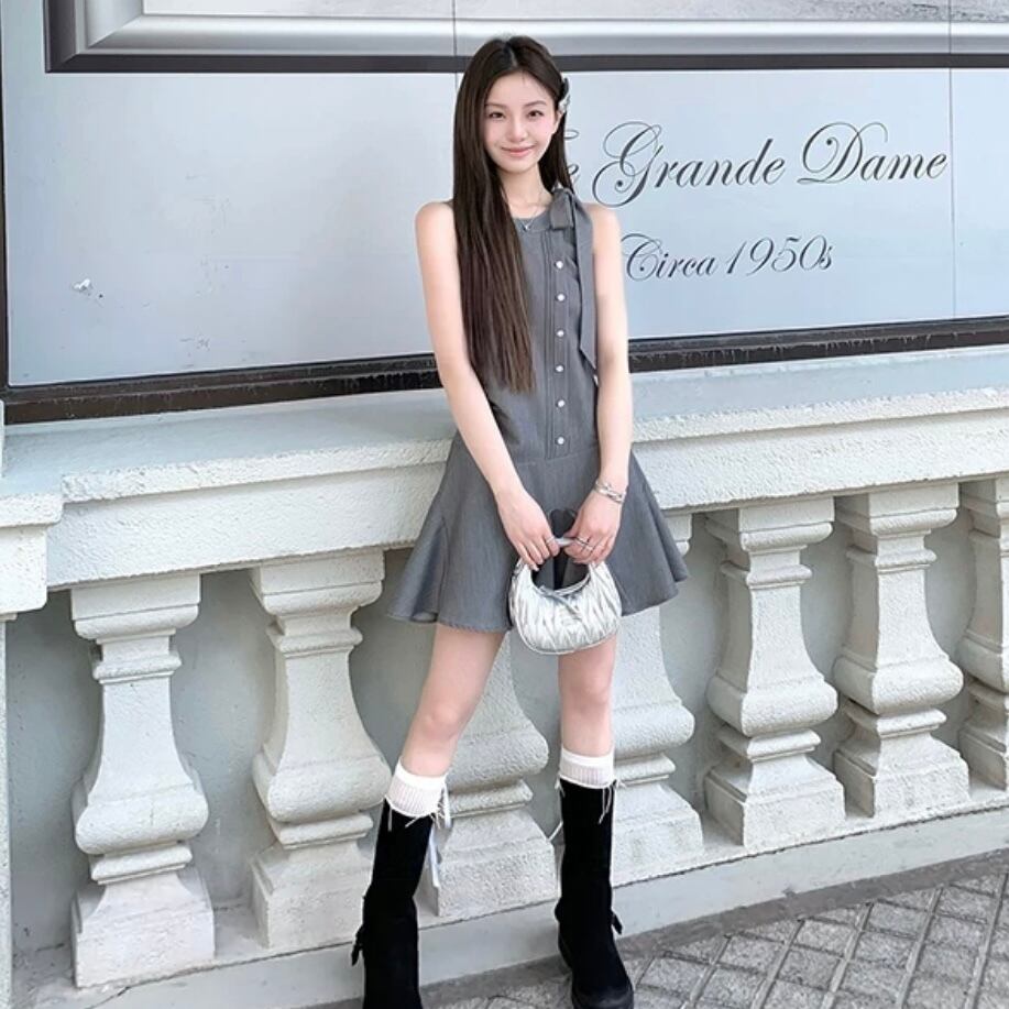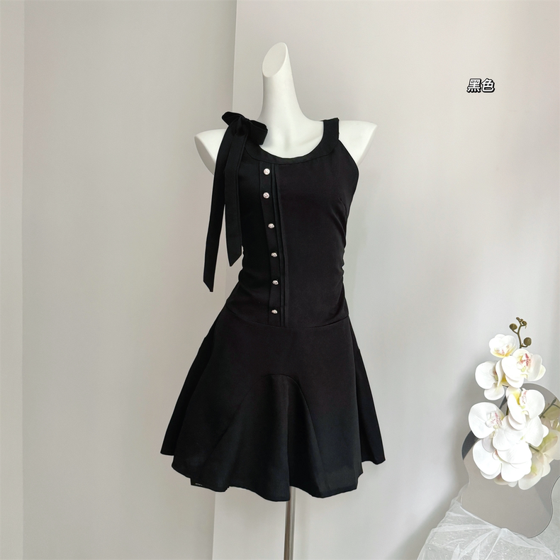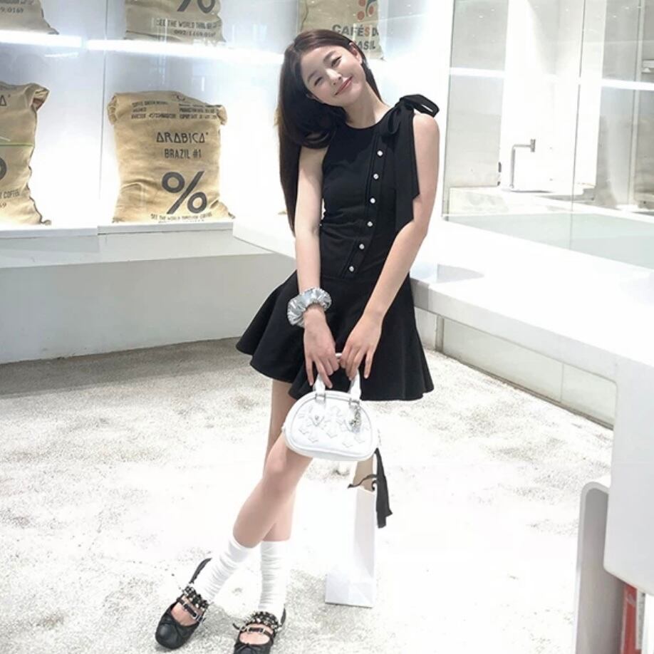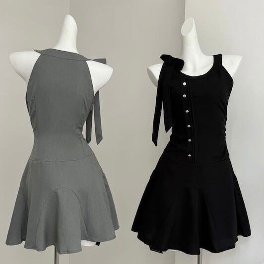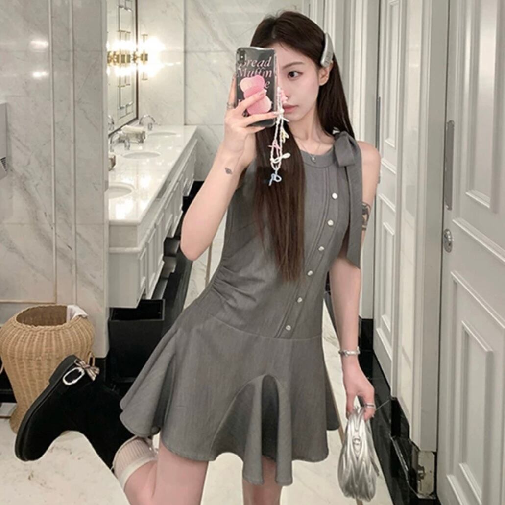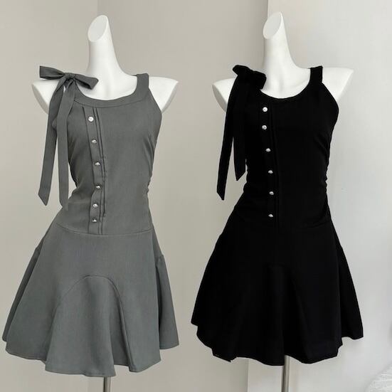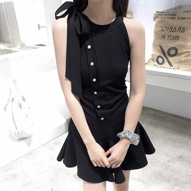 【dress】ノースリーブフロントボタンリボンワンピース AS0502