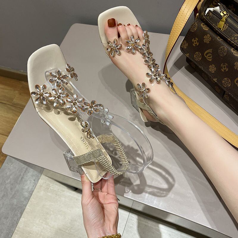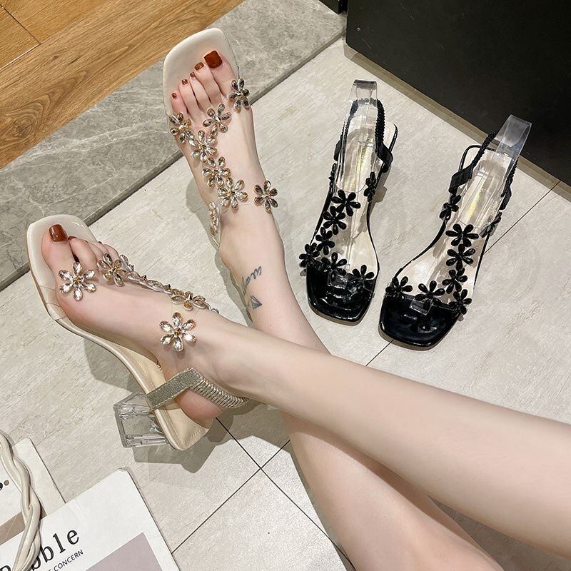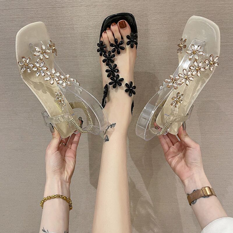 【shoes】ラインストーンフラワーサンダル2色 CX5405