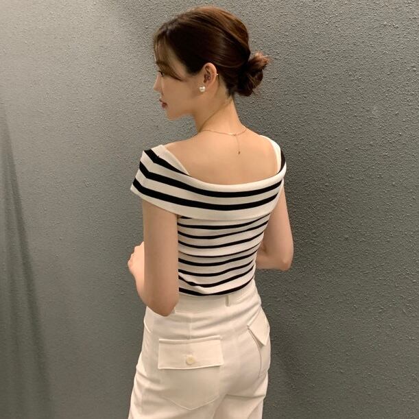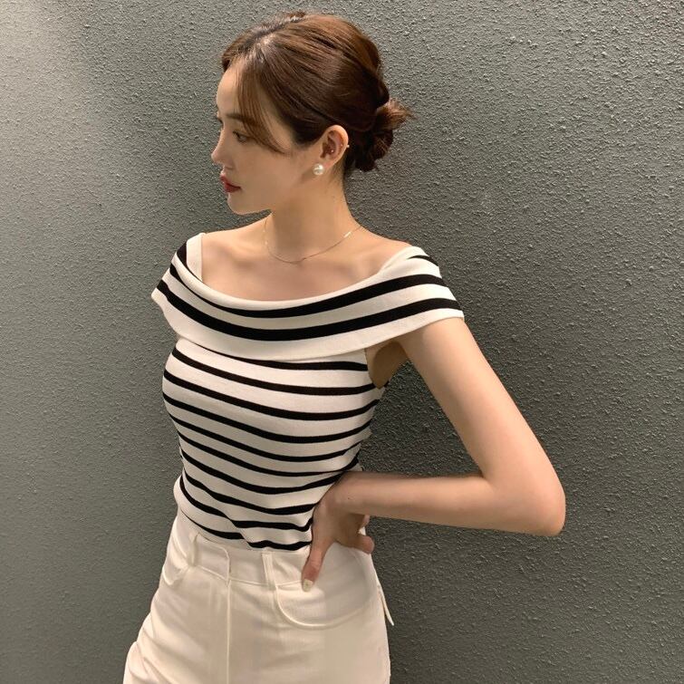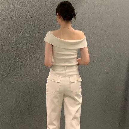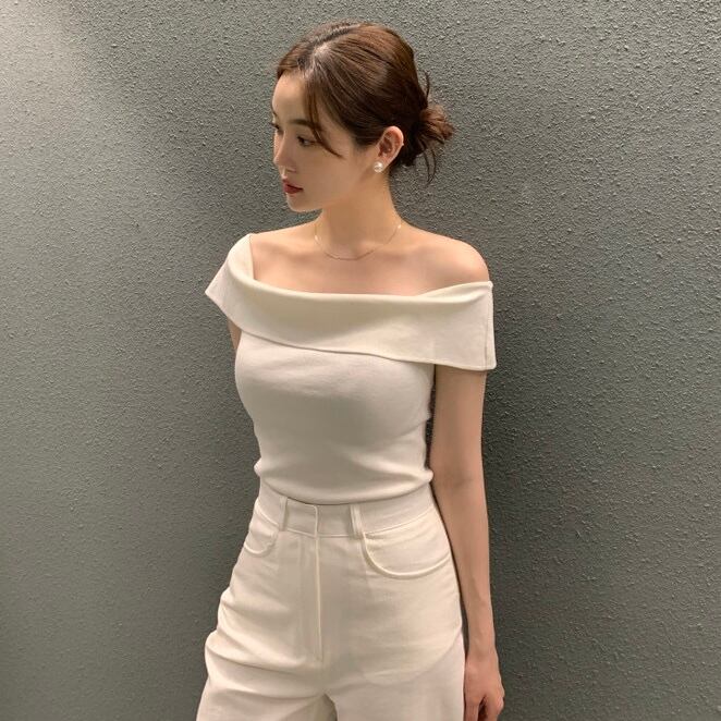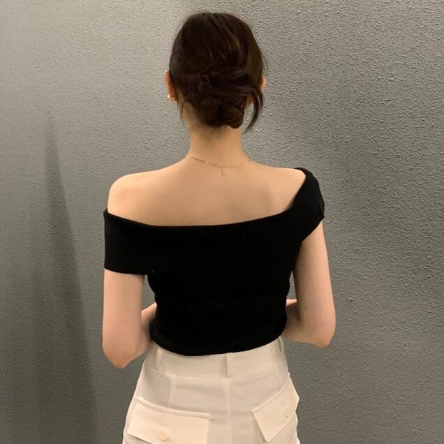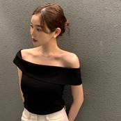 【tops】オフショルダーサマーニットトップス3色 ST0508