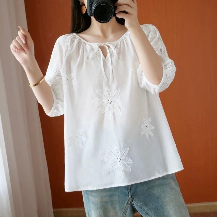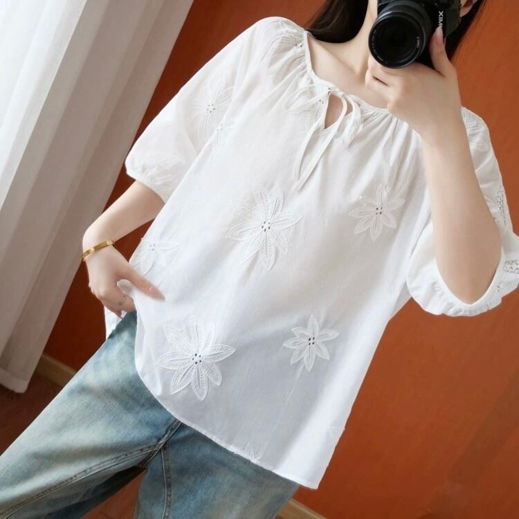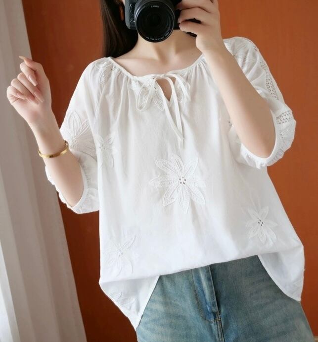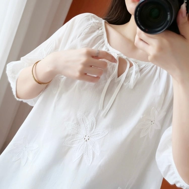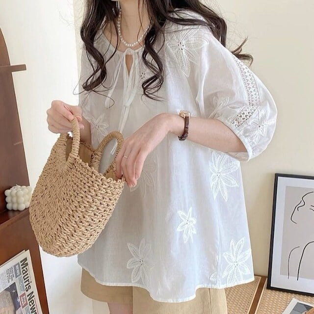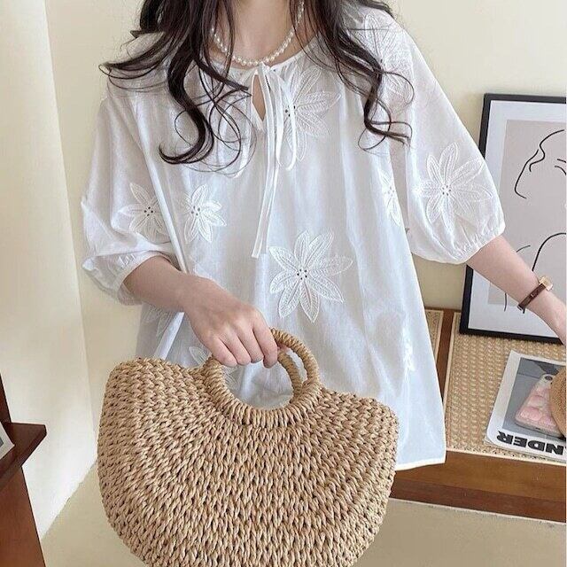 【tops】フラワー刺繍シースルートップス LK0509