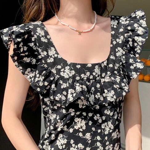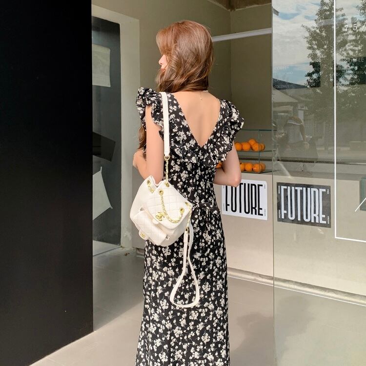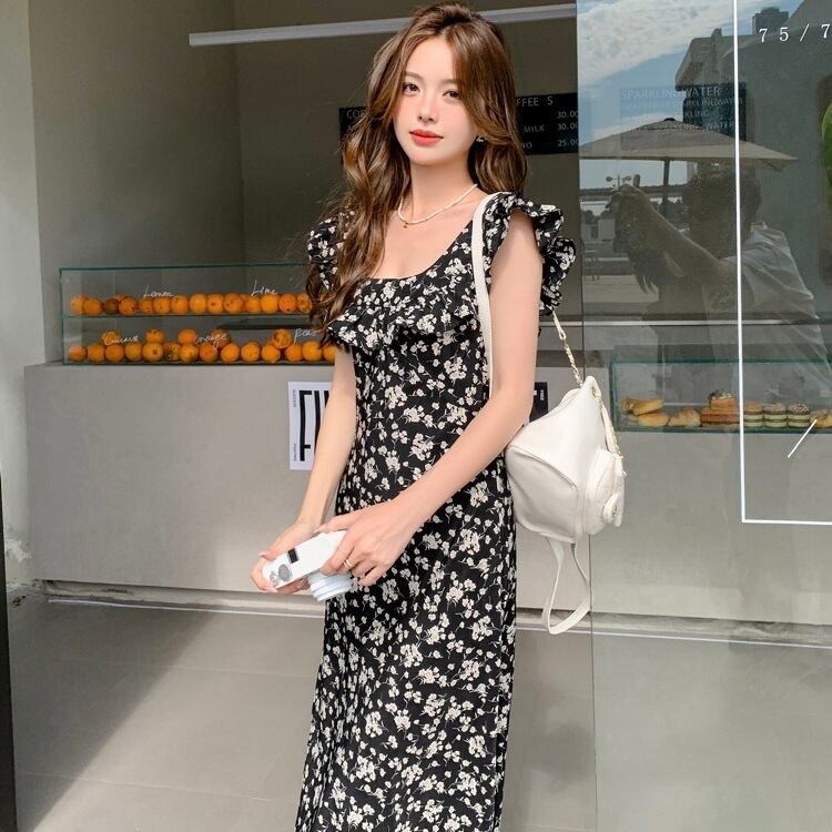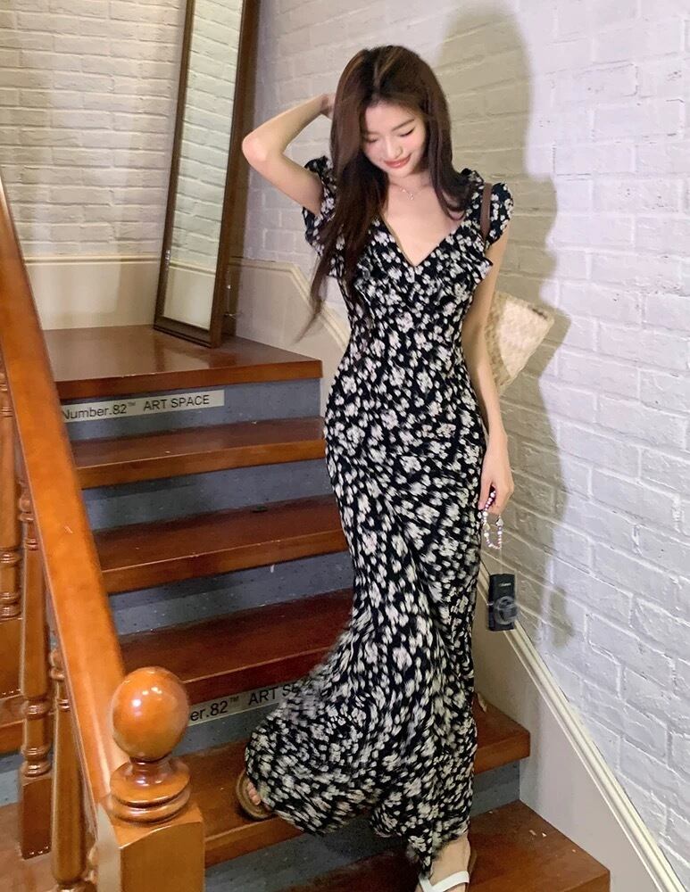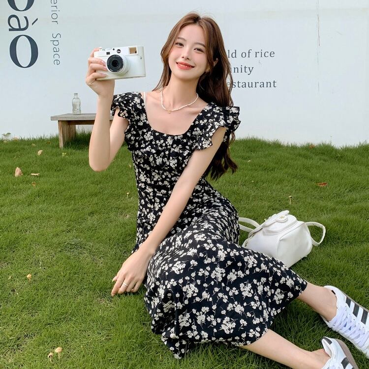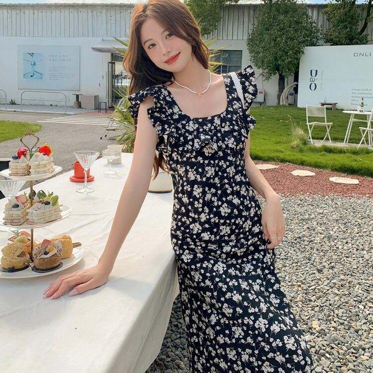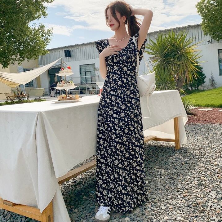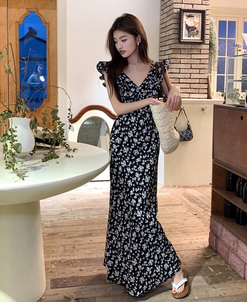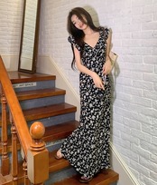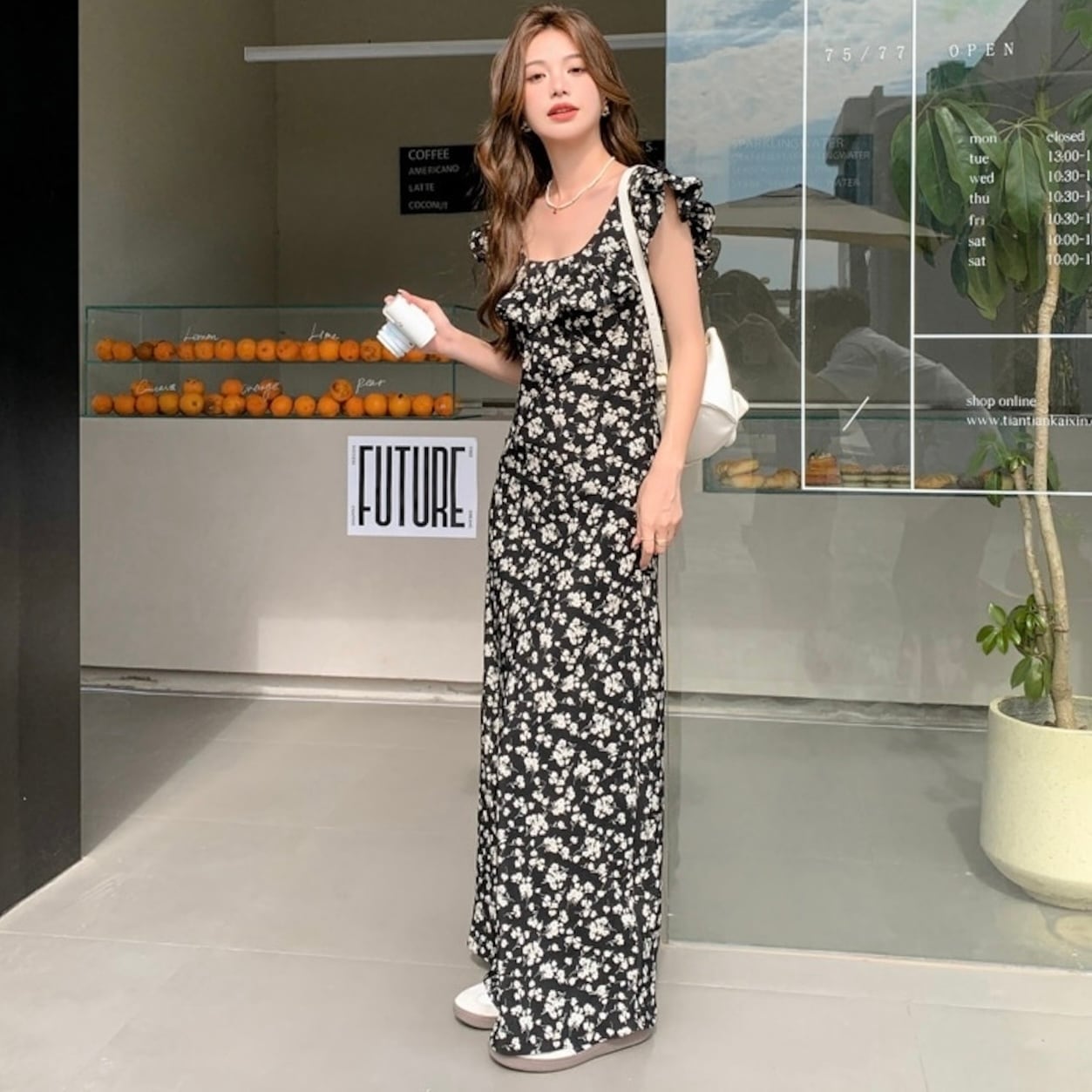 【dress】前後2wayフリル花柄ロングワンピース LK0508