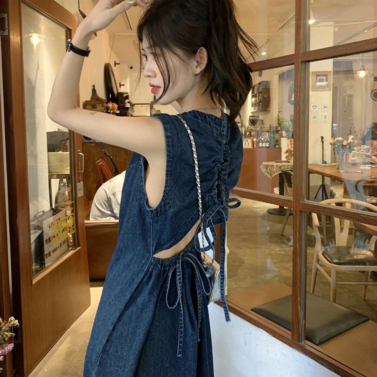 【dress】バックデザインデニムキャミワンピース JY5901