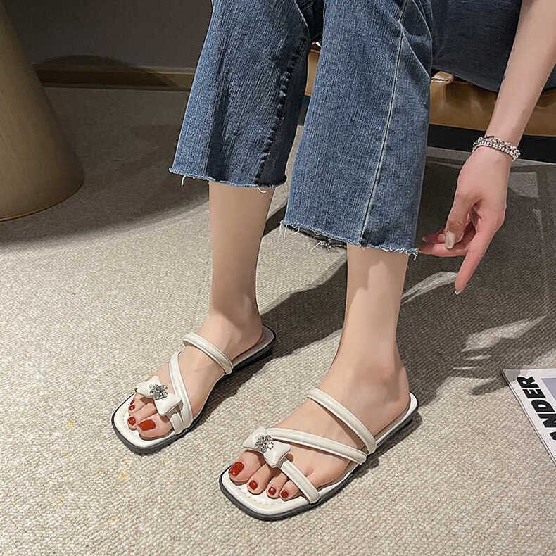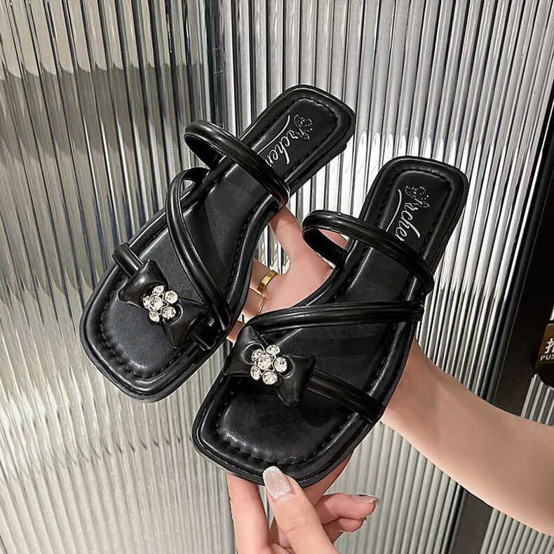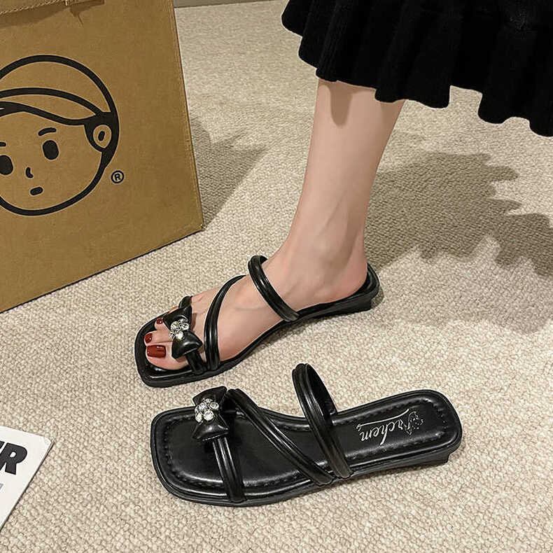【shoes】リボンポイントビジューストラップサンダル2色 BB0509