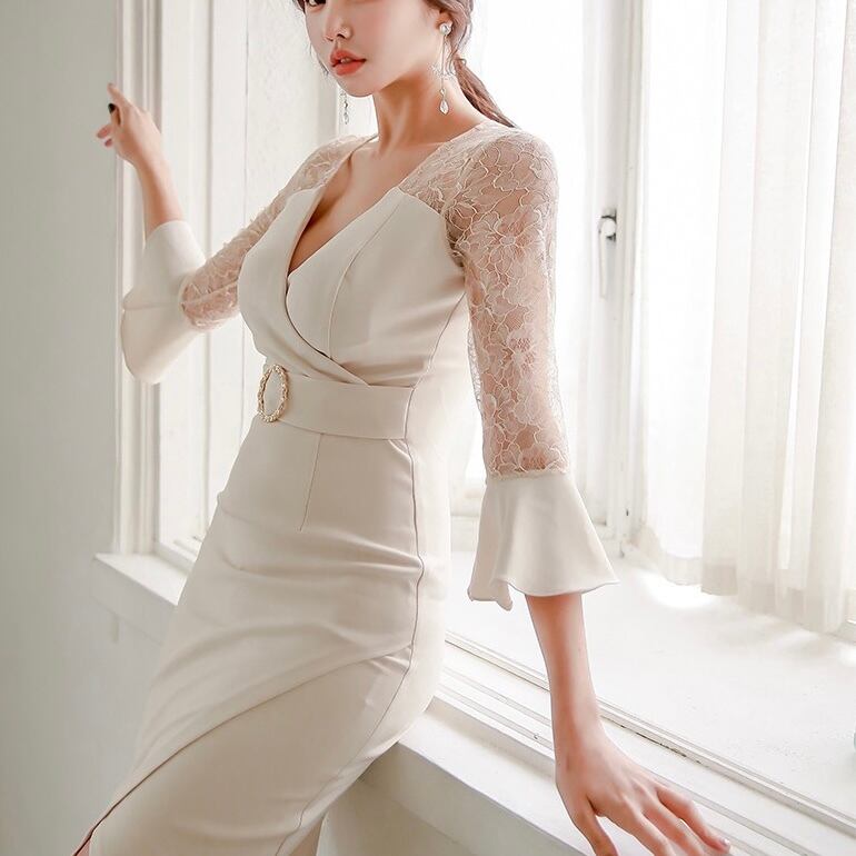 【dress】レースフリル袖エレガントドレス JY5102