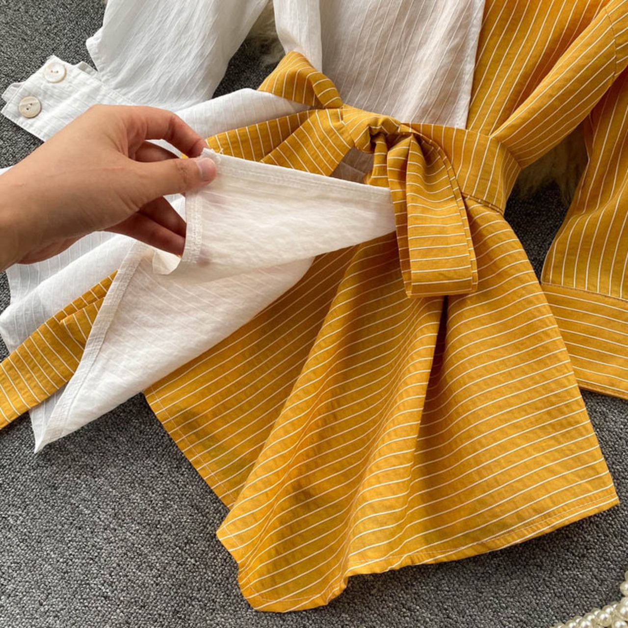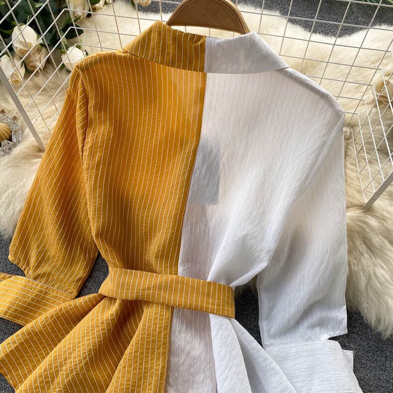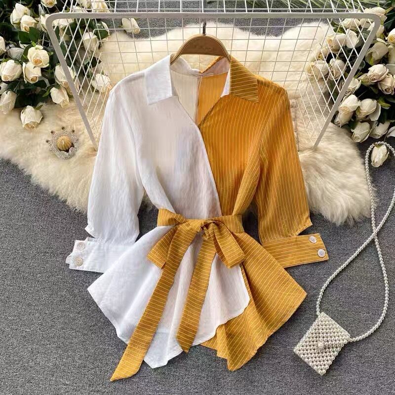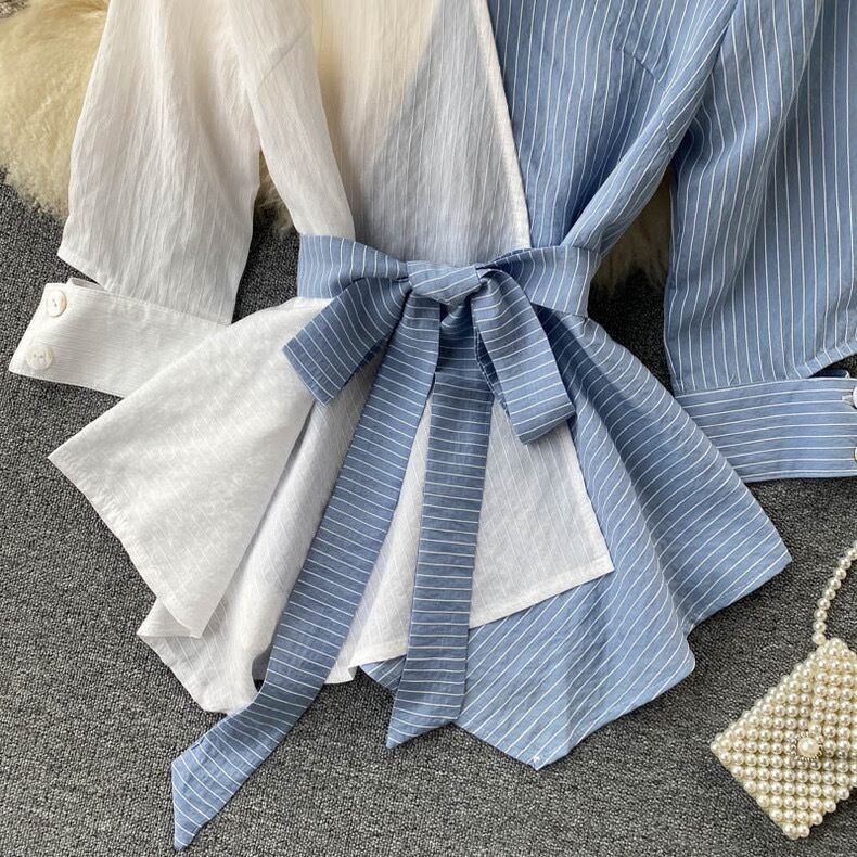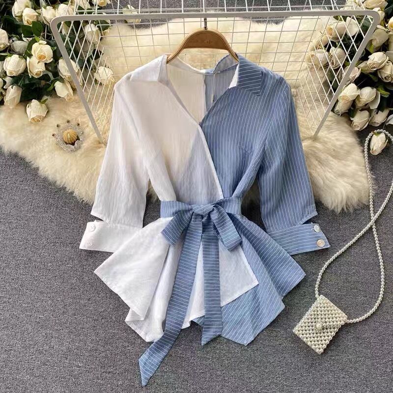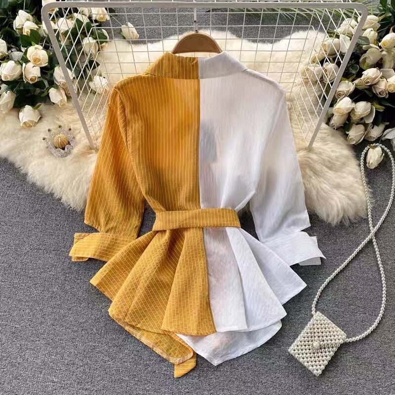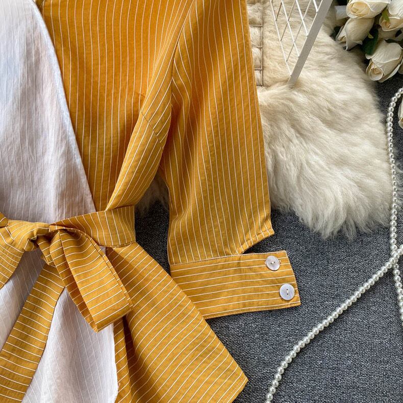 【tops】ストライプ柄配色シャツトップス2色 SY5112