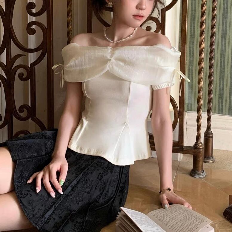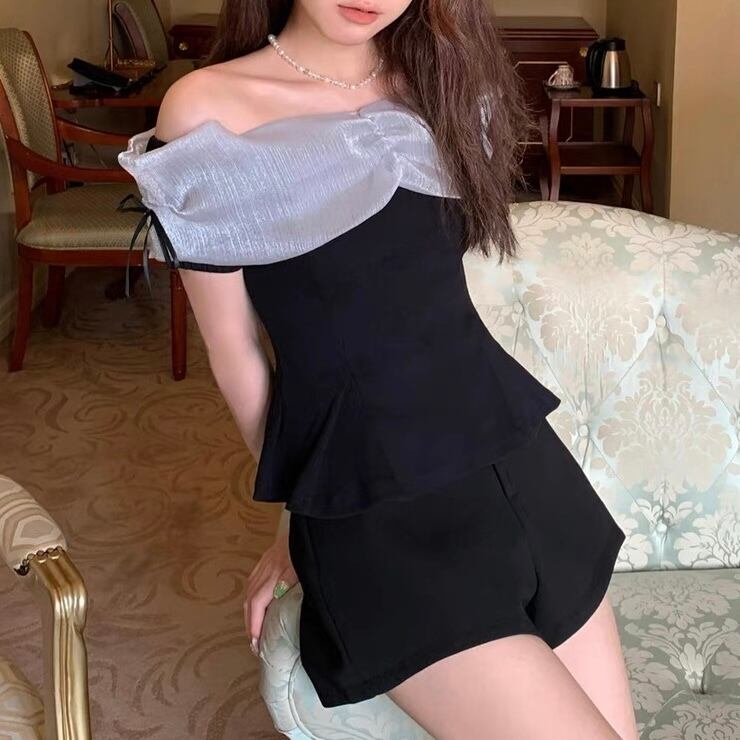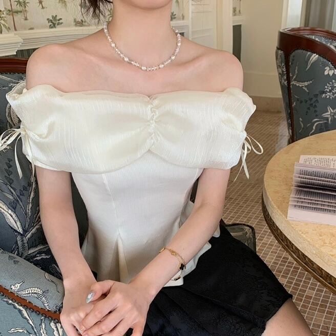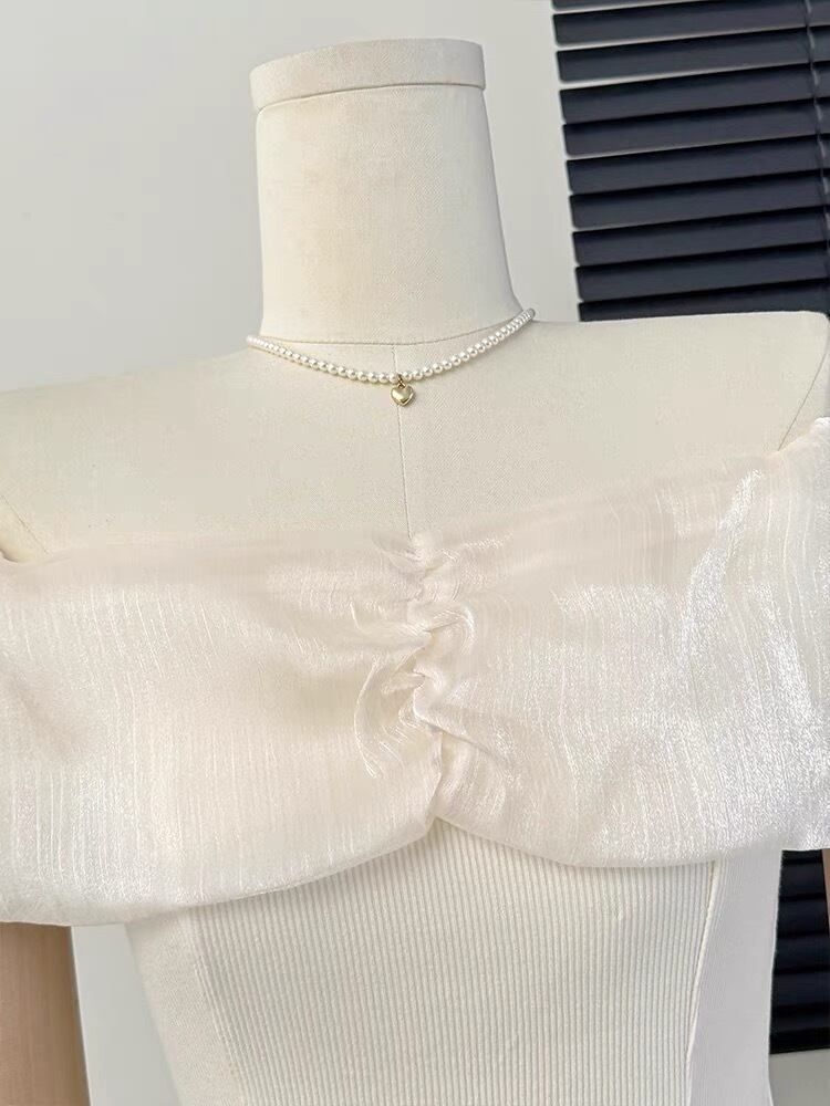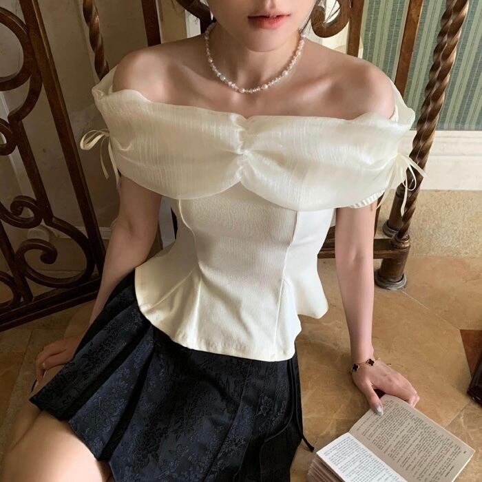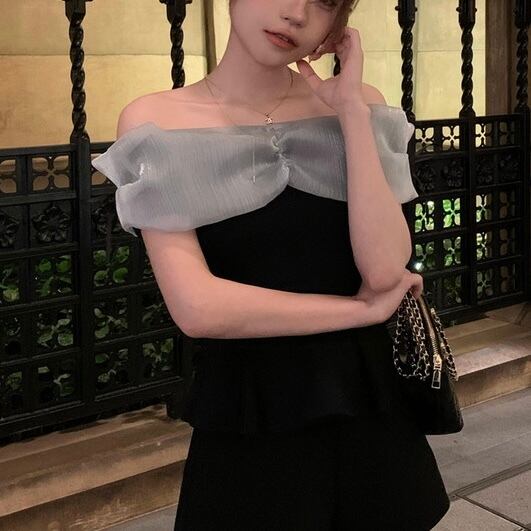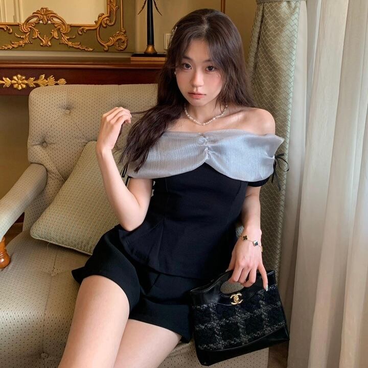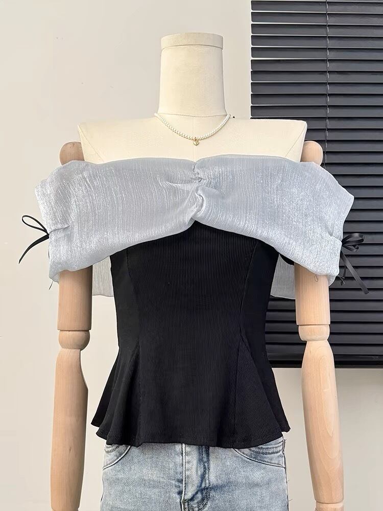 【tops】オフショルダーニット切り替えトップス2色 ZM5120