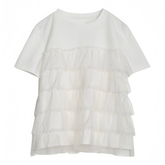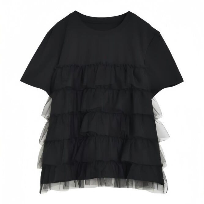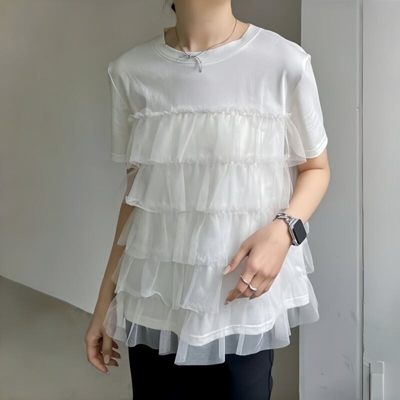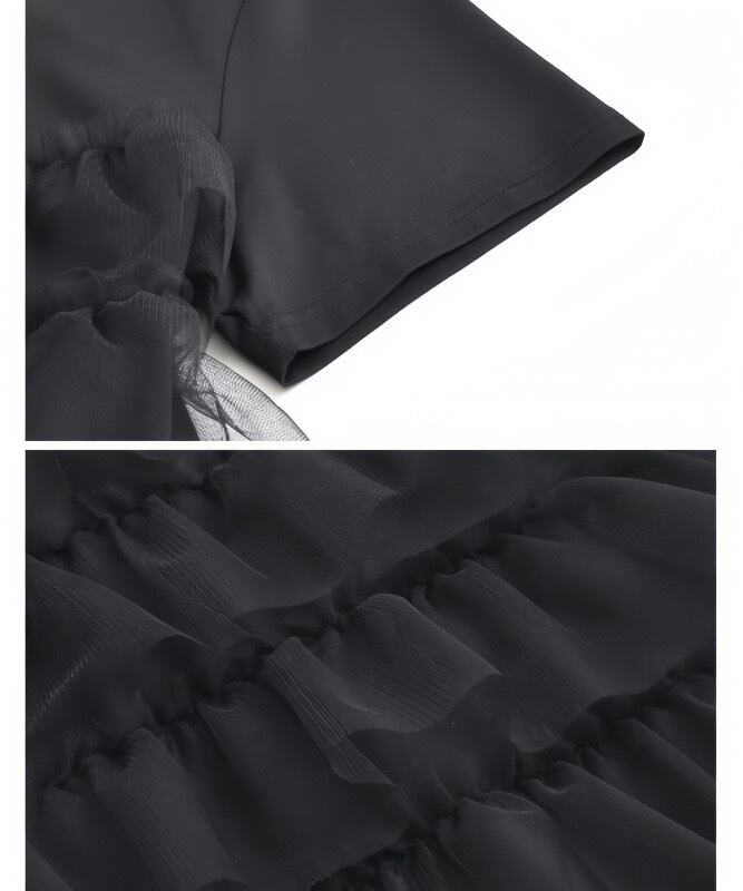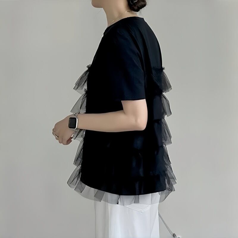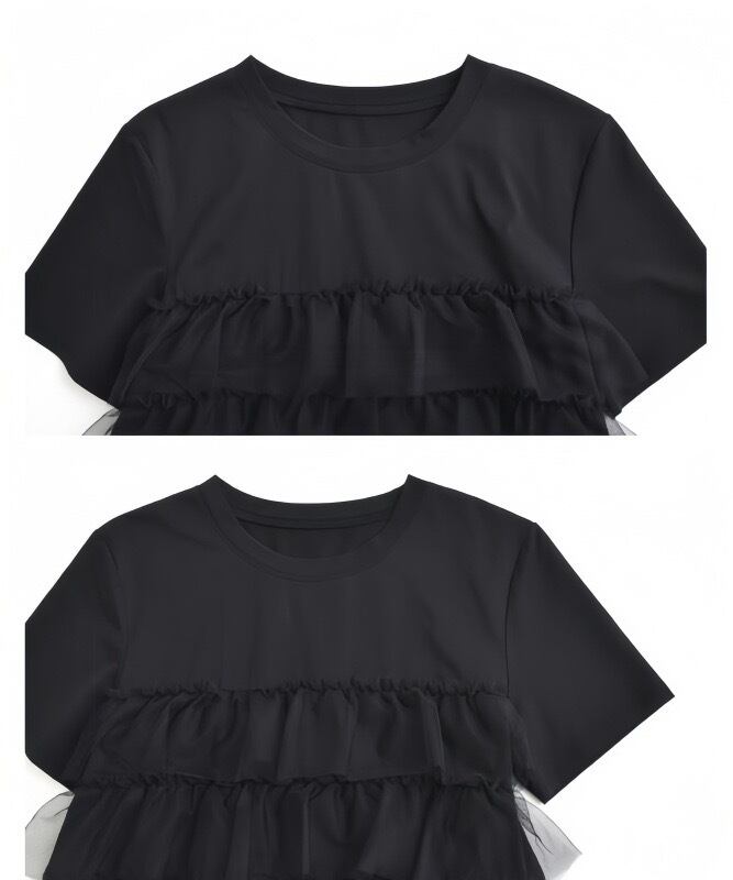 【tops】ラウンドネックチュール切り替えトップス2色 JY5130