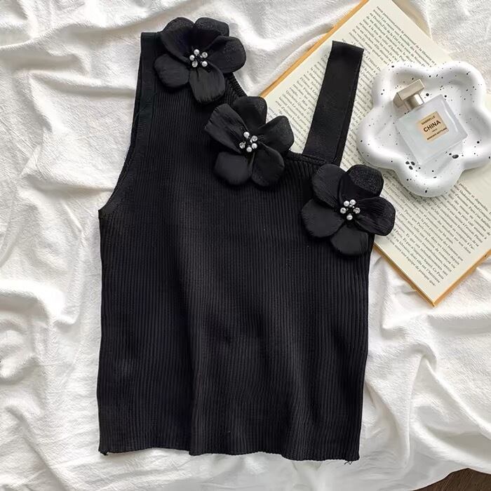 【tops】不規則フラワーキャミソールトップス2色 JY5135