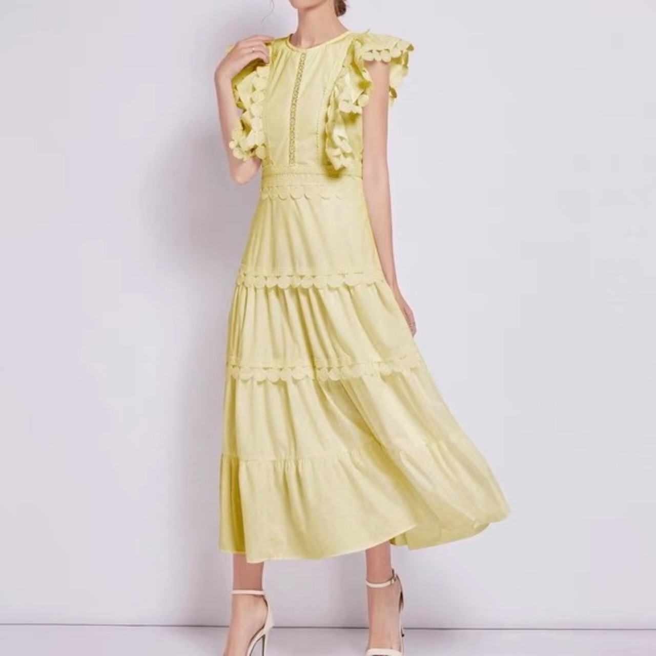 【dress】ラッフルフリルスリーブワンピース3色 JY5141