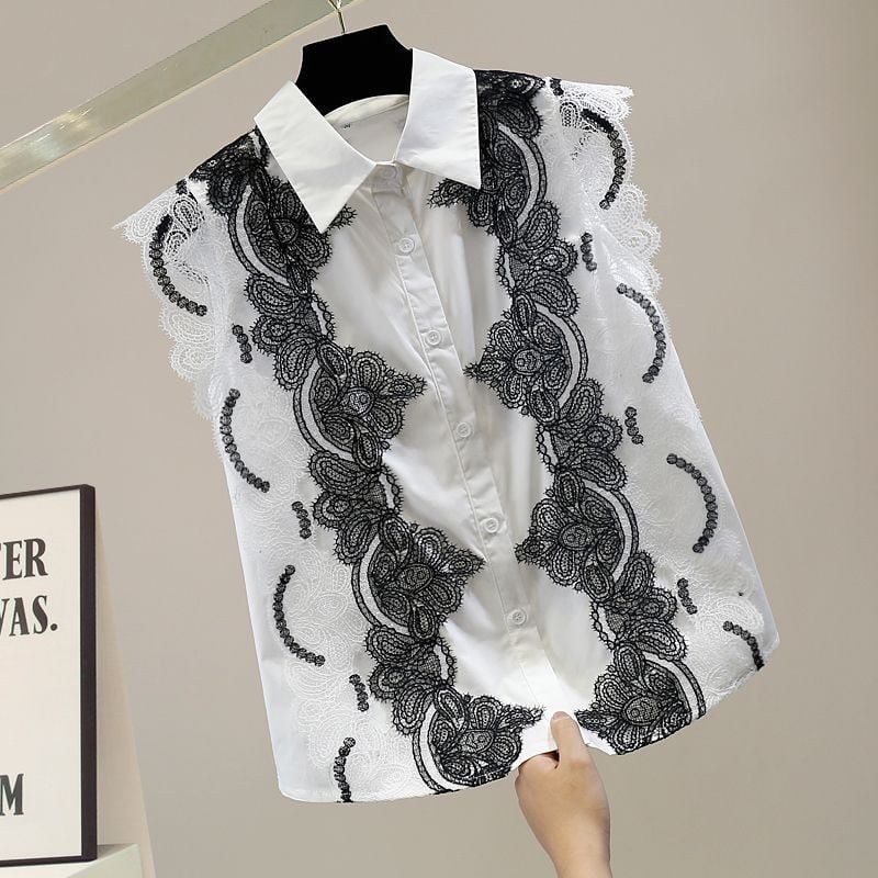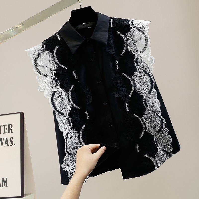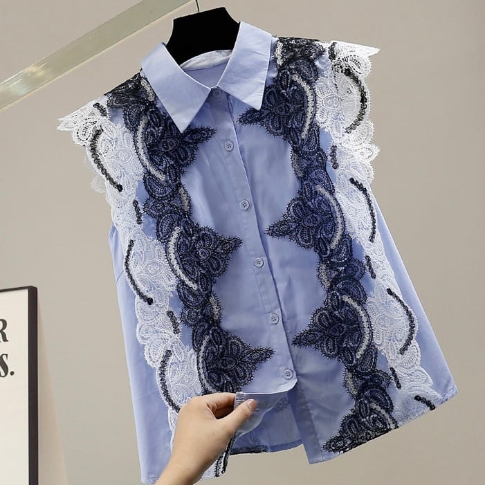 【tops】ノースリーブレースステッチシャツ3色 XG0007