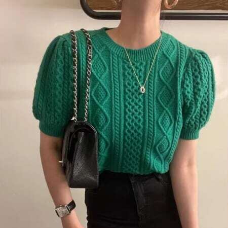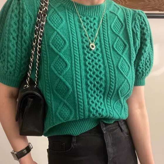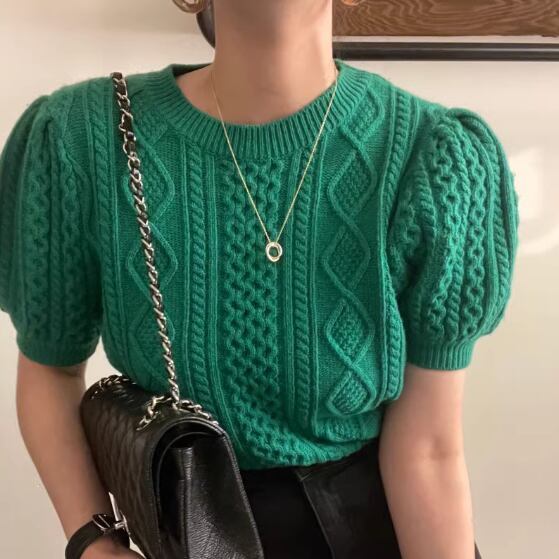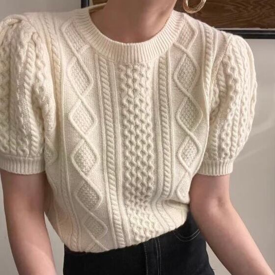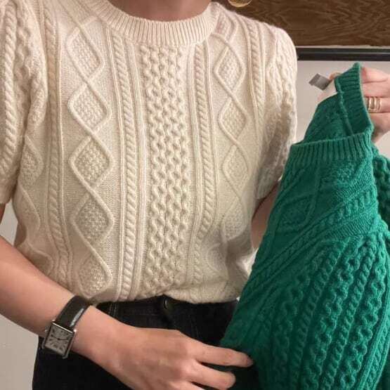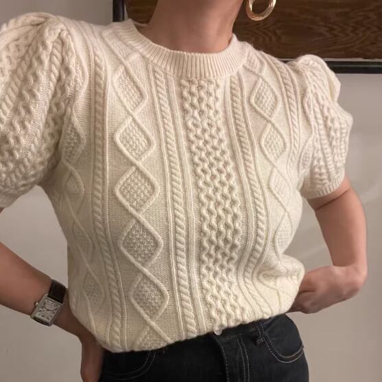 【tops】パフスリーブケーブルニット2色 XG0008