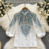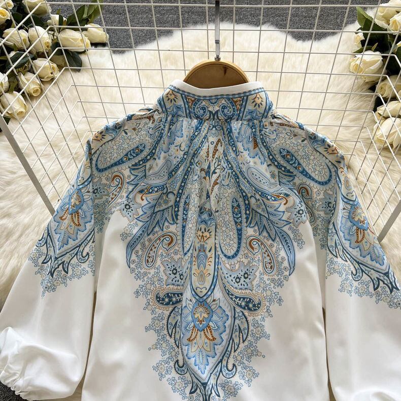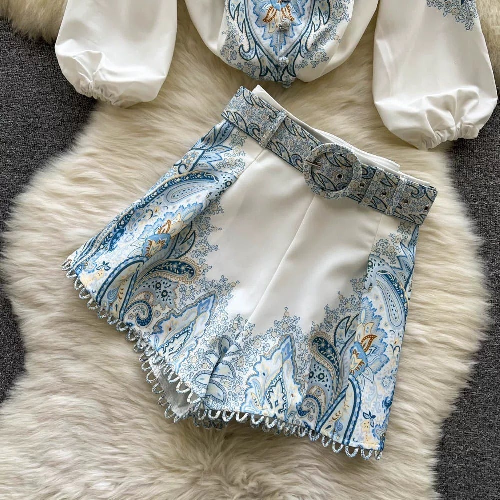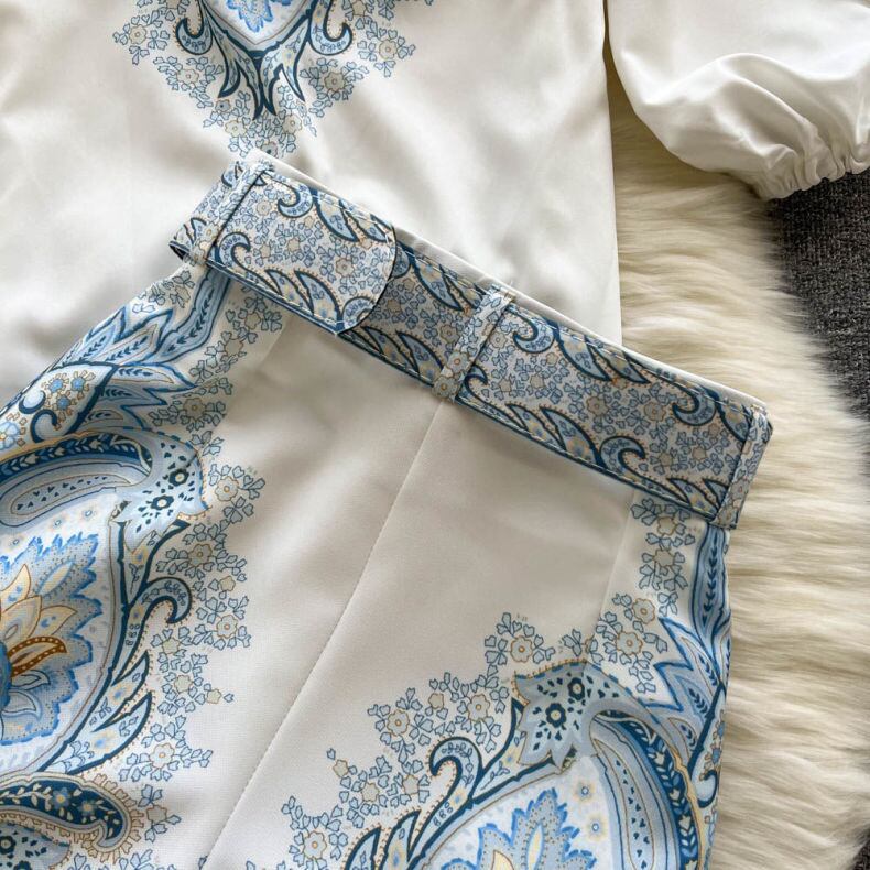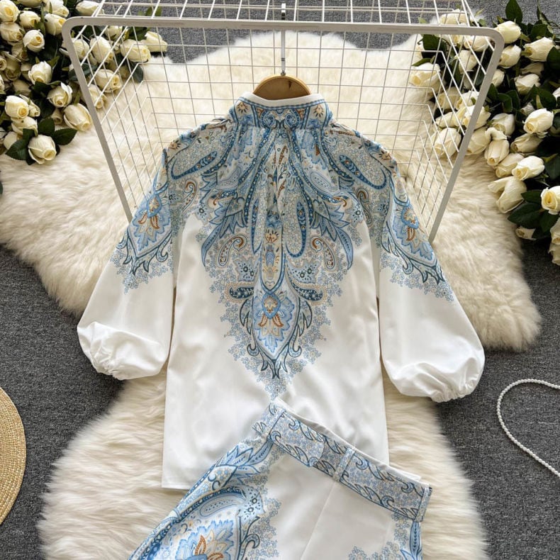 【set】プリントパフスリーブトップスxハイウエストパンツ JY5150