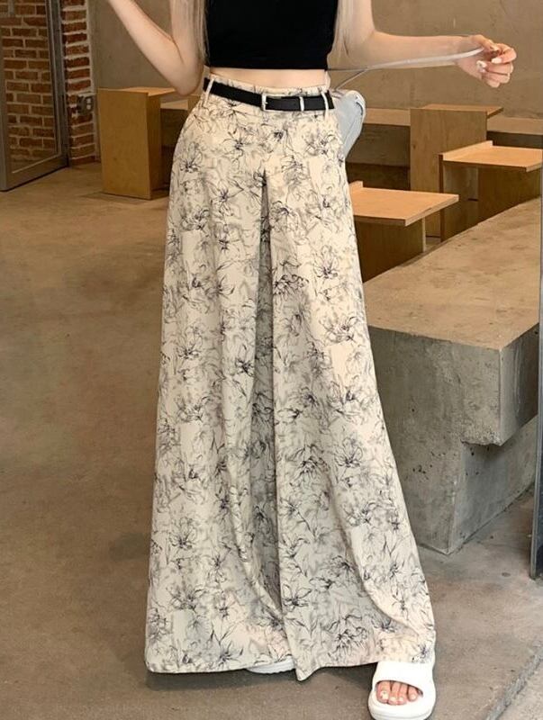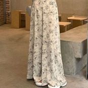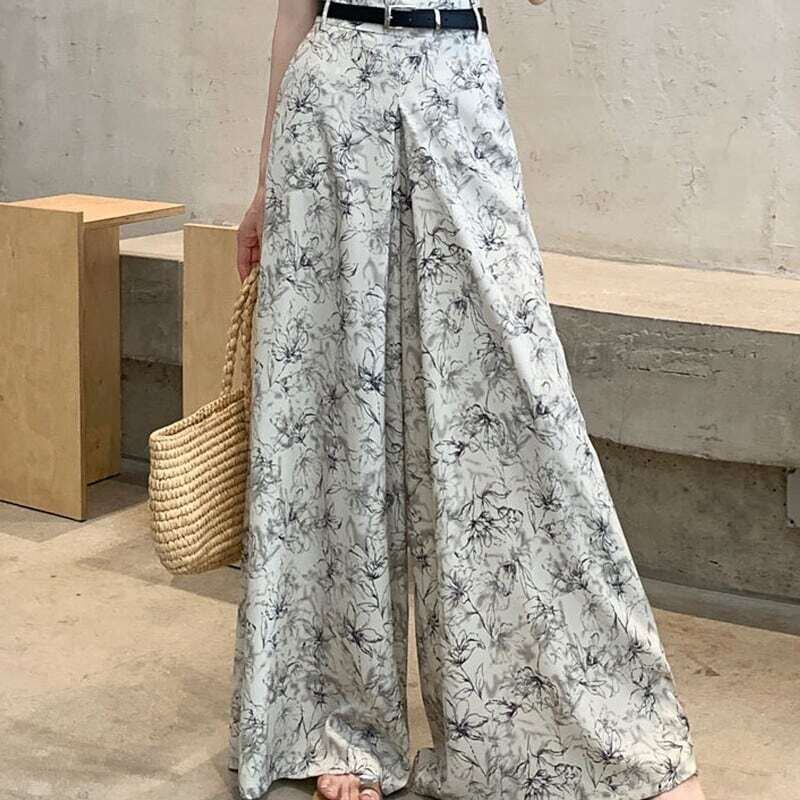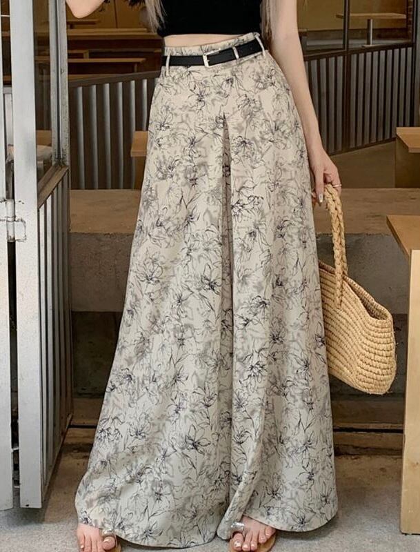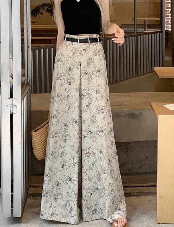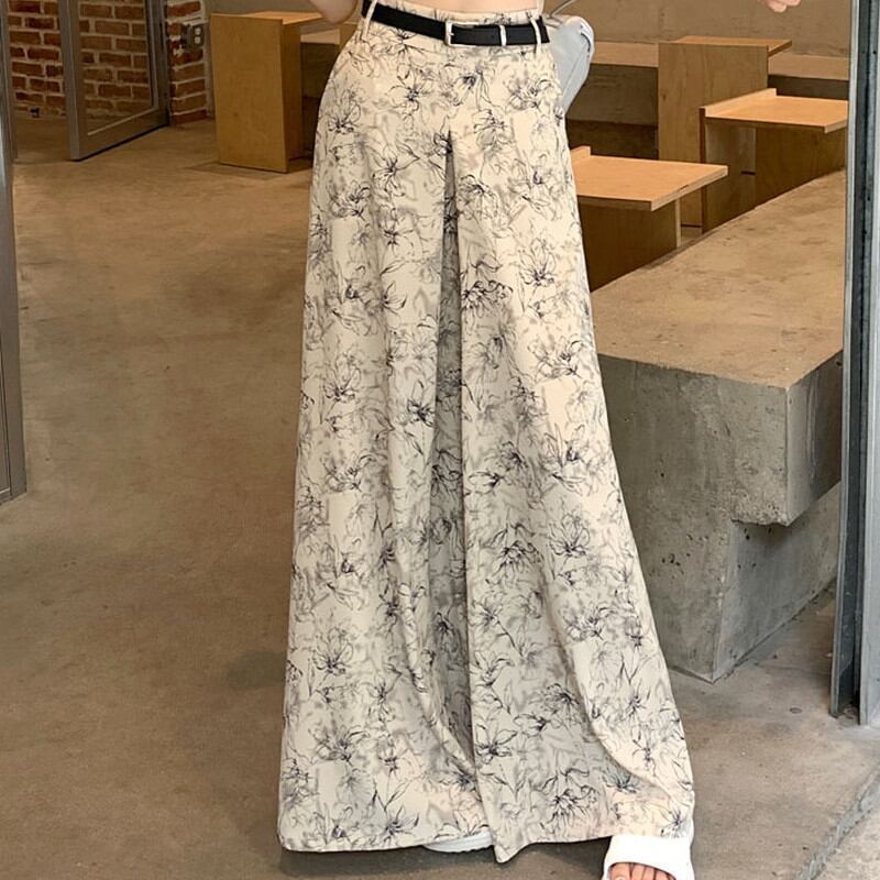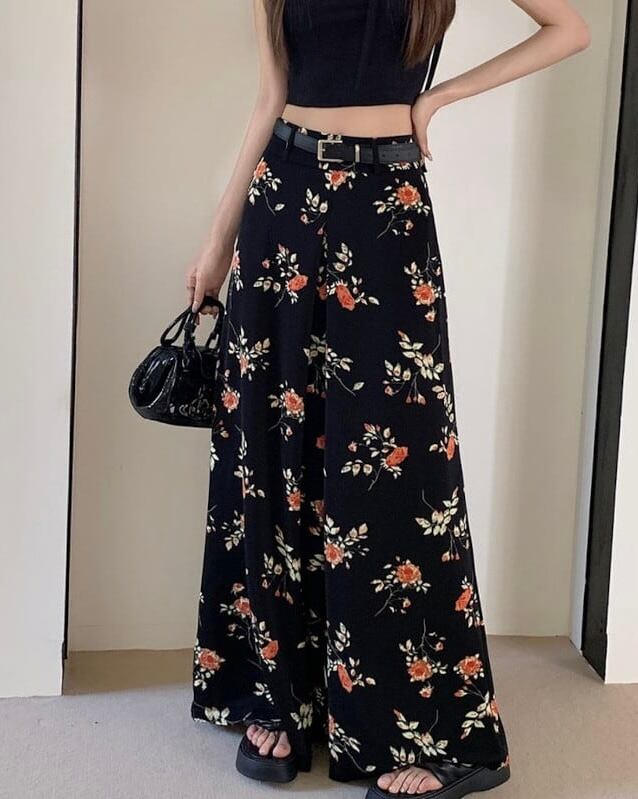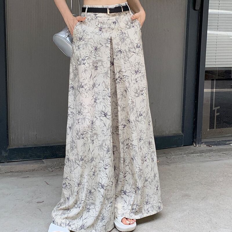 【bottoms】ワイドレッグ花柄シフォンパンツ2色 XG0021