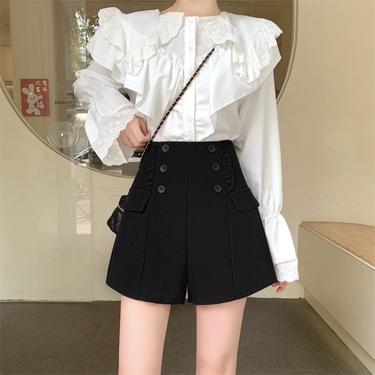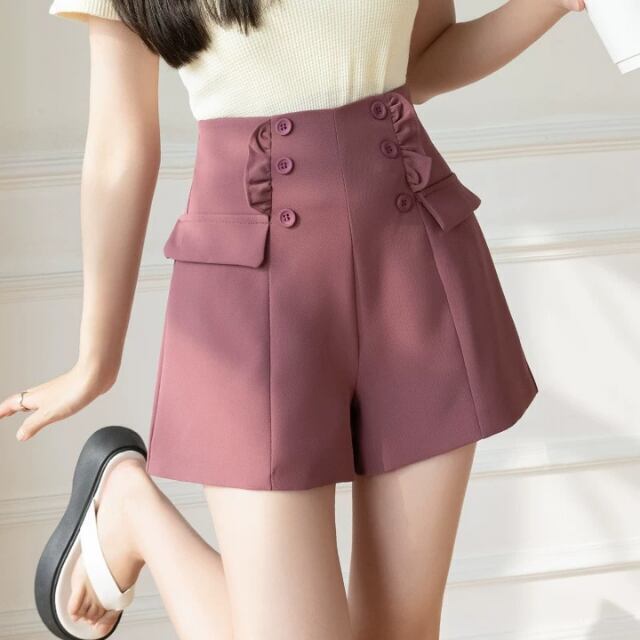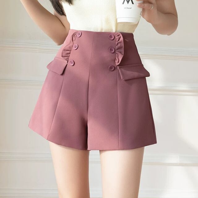 【bottoms】ダブルボタンフリルショートパンツ3色 XG0022