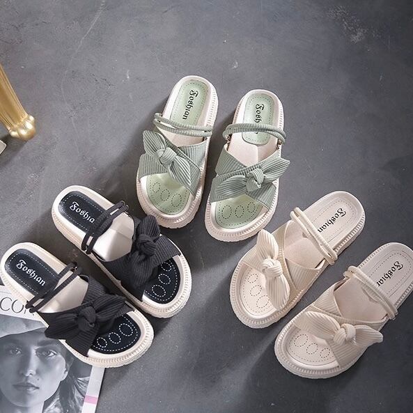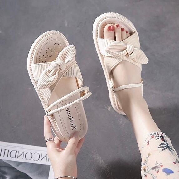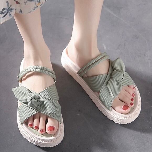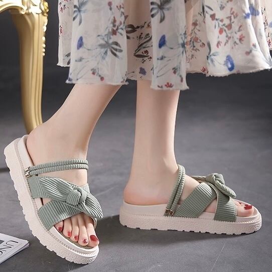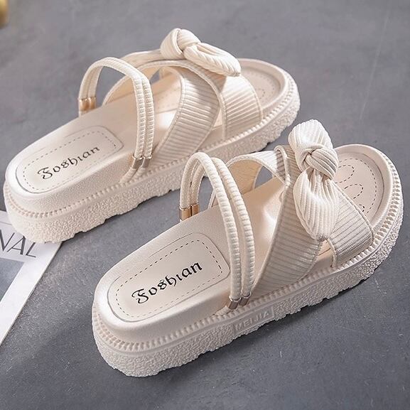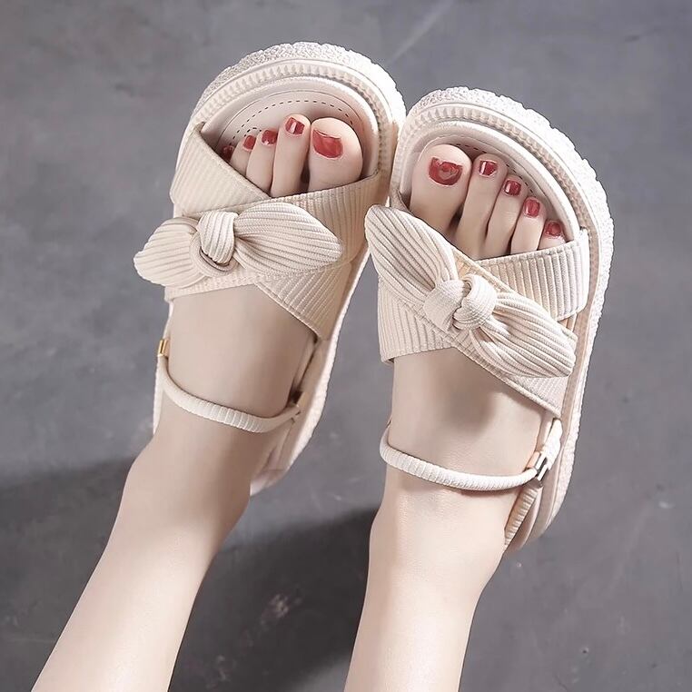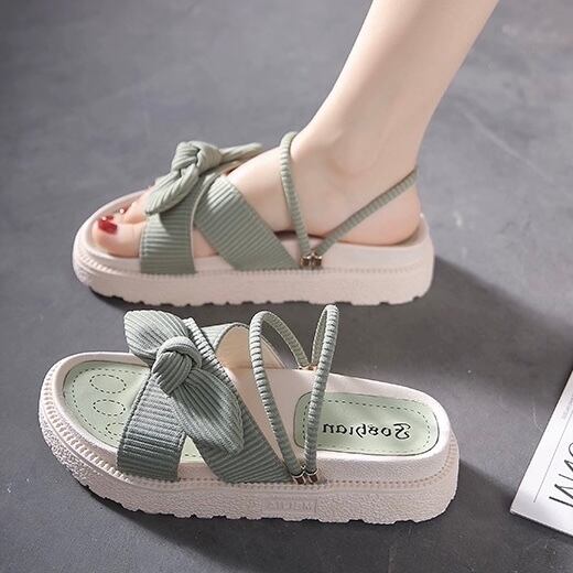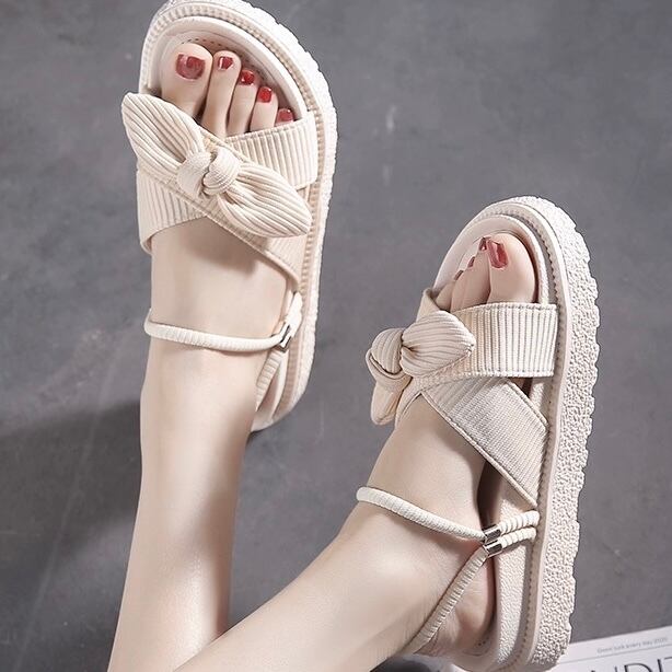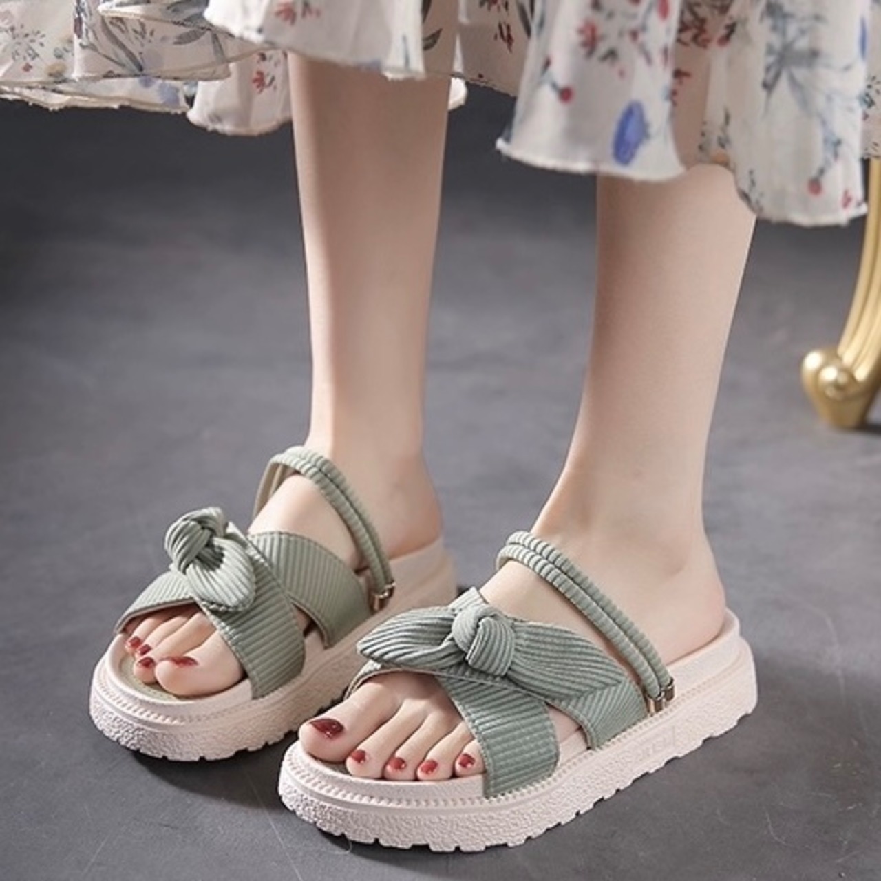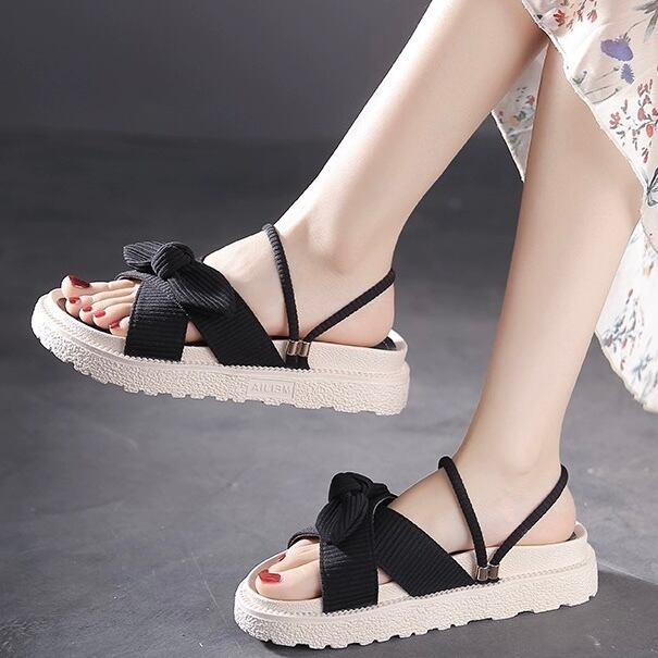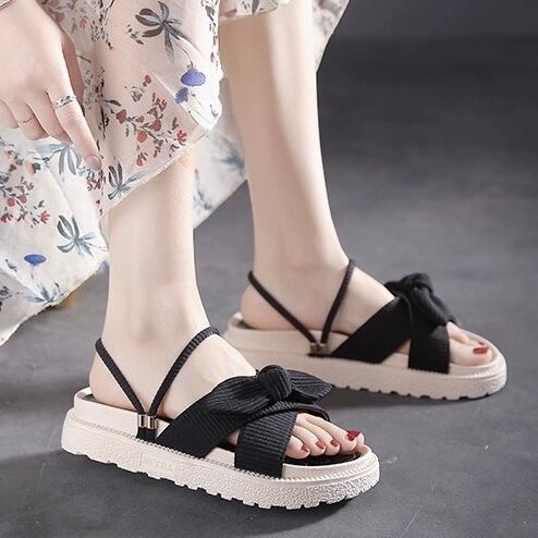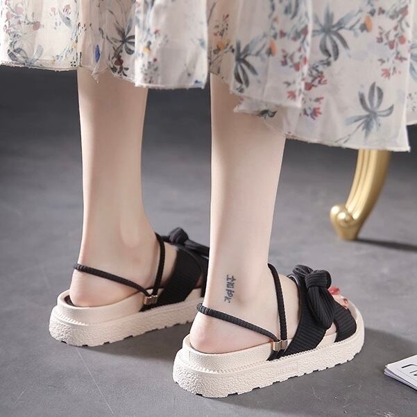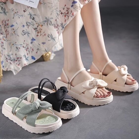 【shoes】厚底クロスデザインリボンサンダル3色 MN1001