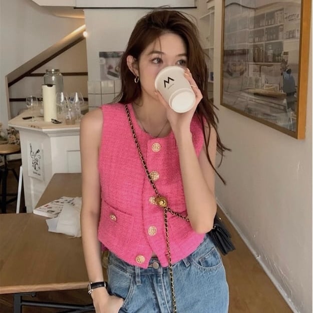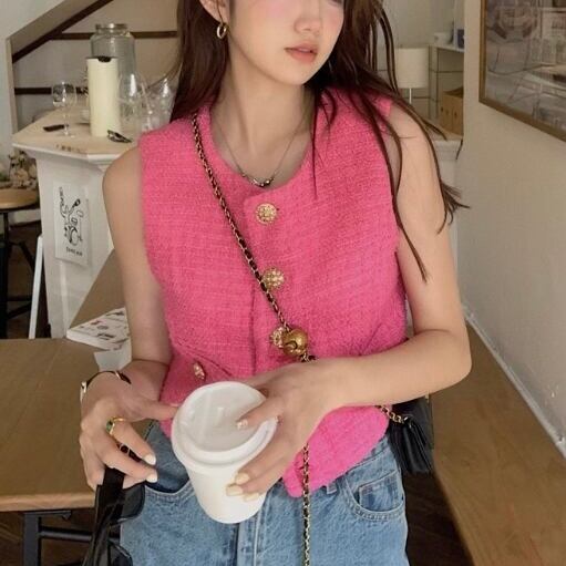 【outer】ゴールドボタンツイードベスト MN1003