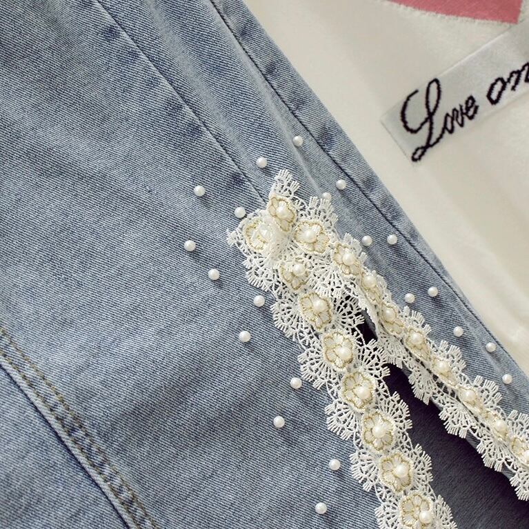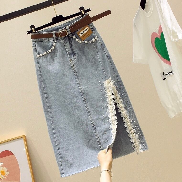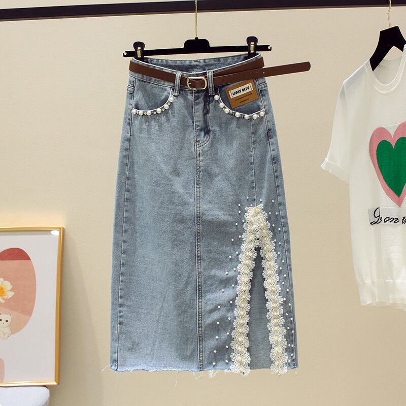 【bottoms】スリット入りパールデニムスカート JY5171