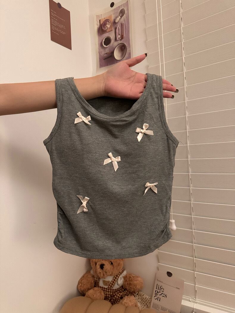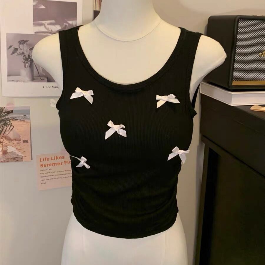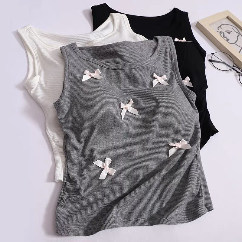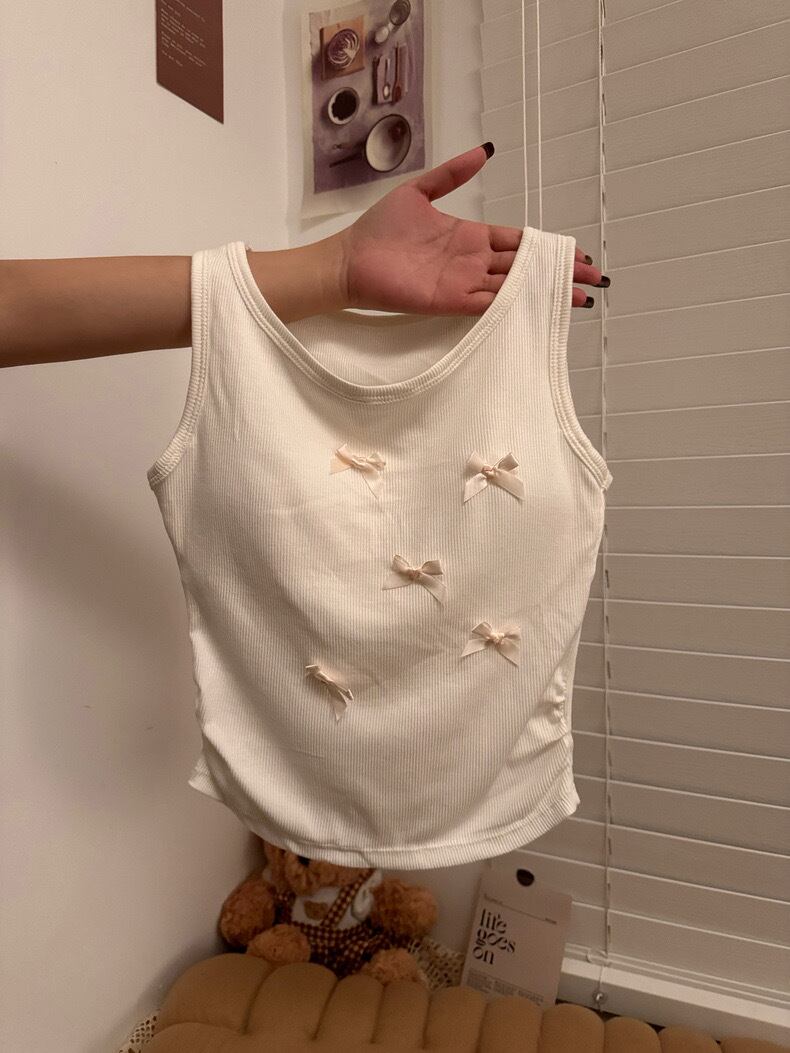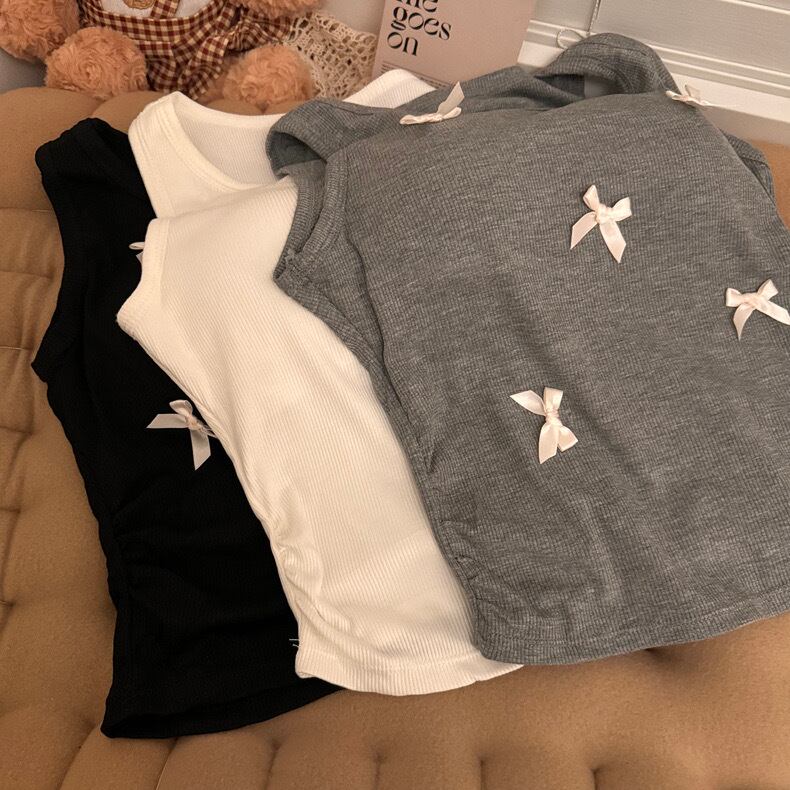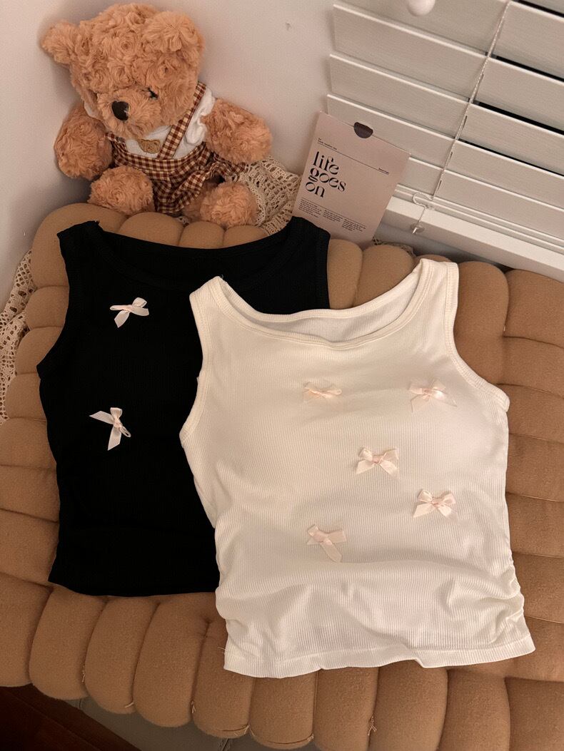 【tops】リボンデザインリブキャミソールトップス3色 ZM5183