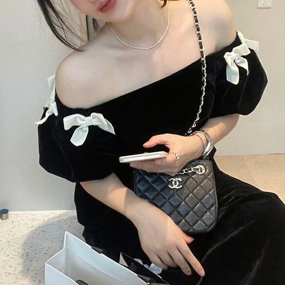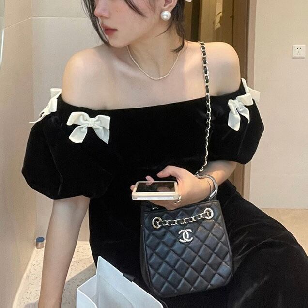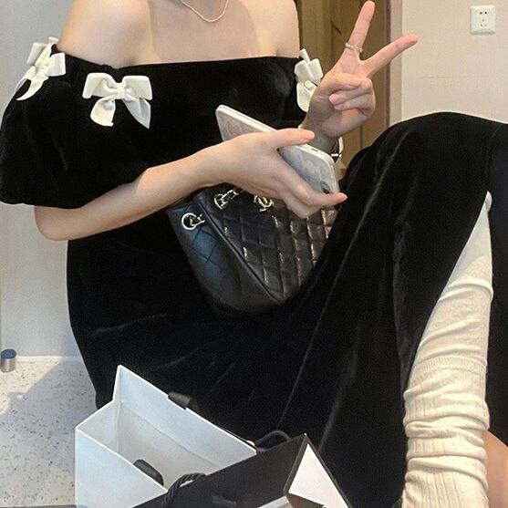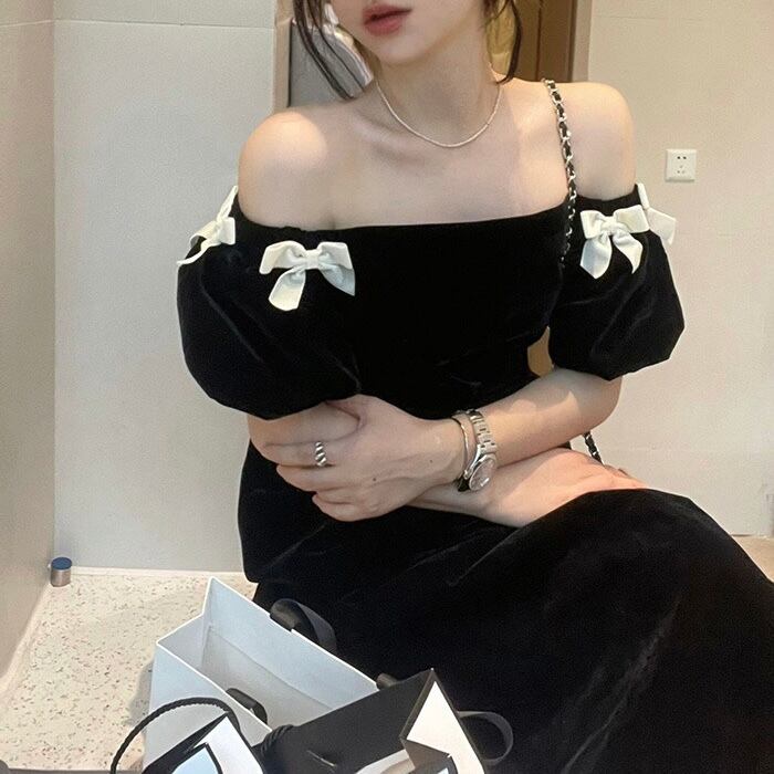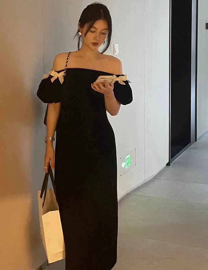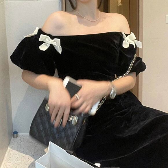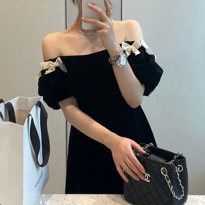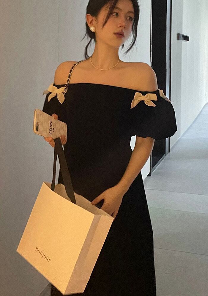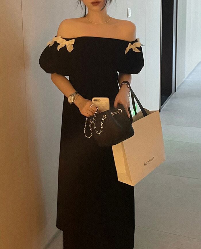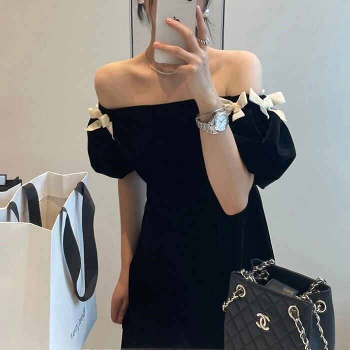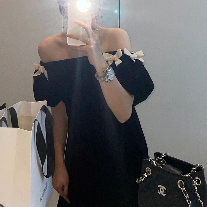 【dress】オフショルダーミニリボンワンピース LK2701