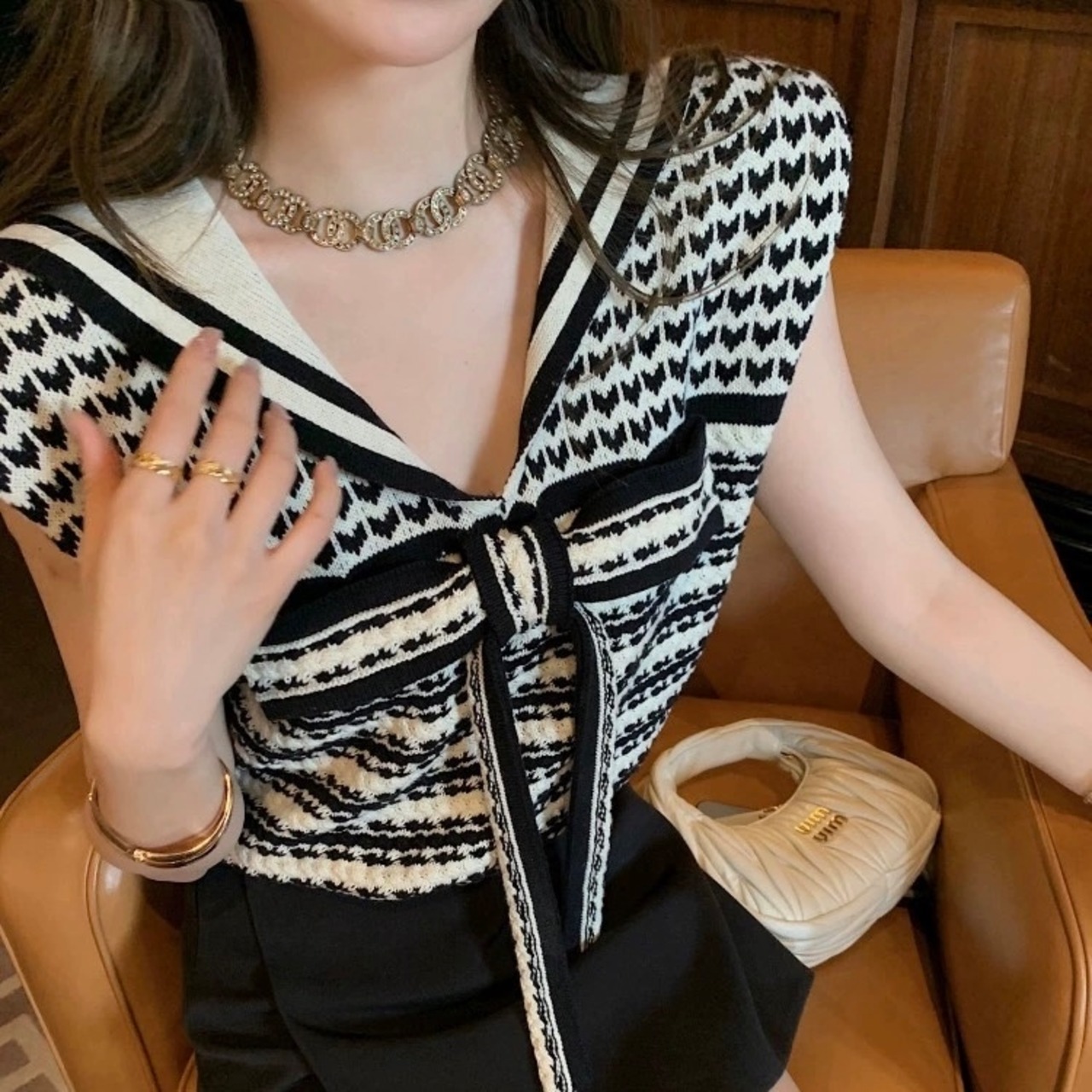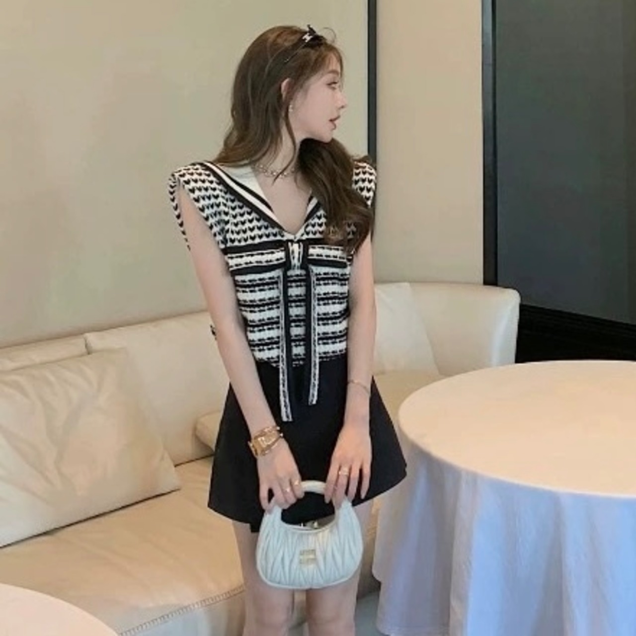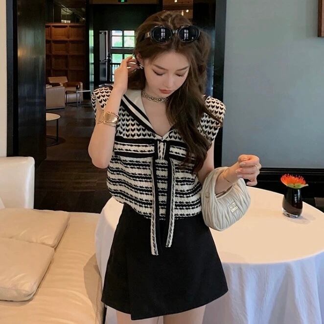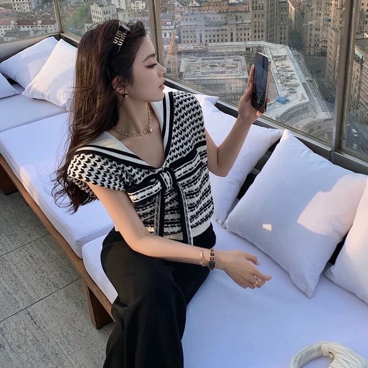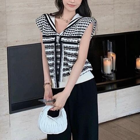 【tops】セーラーリボンサマーニットトップス JR5100