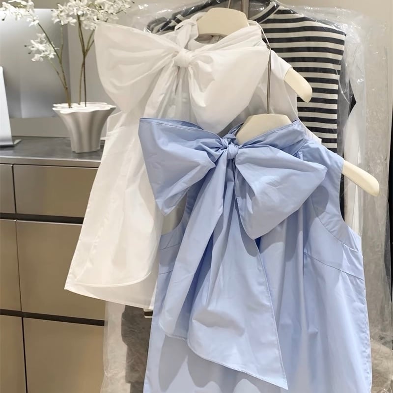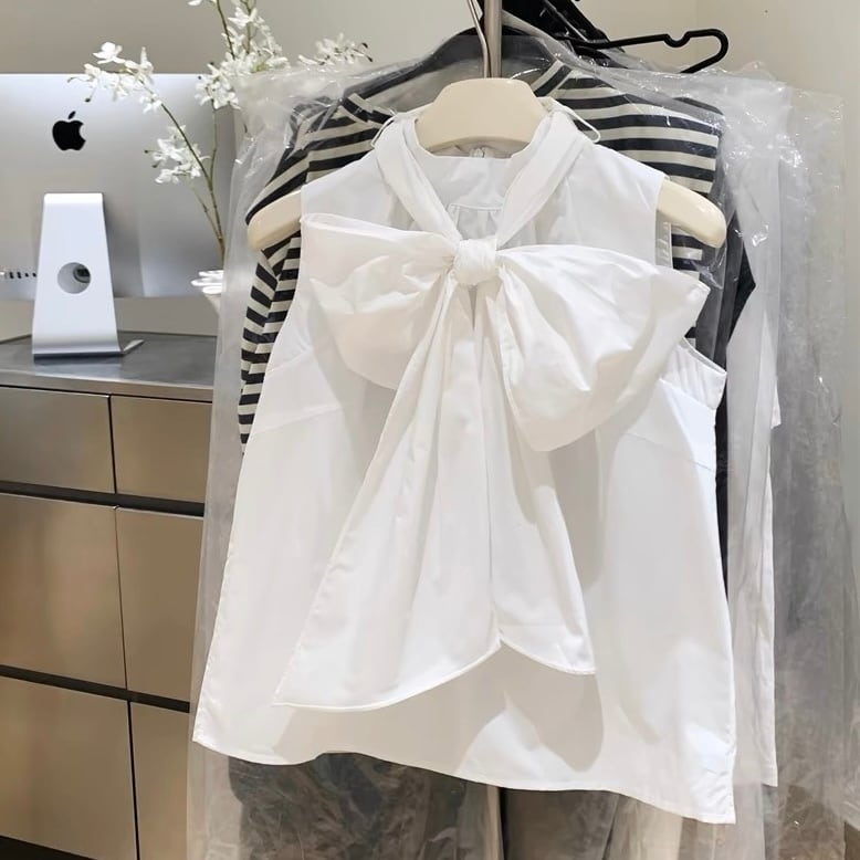 【tops】ビッグリボンノースリーブトップス2色 HX6105