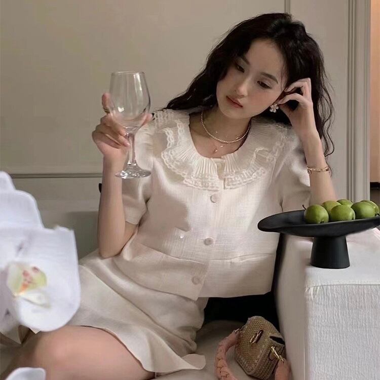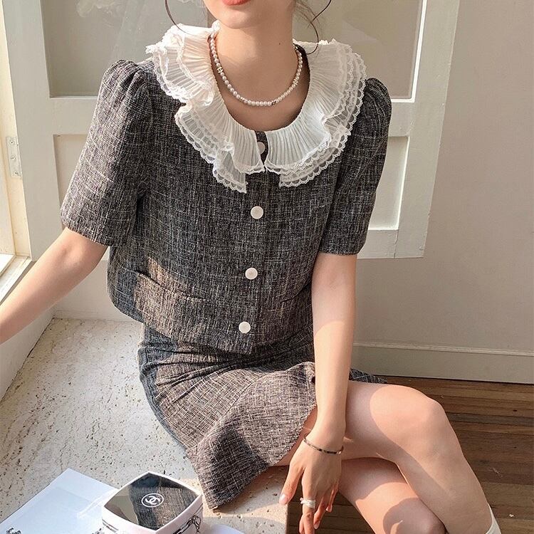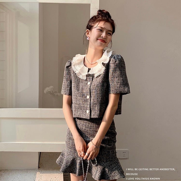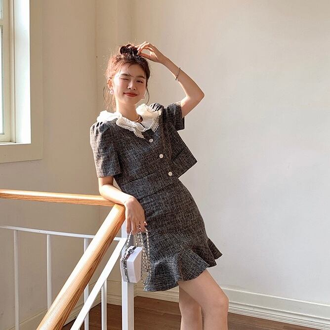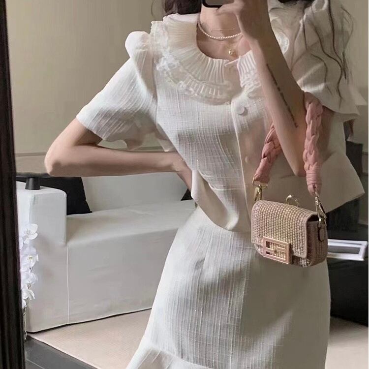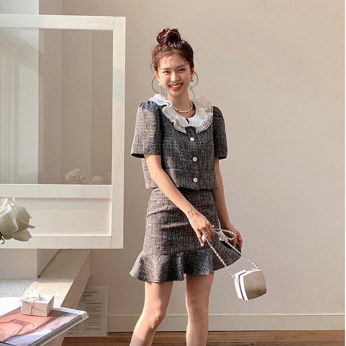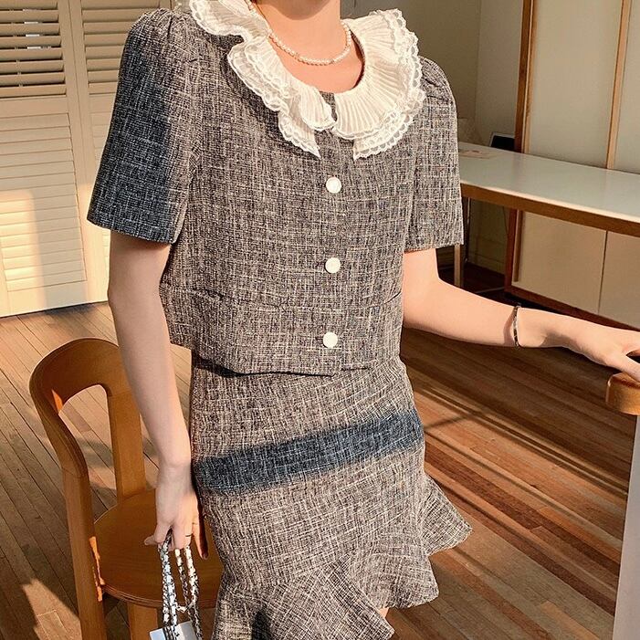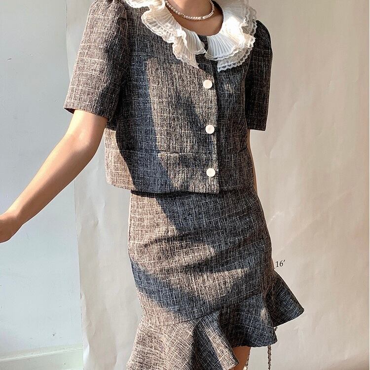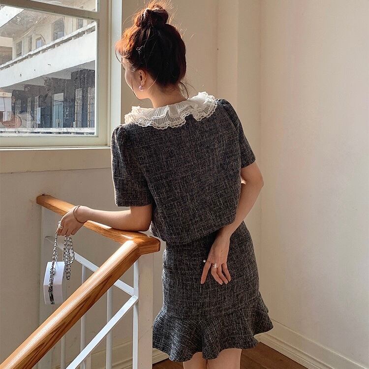 【set】フレンチビッグ襟トップスxマーメイドスカート HX6021