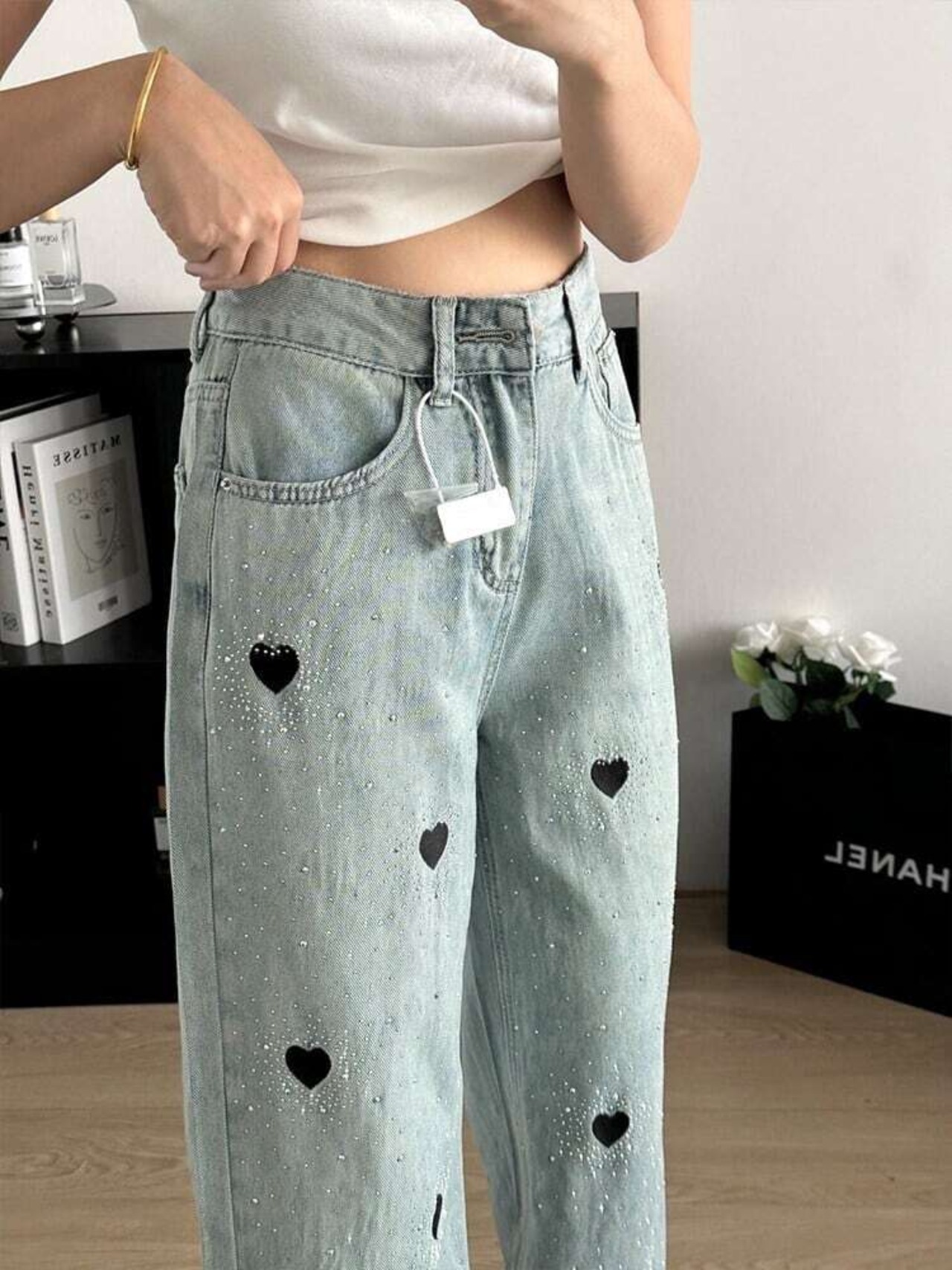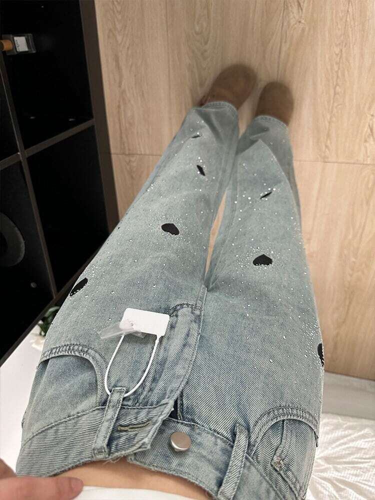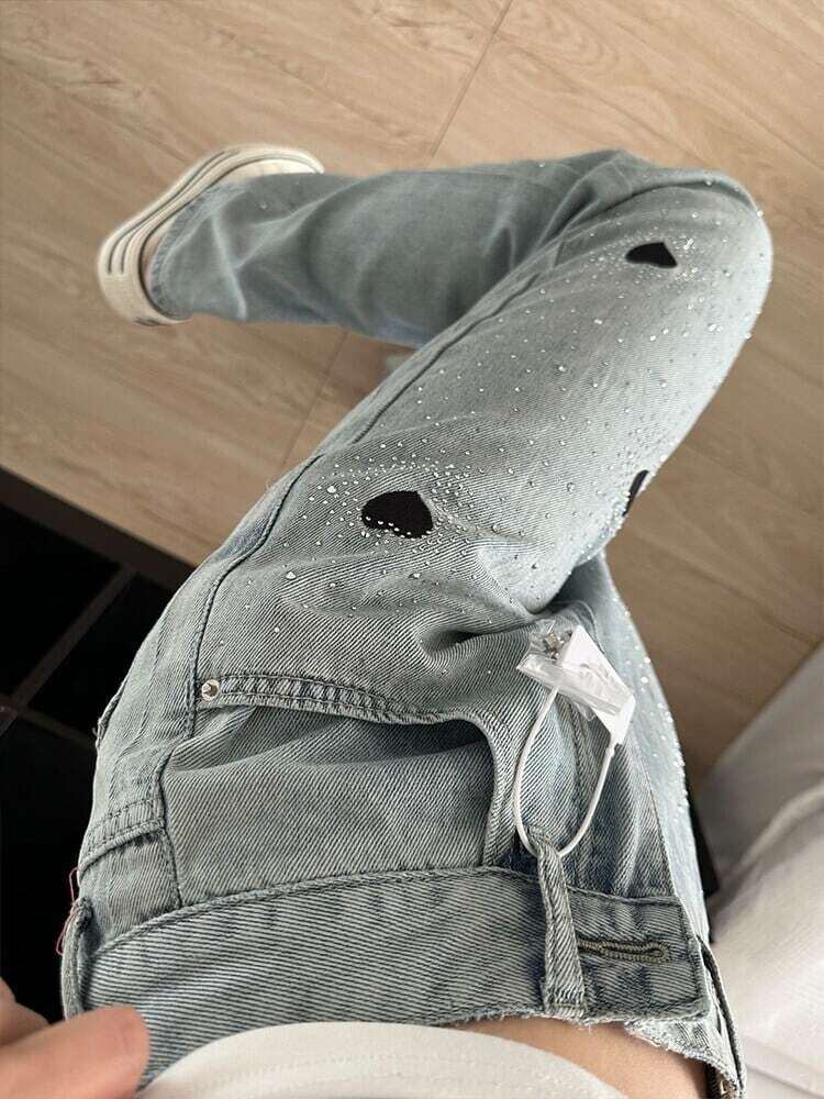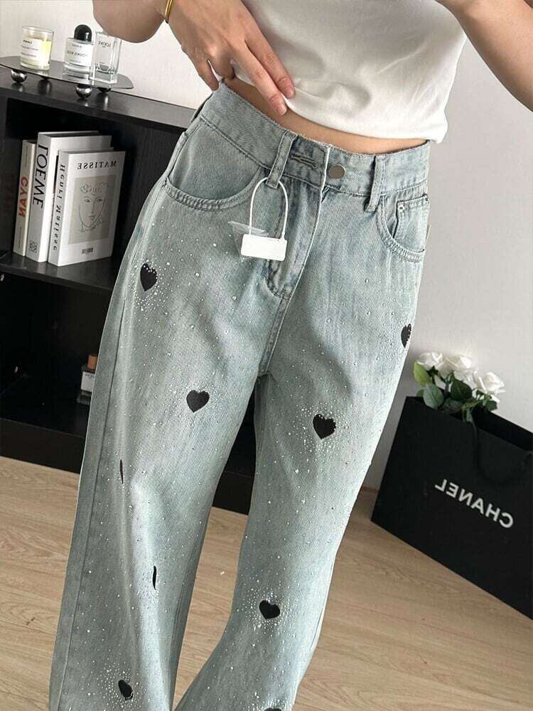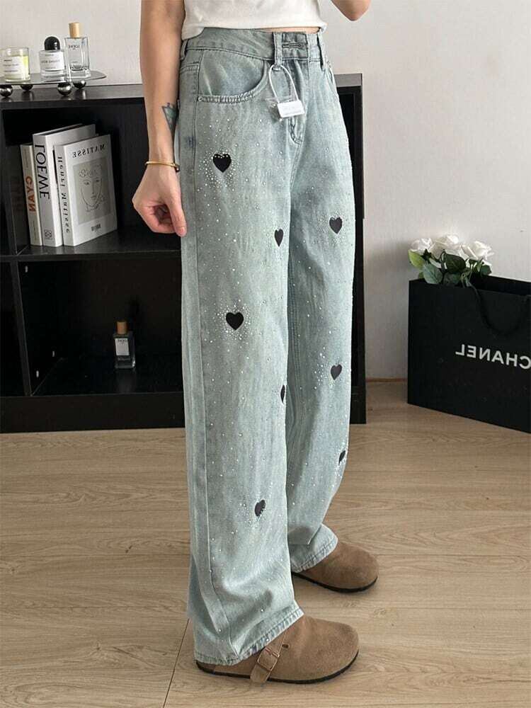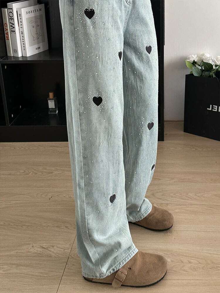 【bottoms】ビジューハート柄デニムパンツ JR5602