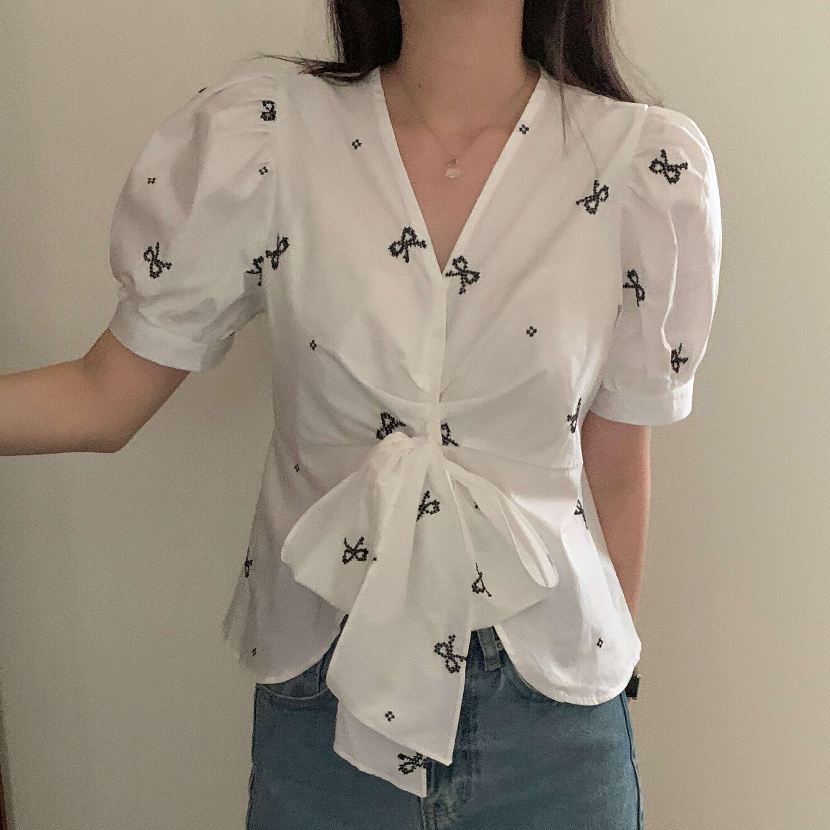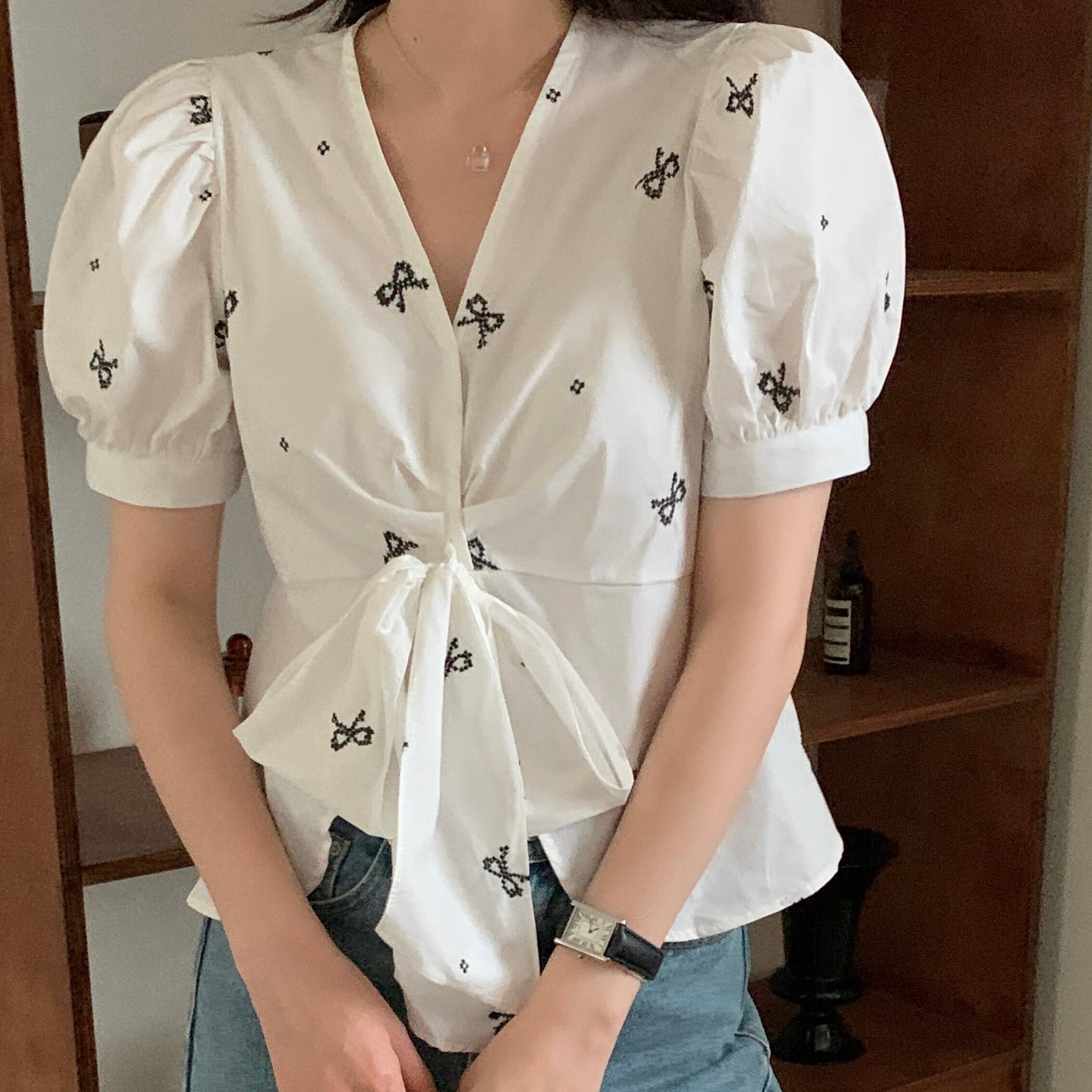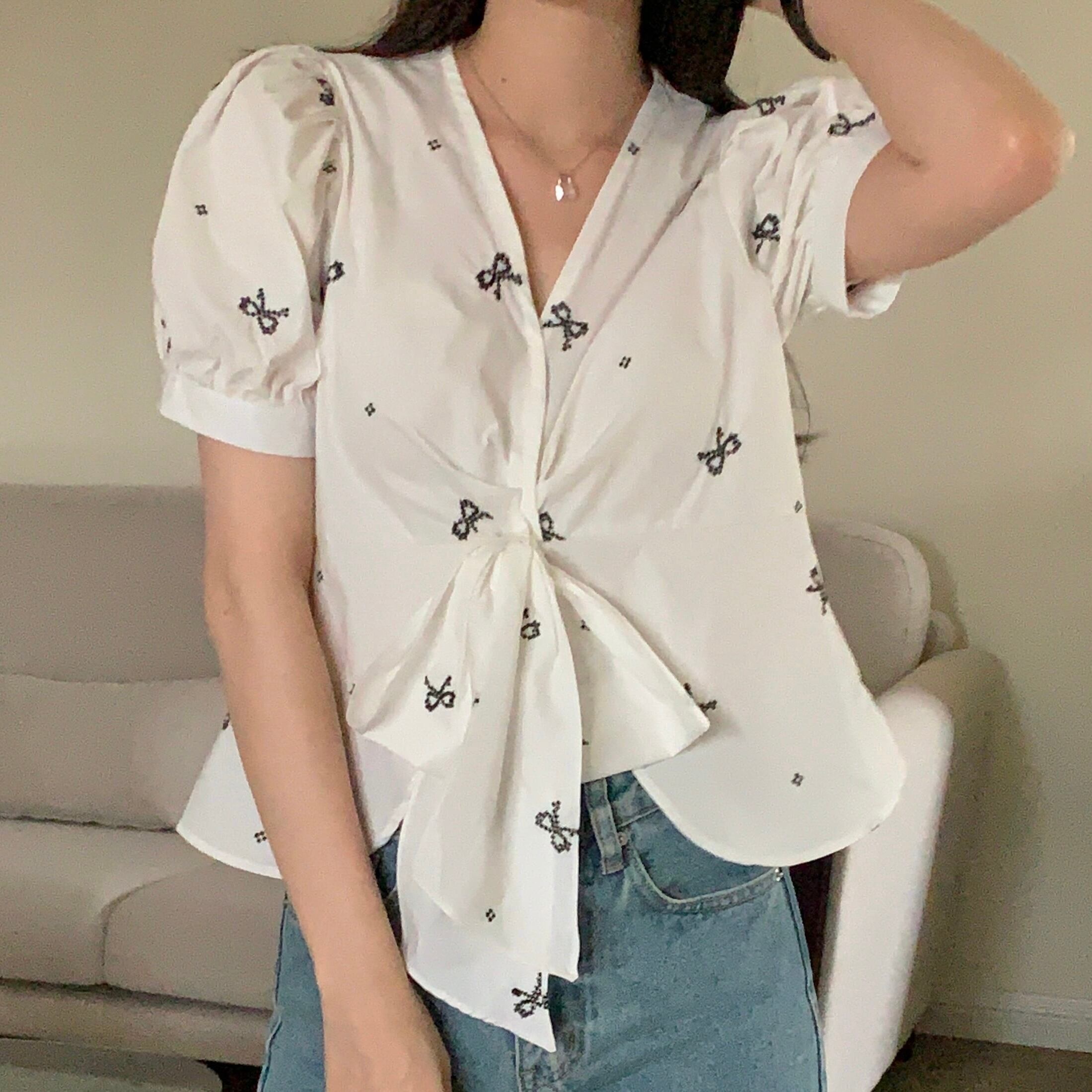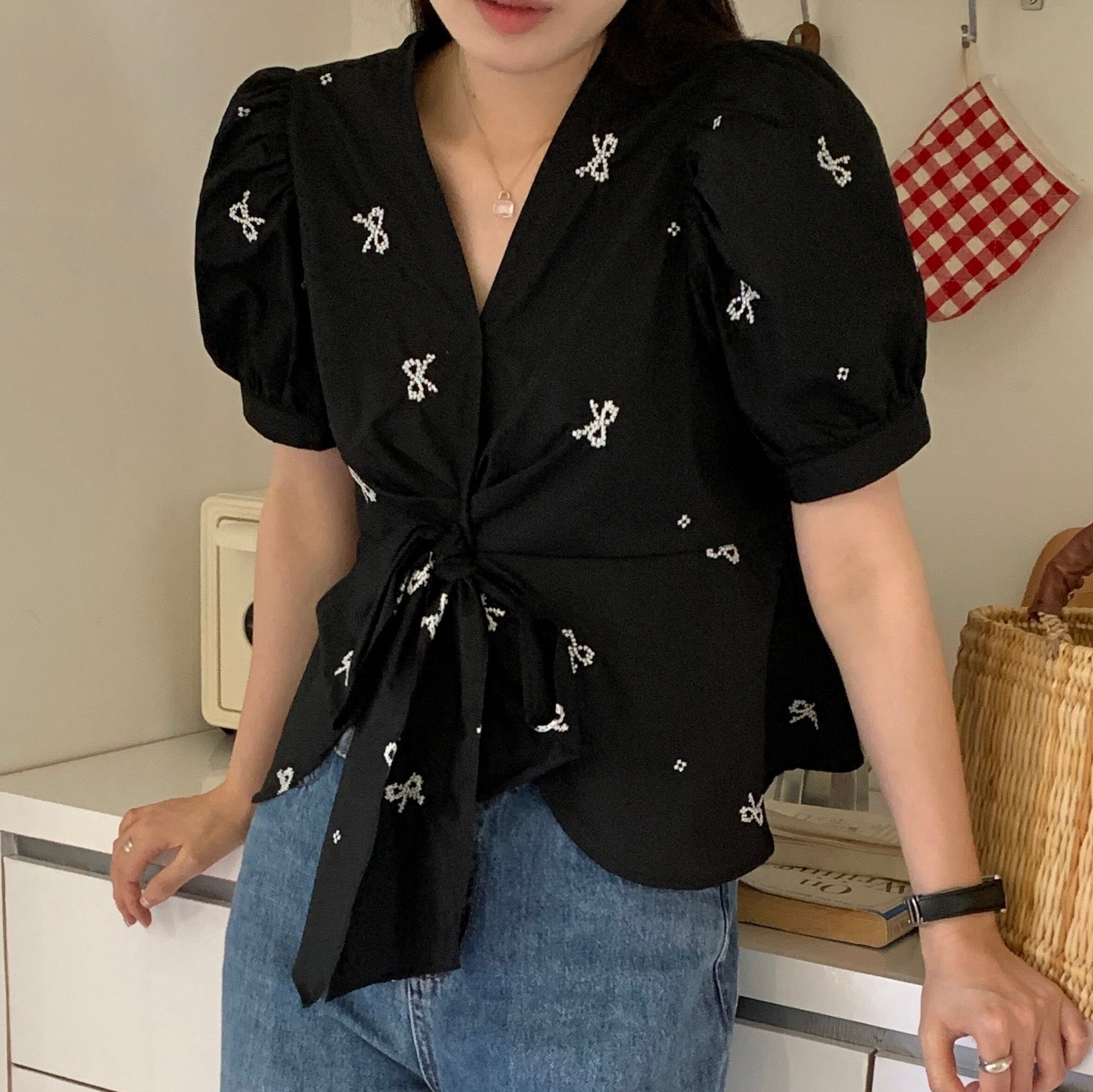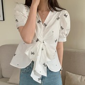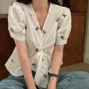 【tops】リボンプリントシャツ JR5804