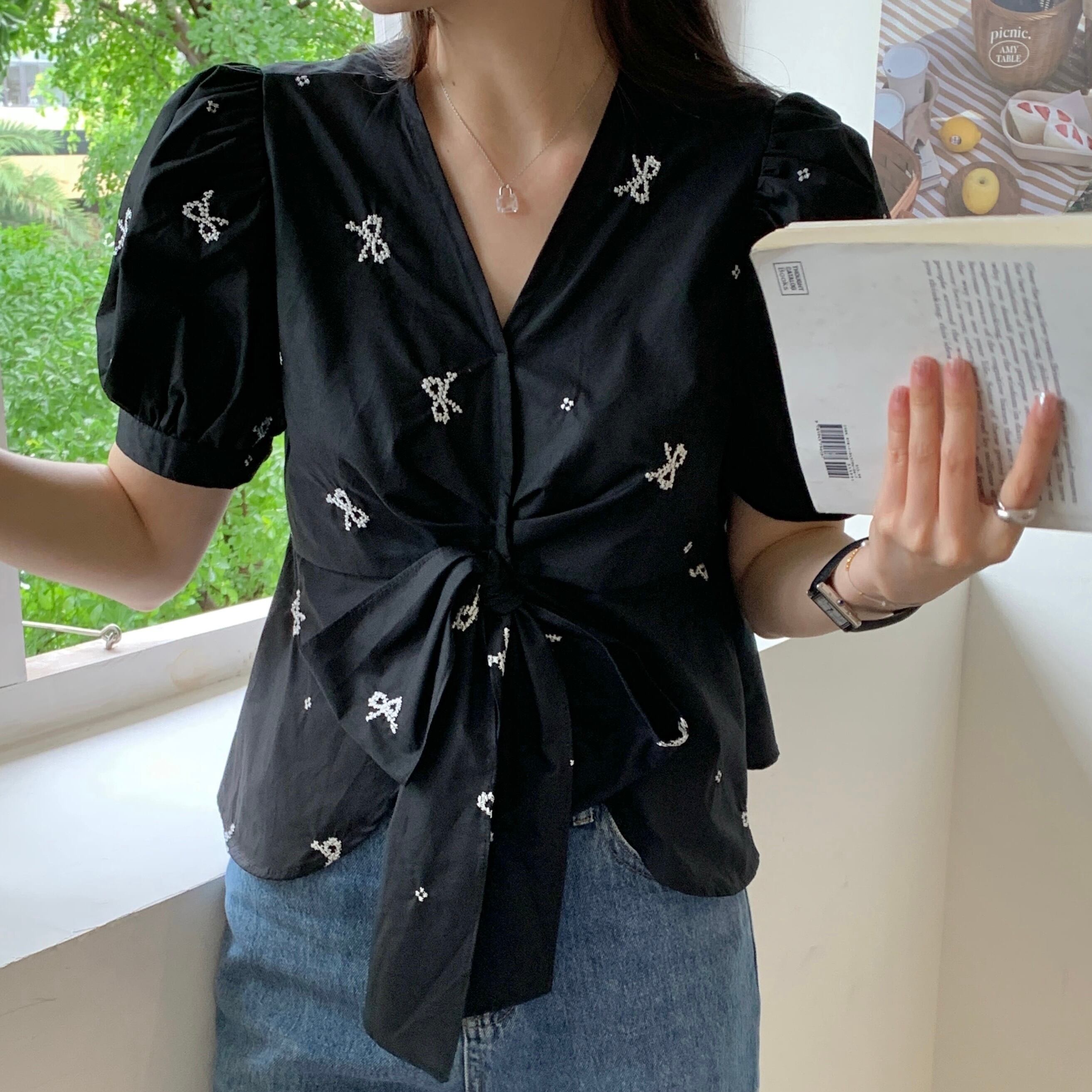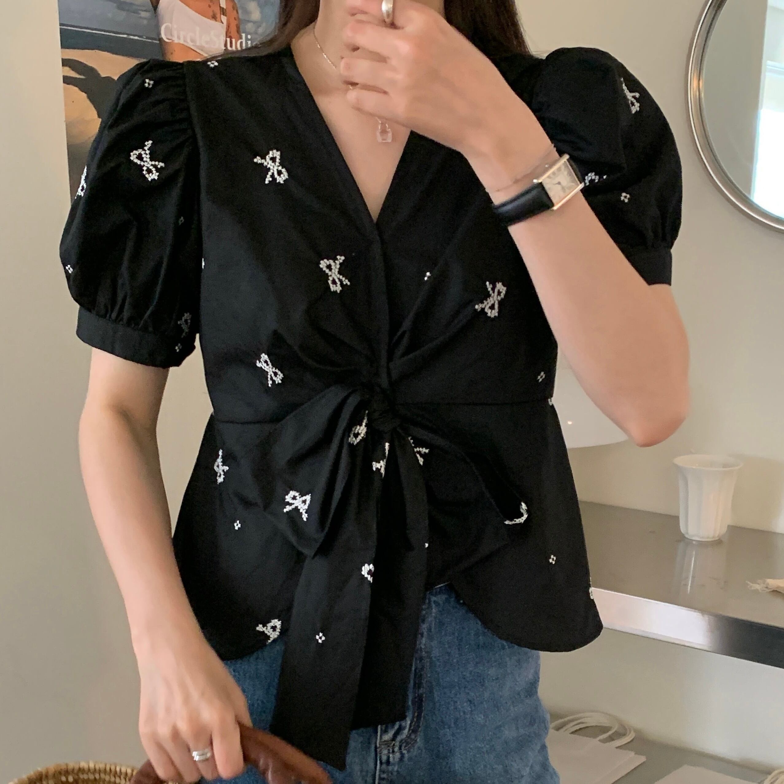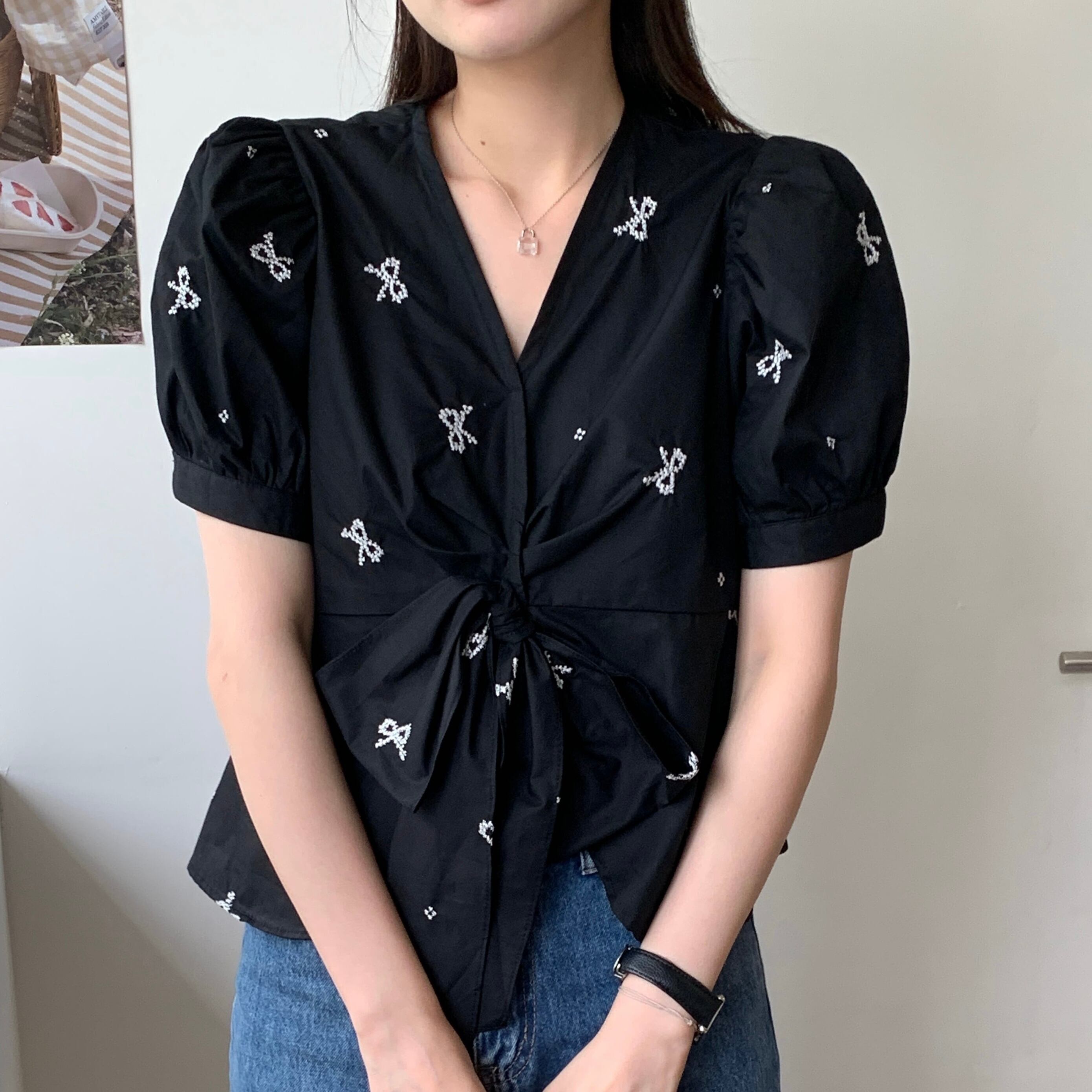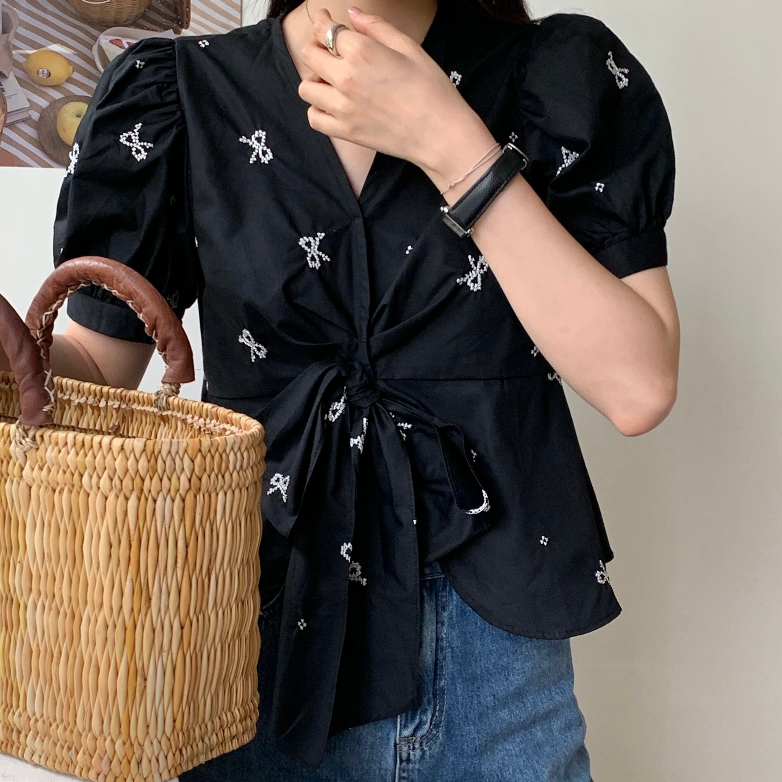 【tops】リボンプリントシャツ JR5804
