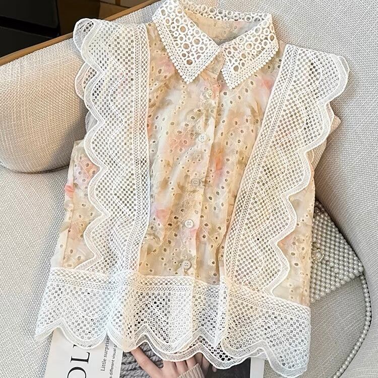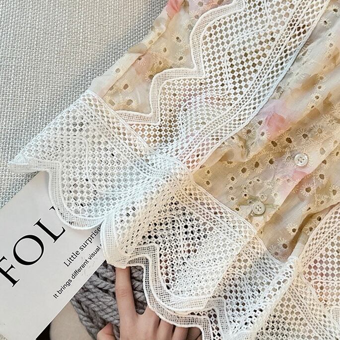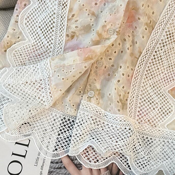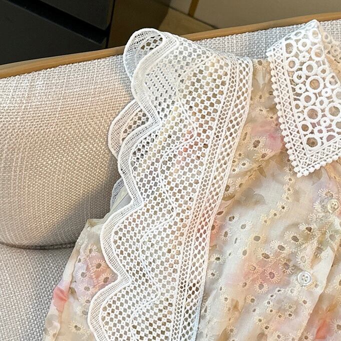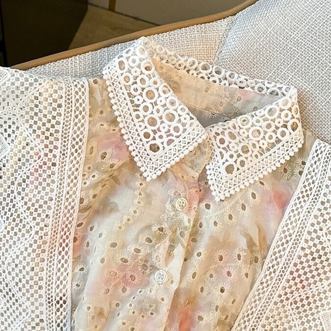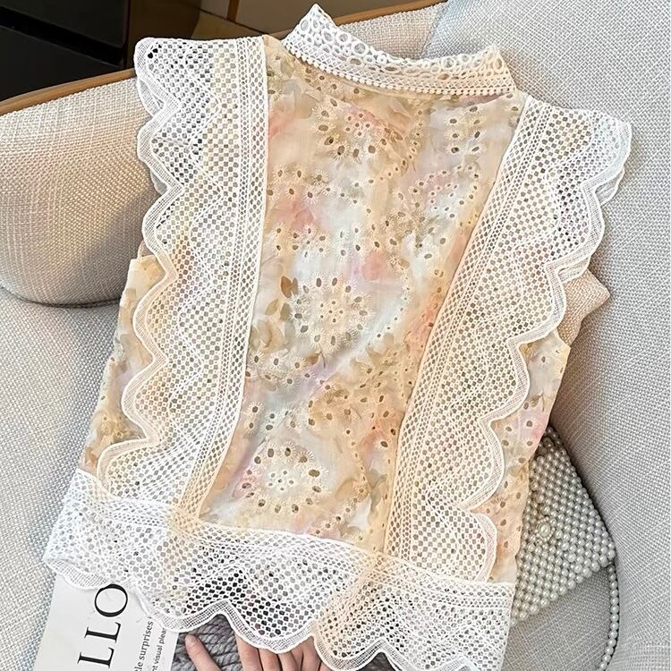 【tops】刺繍レースノースリーブトップス2色 DE6127