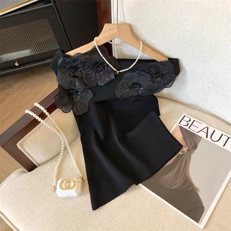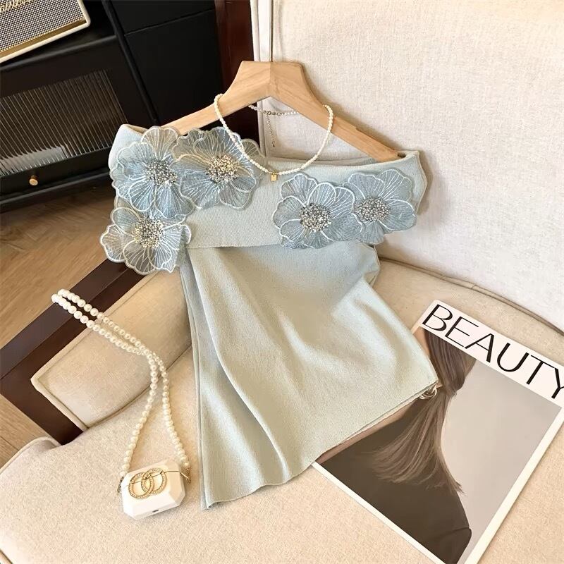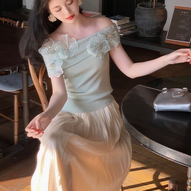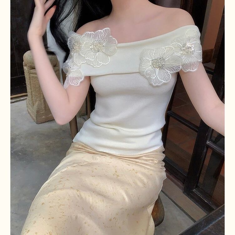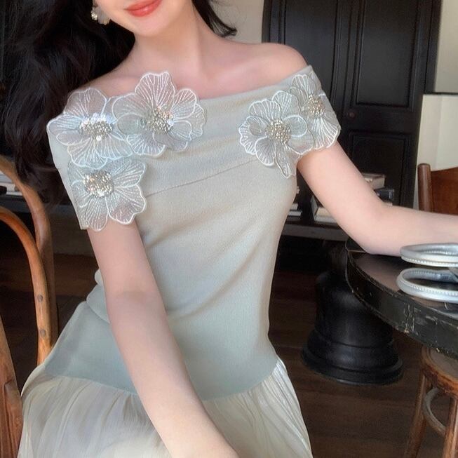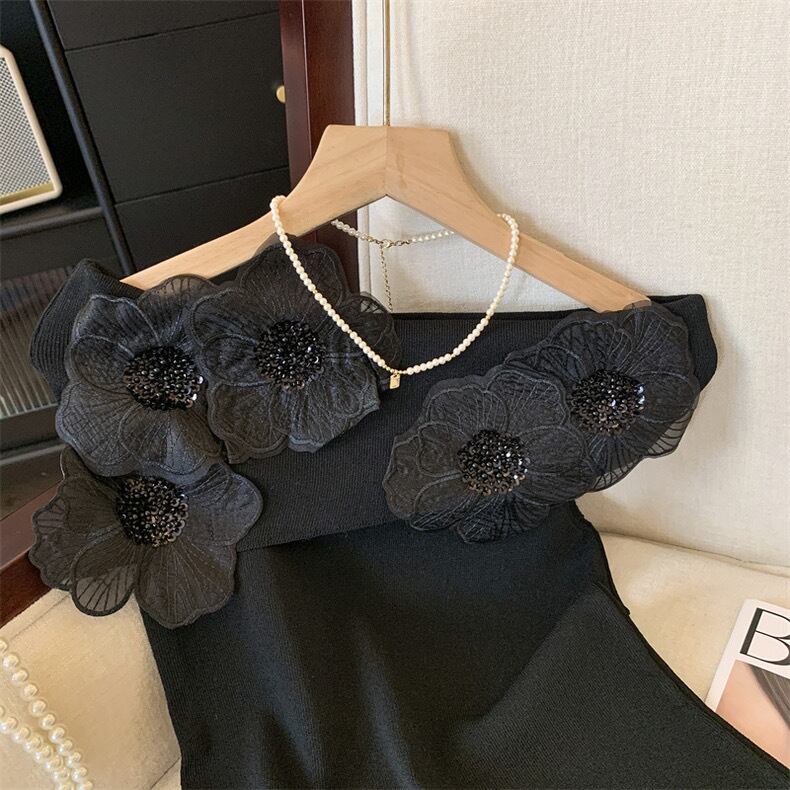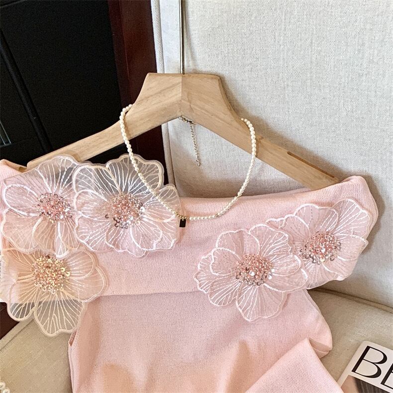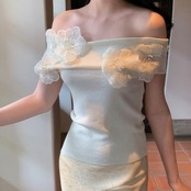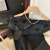 【tops】オフショルダーフラワーニットトップス4色 DE6128
