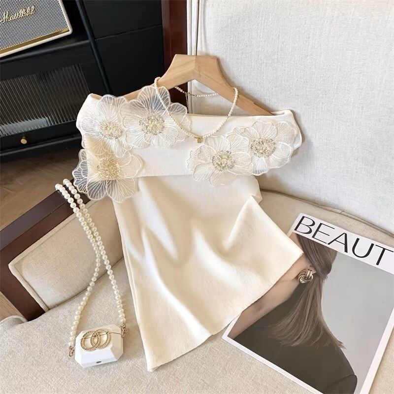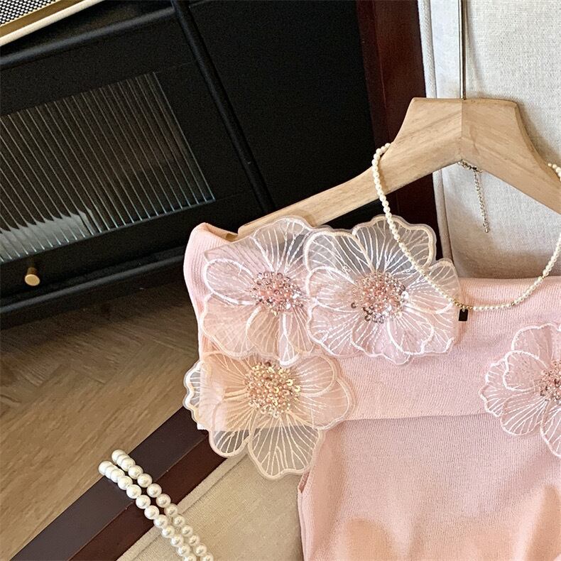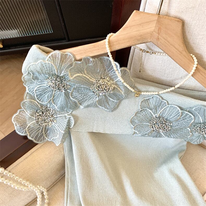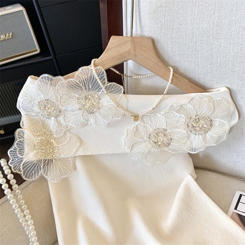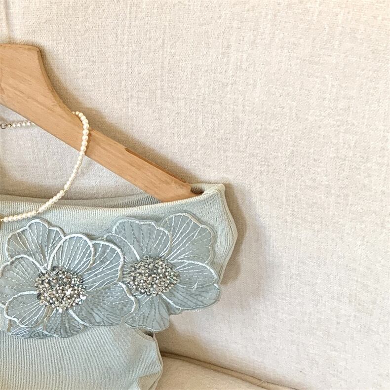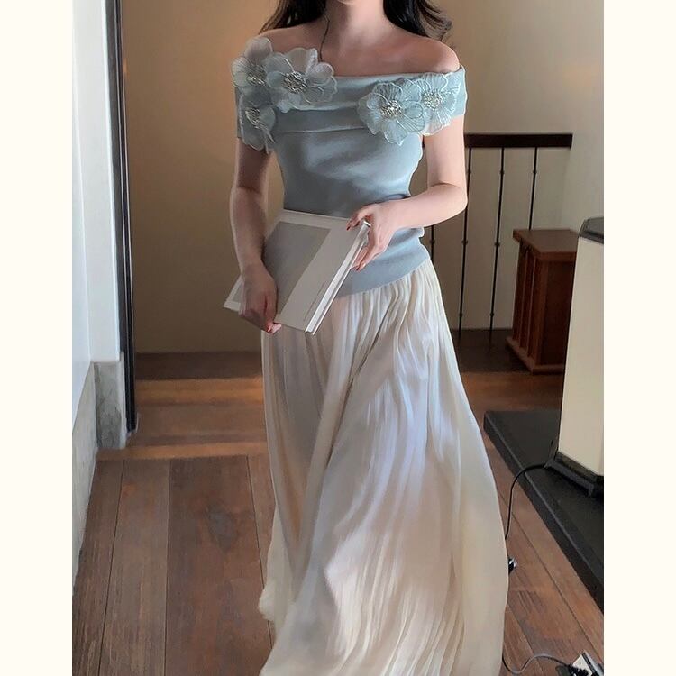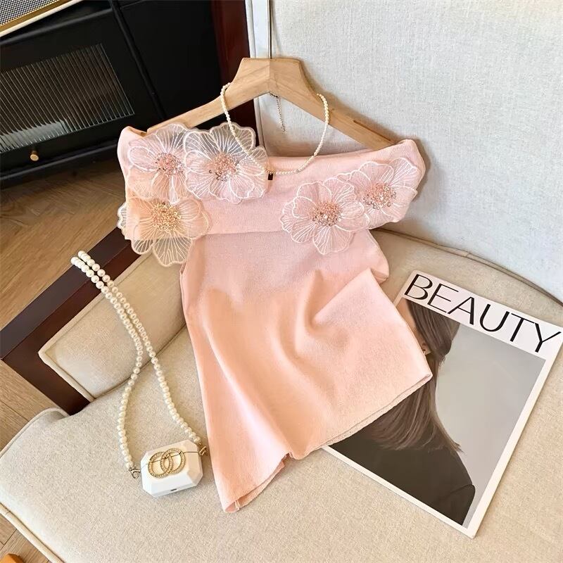 【tops】オフショルダーフラワーニットトップス4色 DE6128