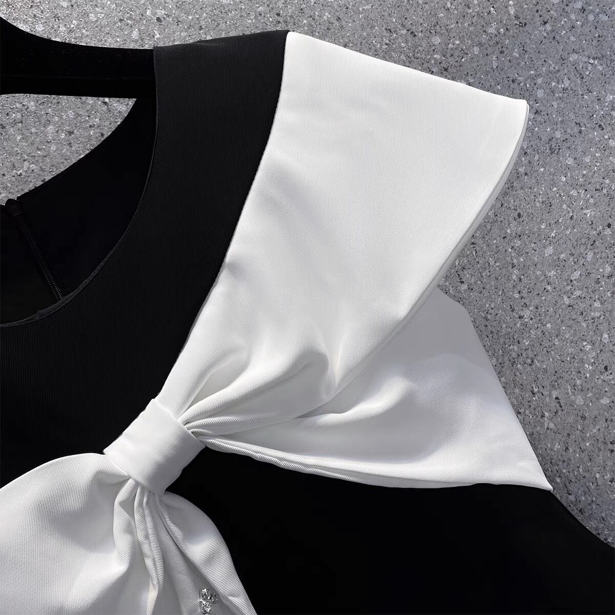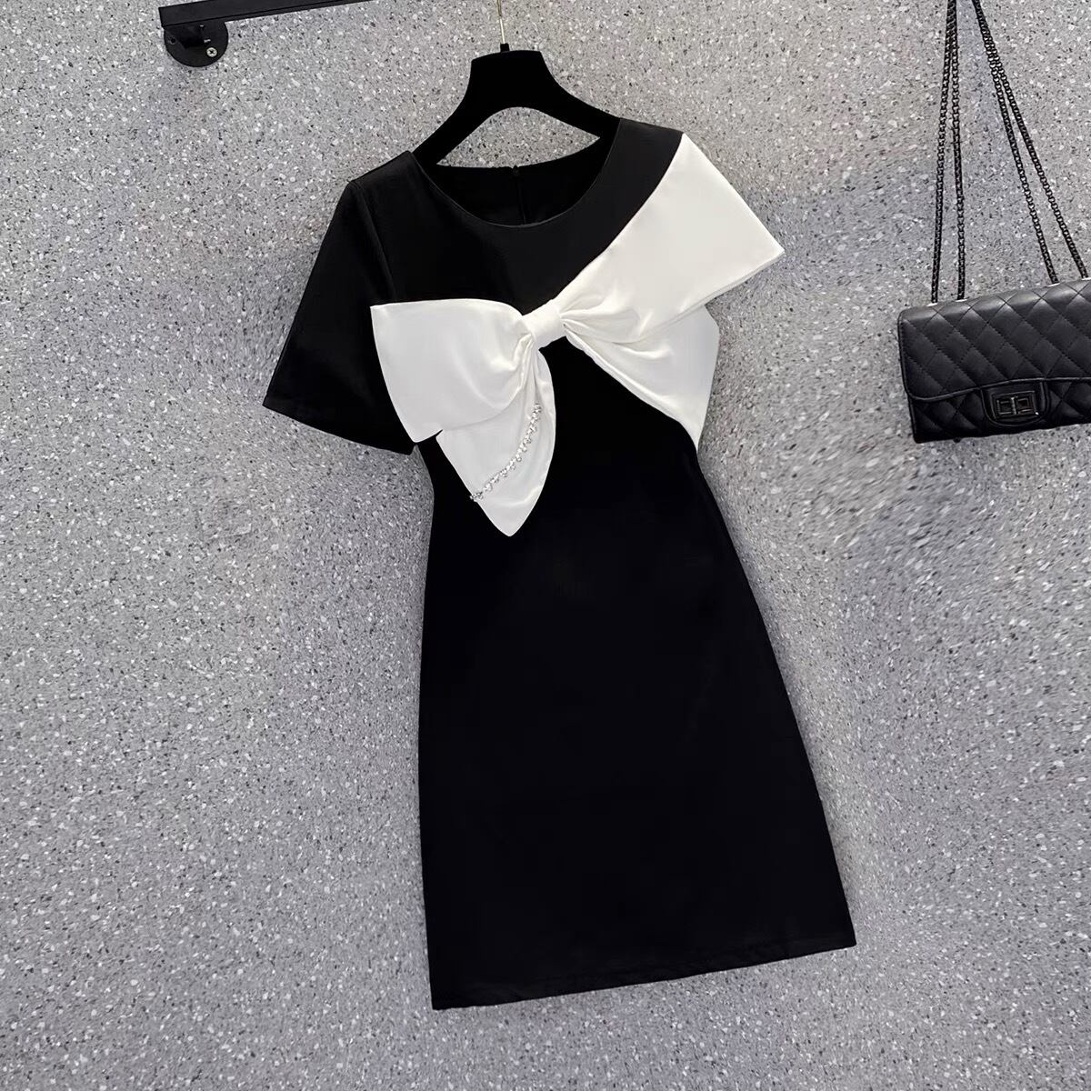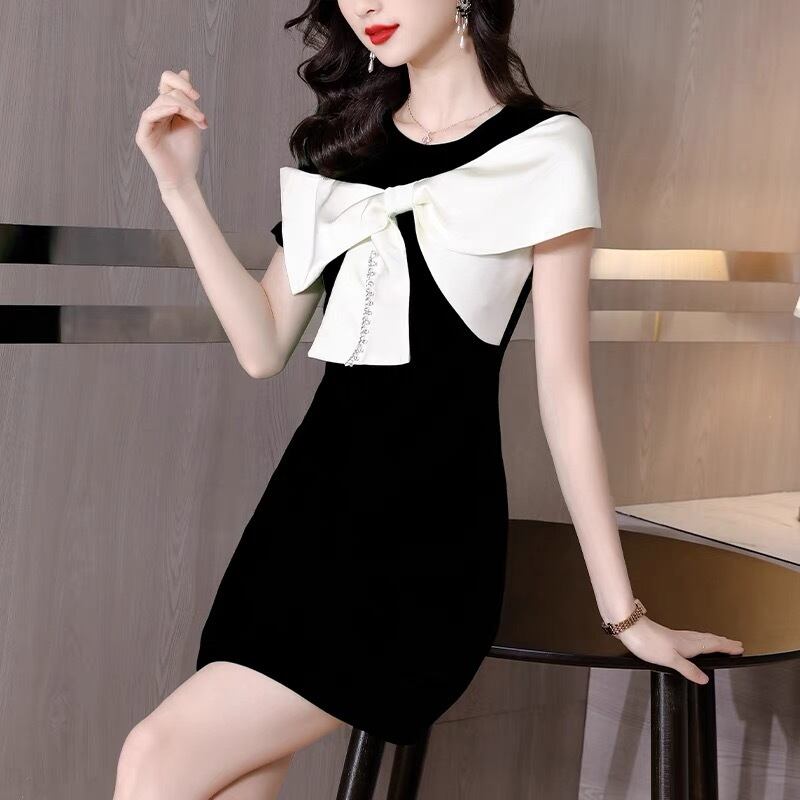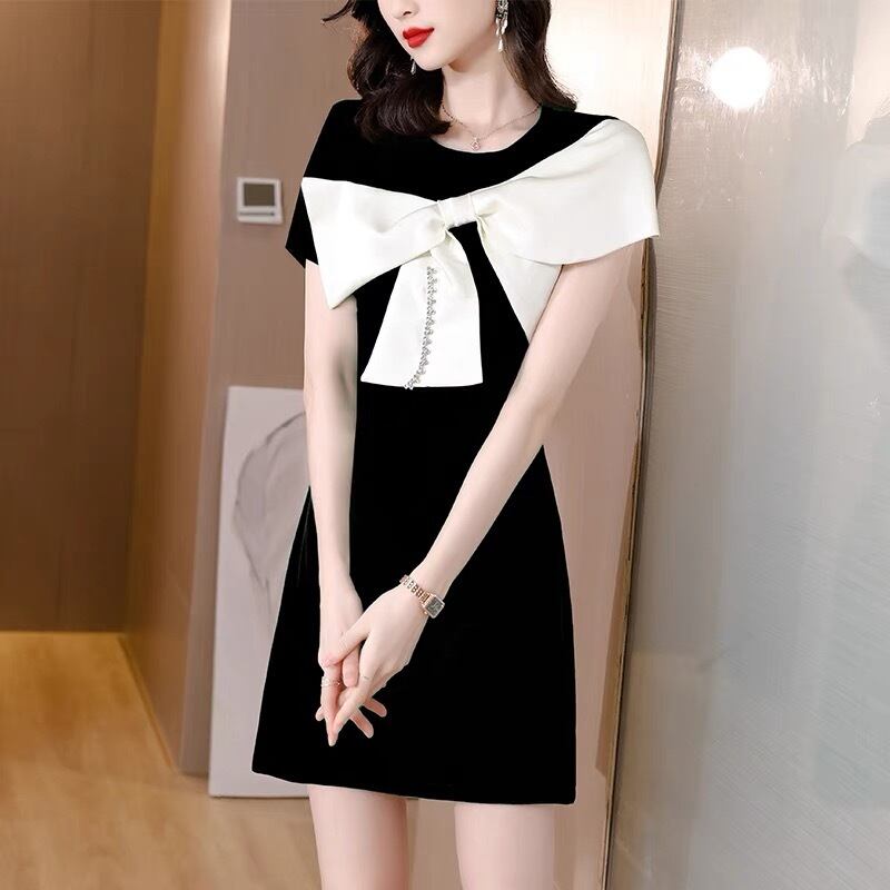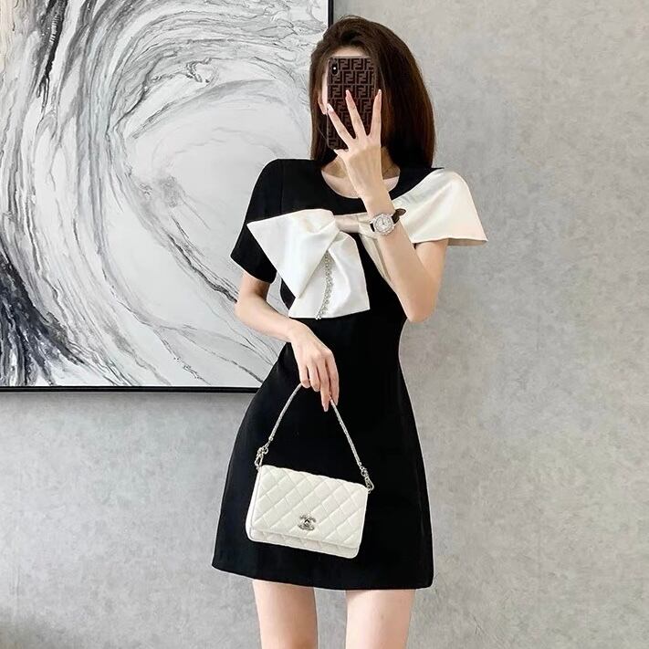 【dress】S~2XLリボン配色ミニワンピース JF6147