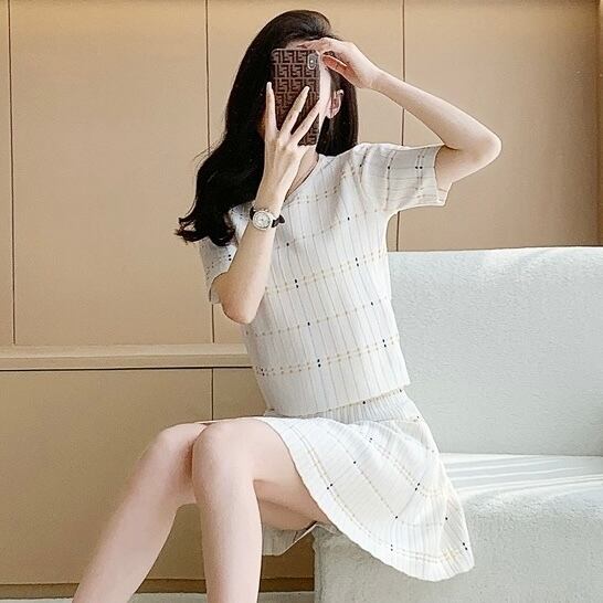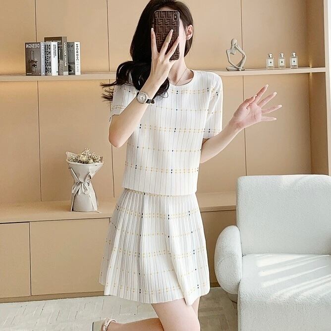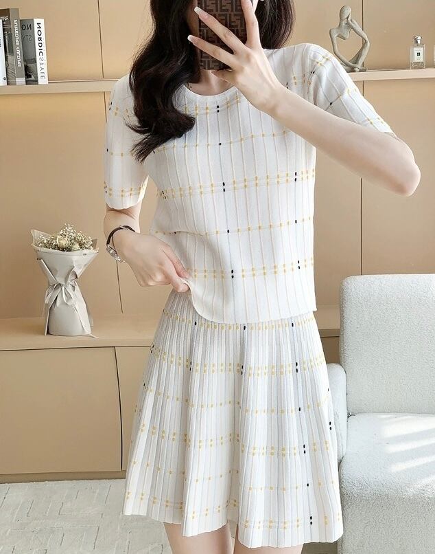 【set】ステッチデザイントップス× ステッチデザインミニスカート JR6210