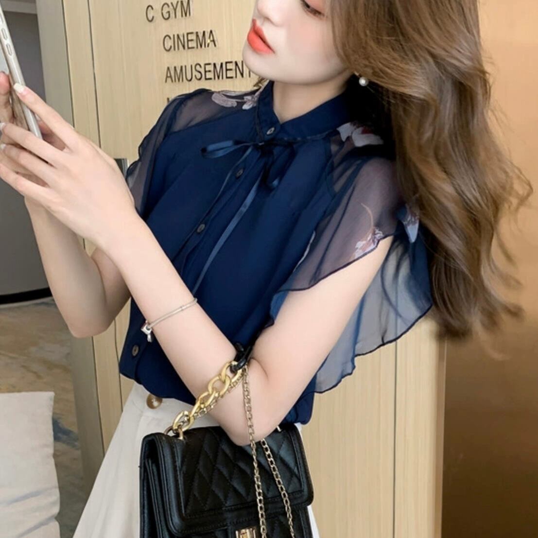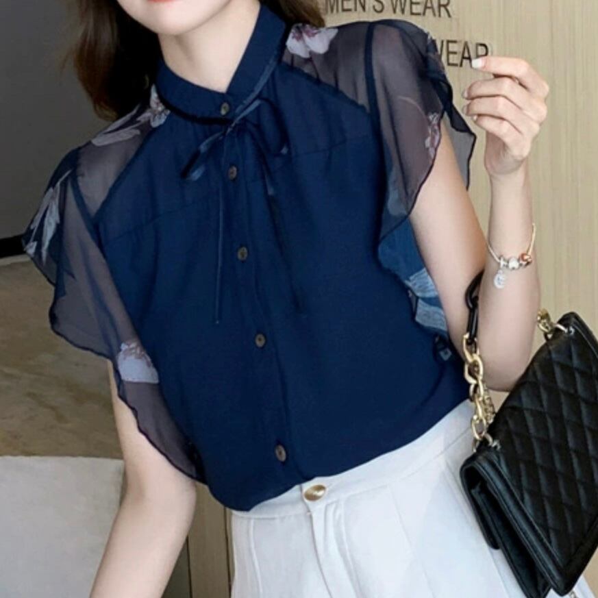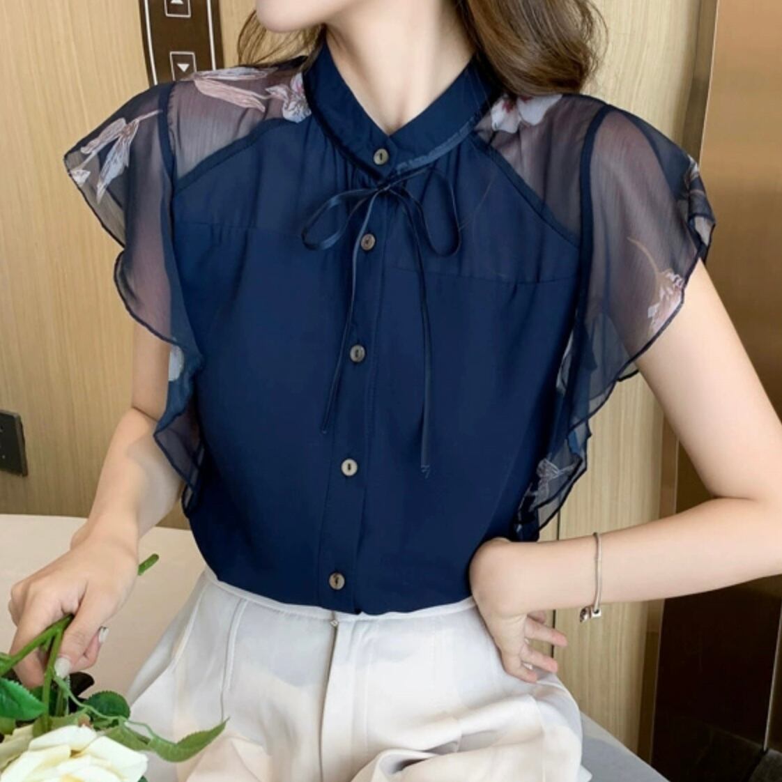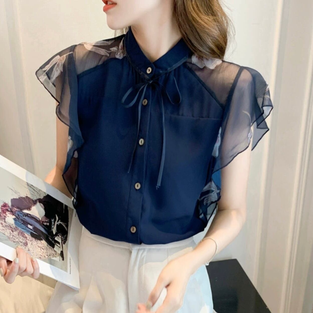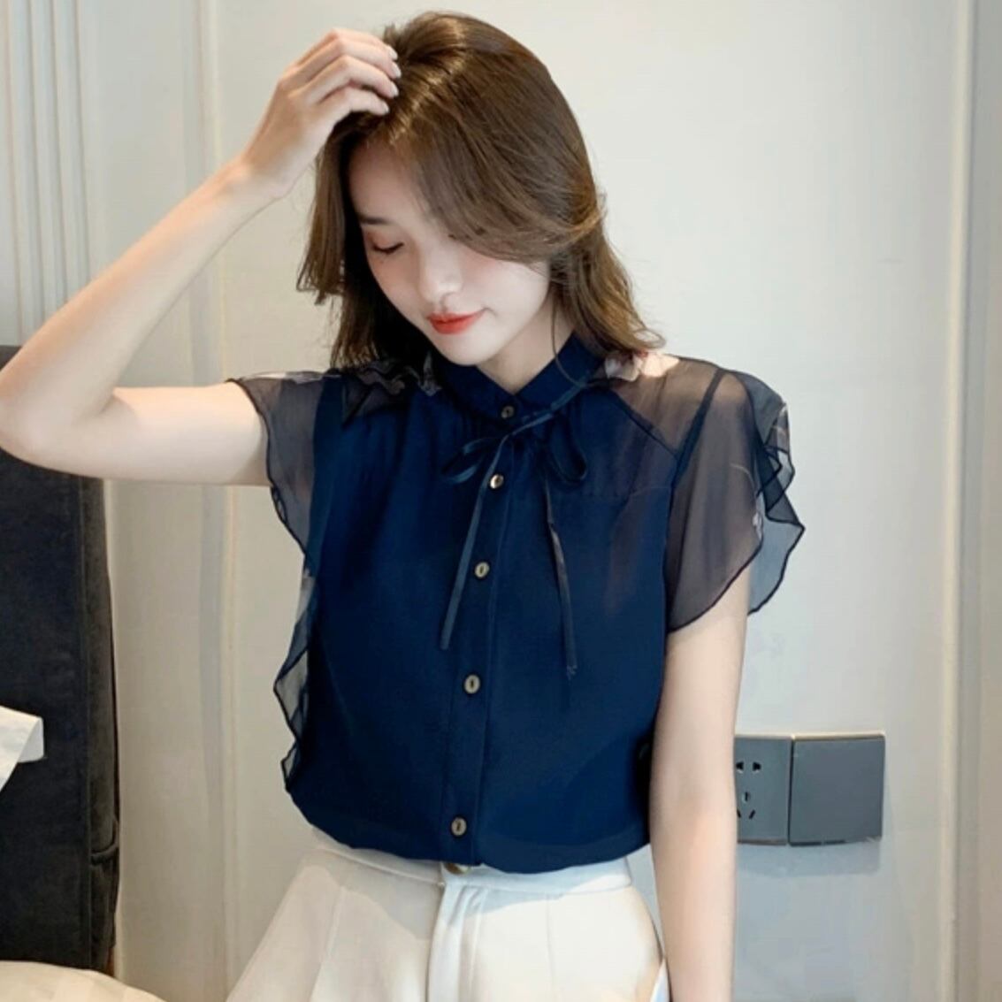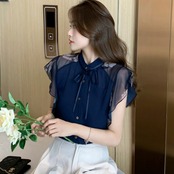 【tops】シースルー袖リボンタイブラウス JR6212