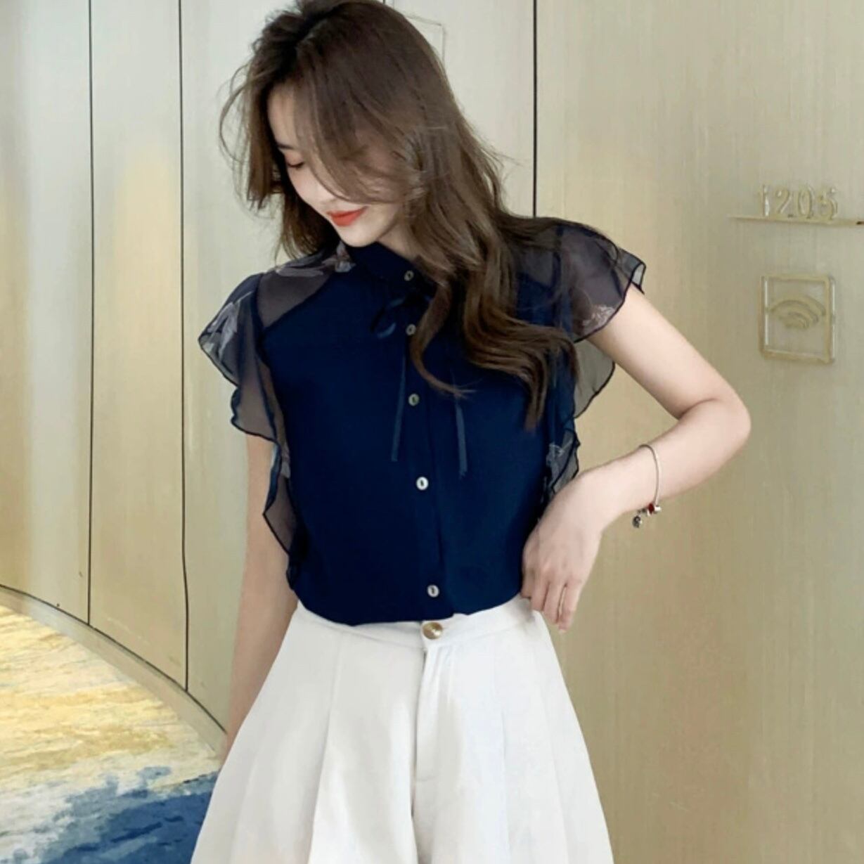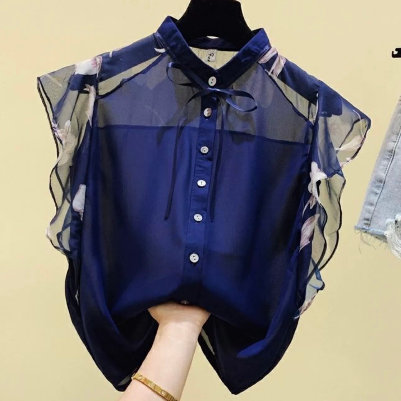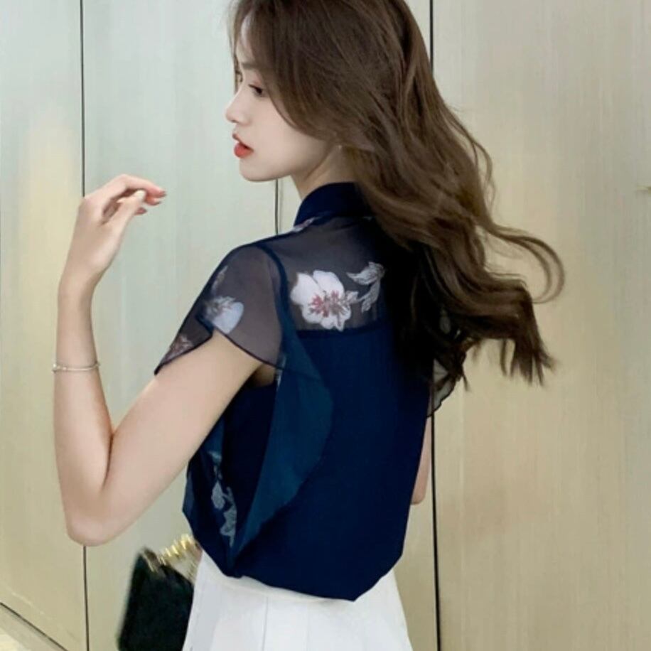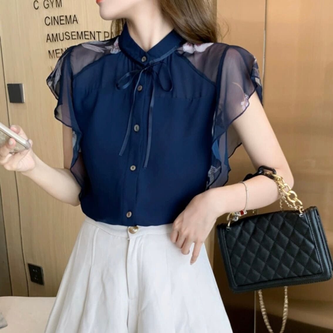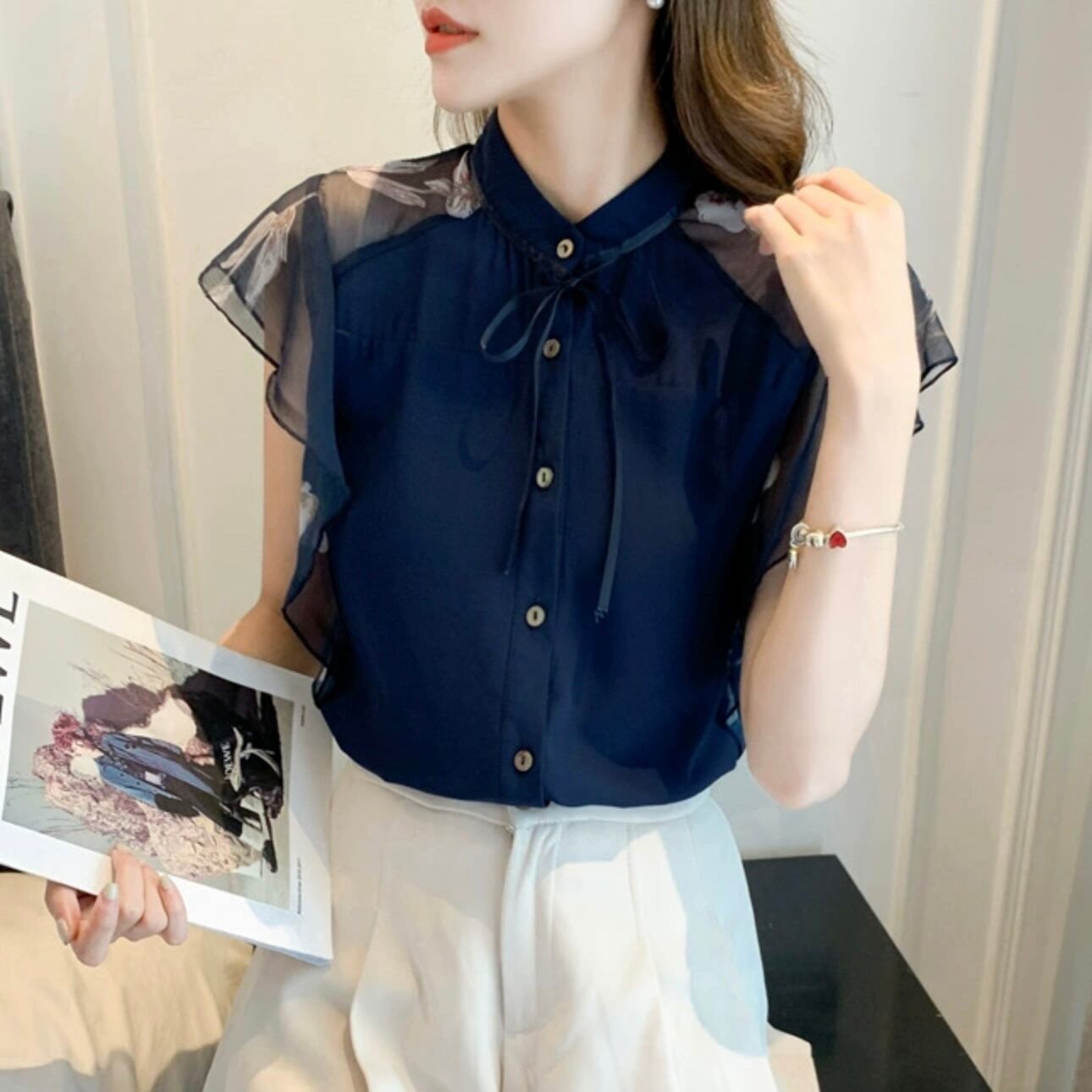【tops】シースルー袖リボンタイブラウス JR6212