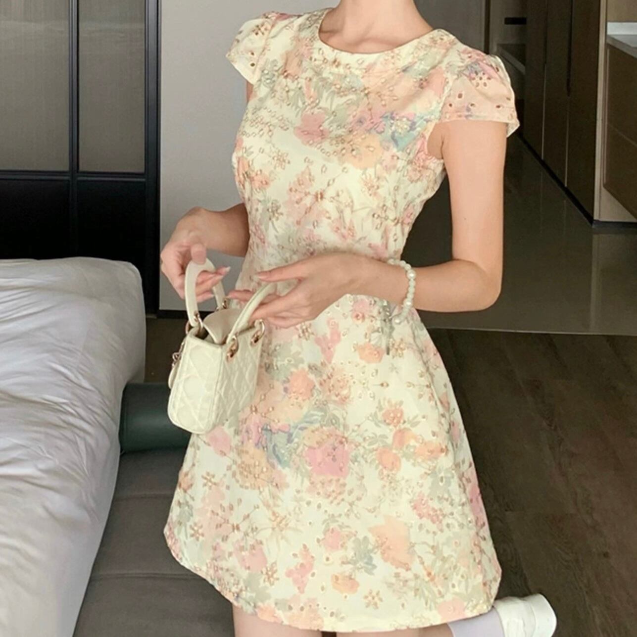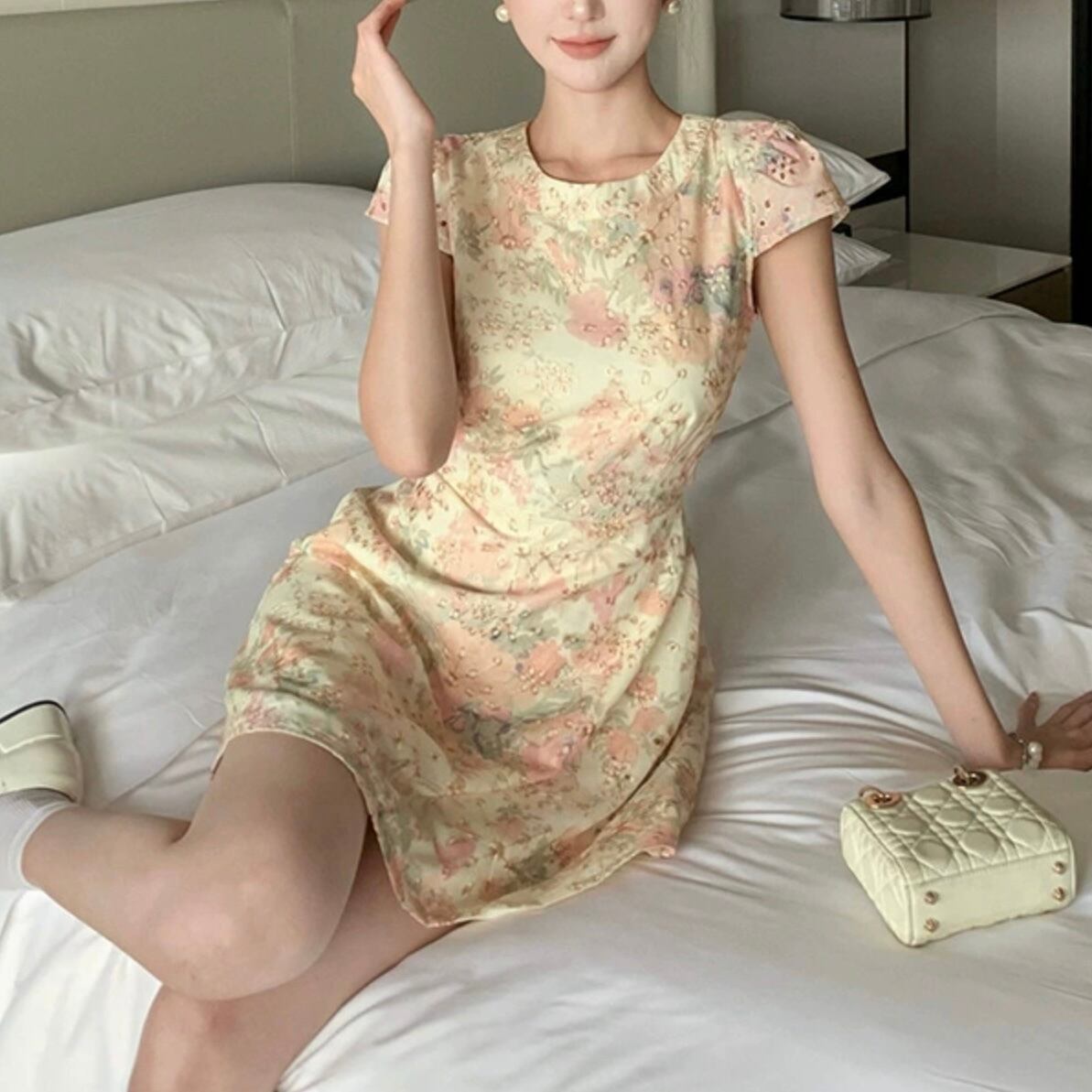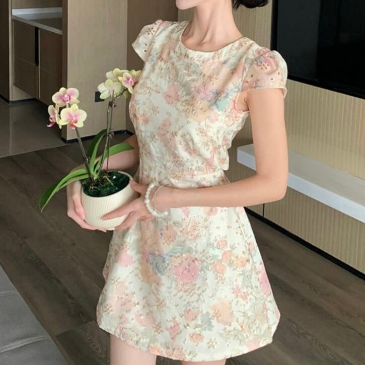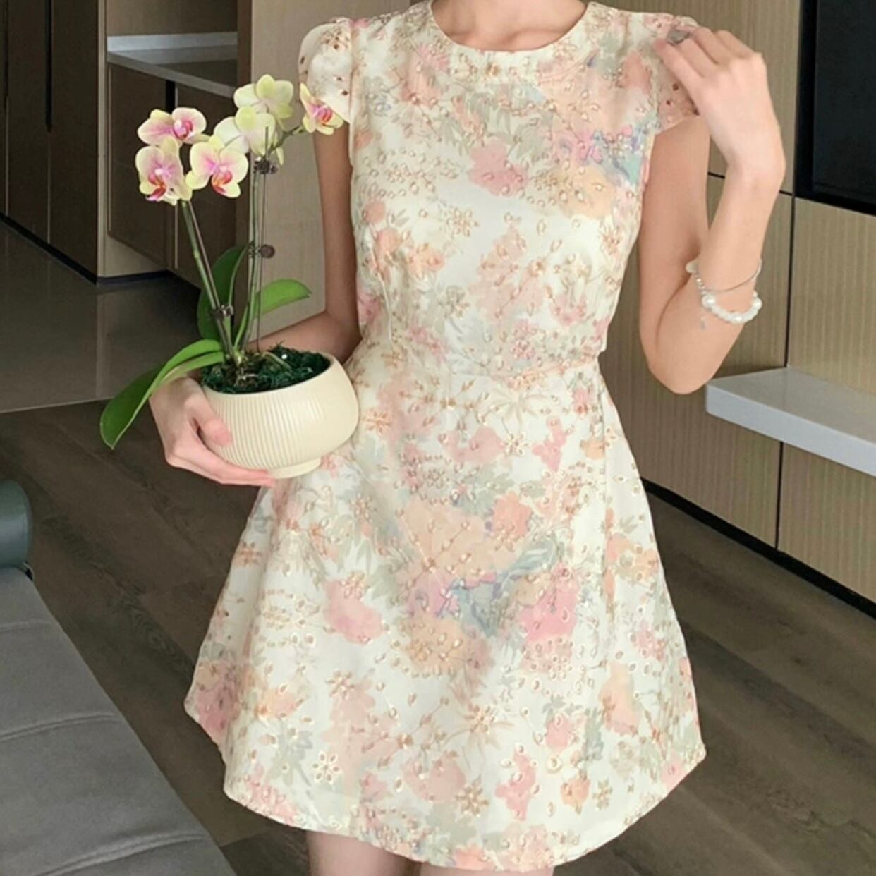 【dress】花柄ラウンドネックAライン ワンピース JR6250