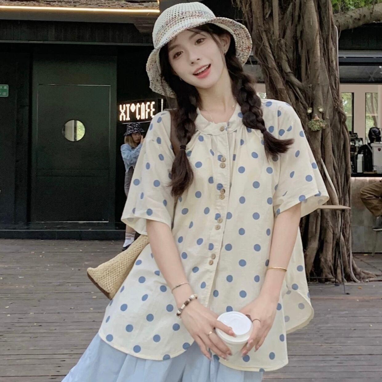 【tops】水玉半袖シャツ JR6253