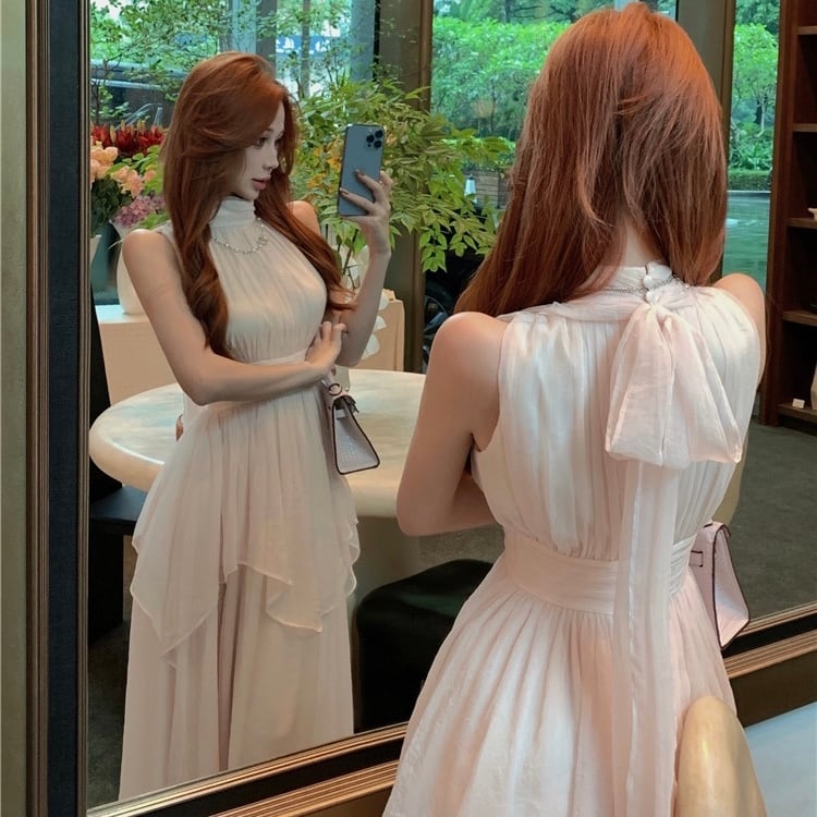 【dress】着痩せリボンノースリーブワンピース JF6190