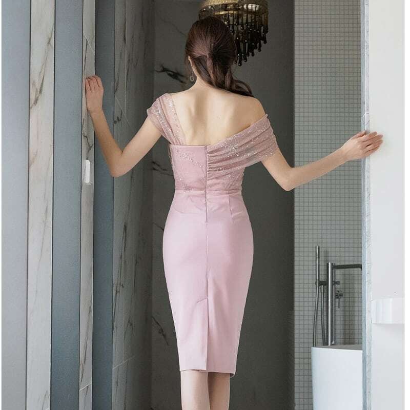 【dress】オフショルダーラメ入りシースルーワンピース JR6274