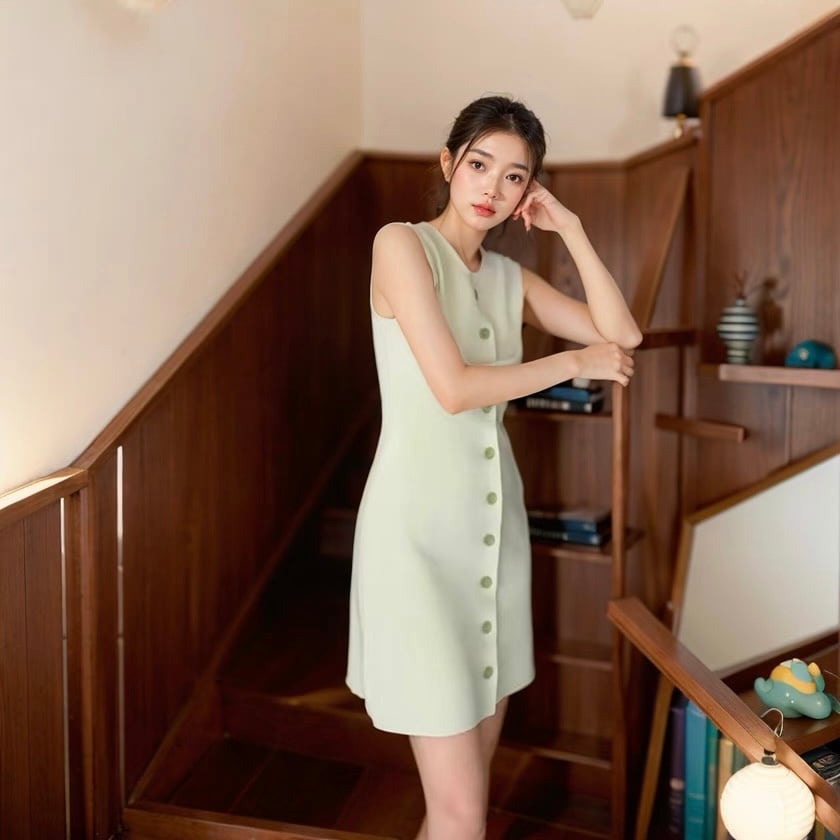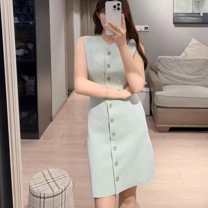 【dress】ボタンノースリーブニットミニワンピース SY6220
