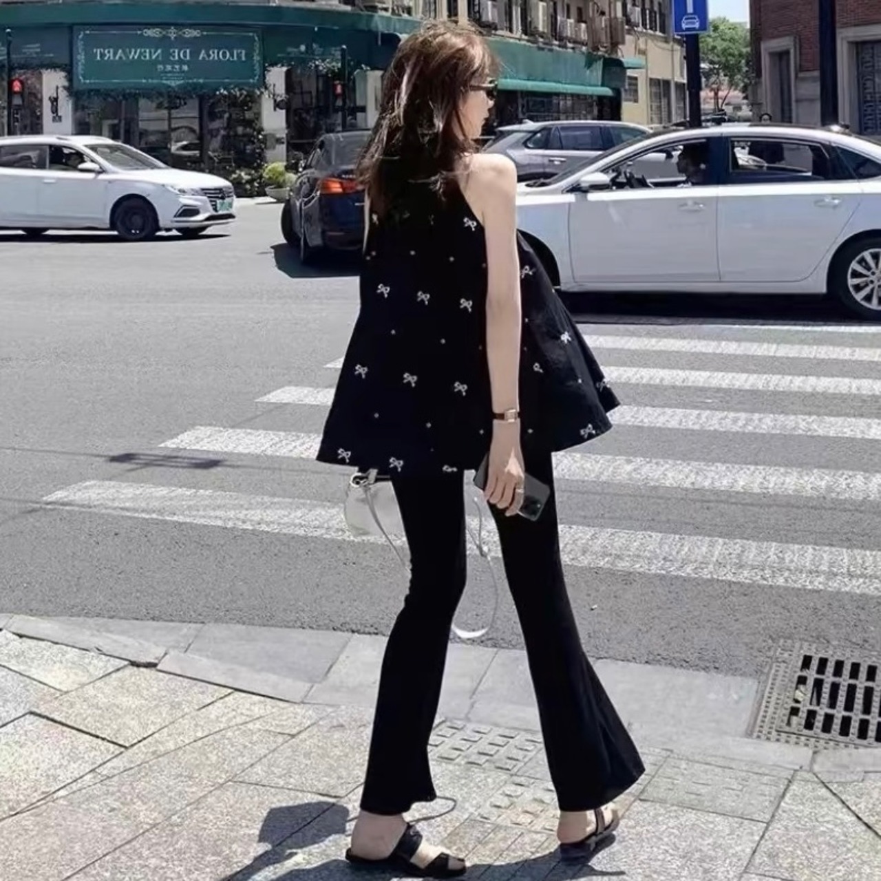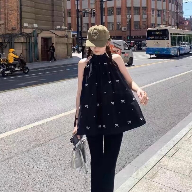 【tops】刺繍リボンホルターネックトップス SY6221