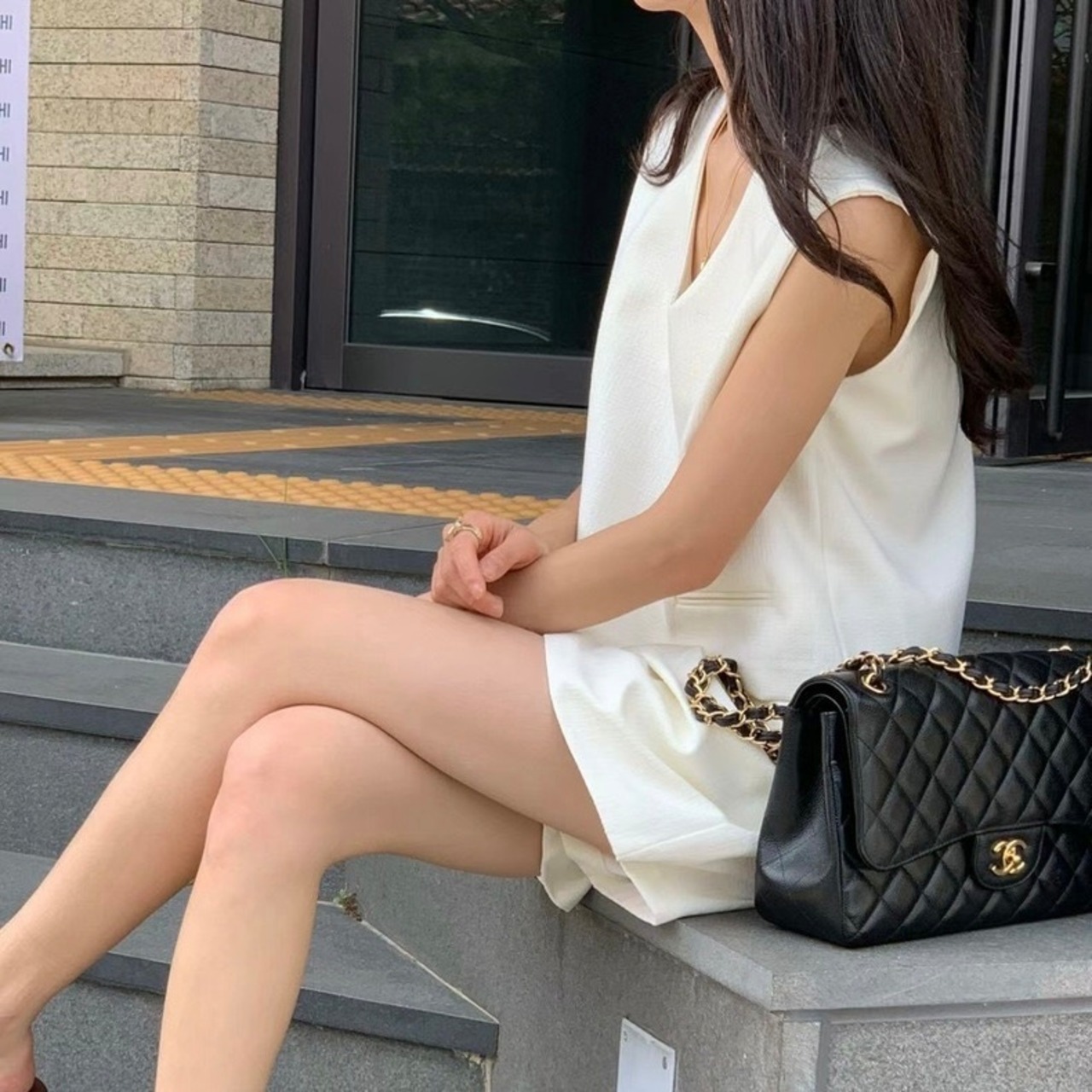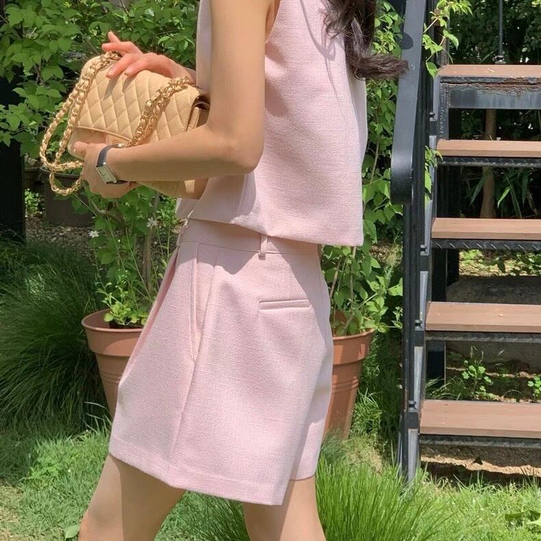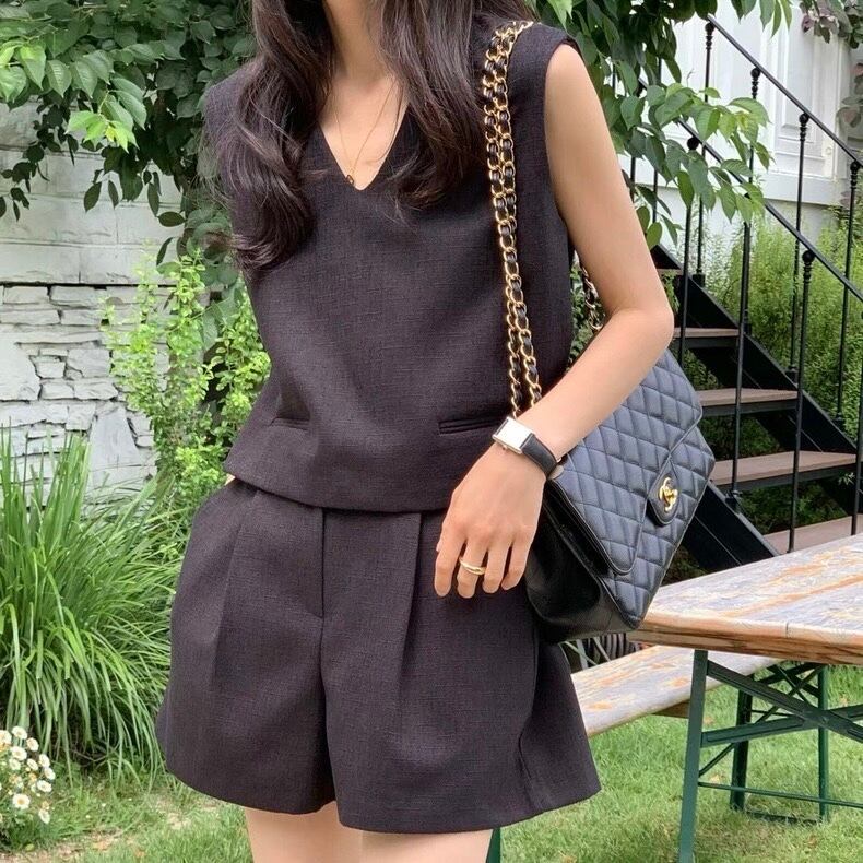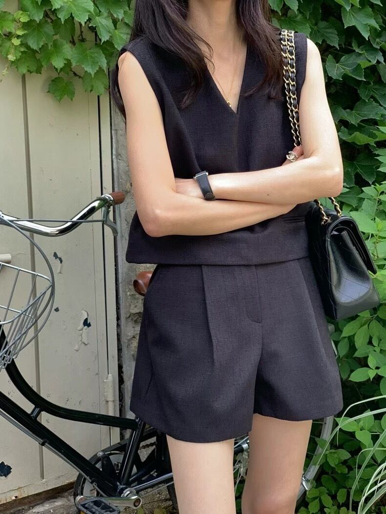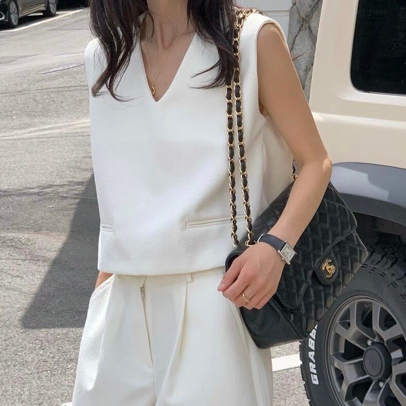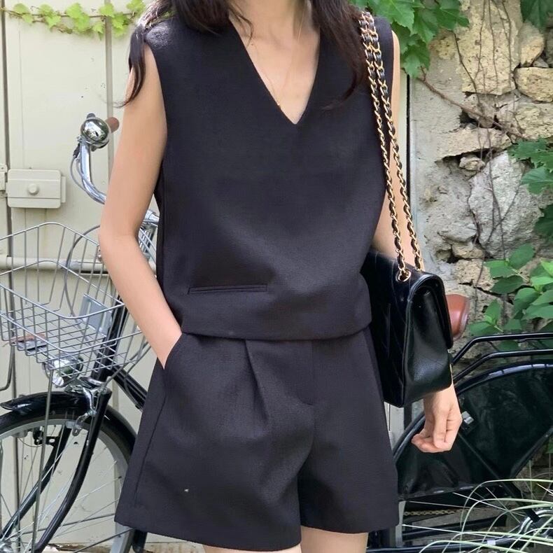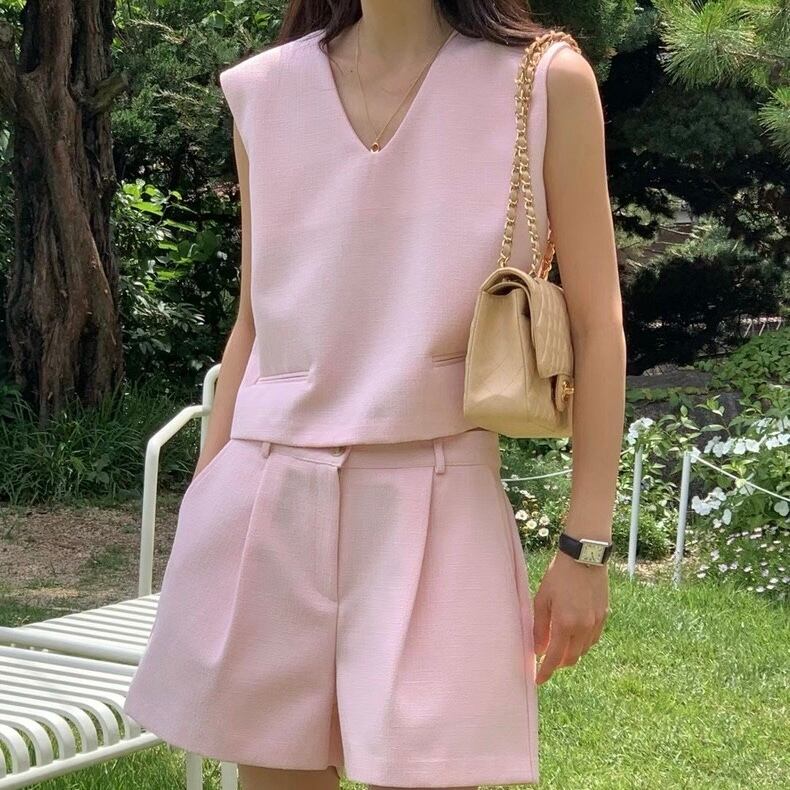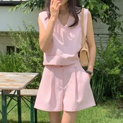 【set】韓国系Vネックトップスxハイウエストパンツ3色 JF6243